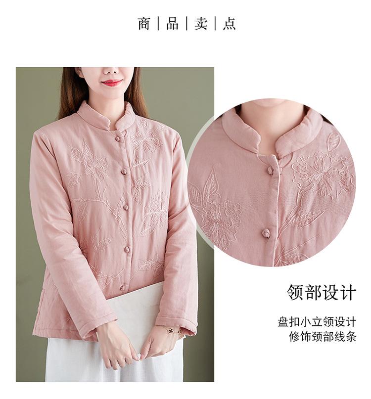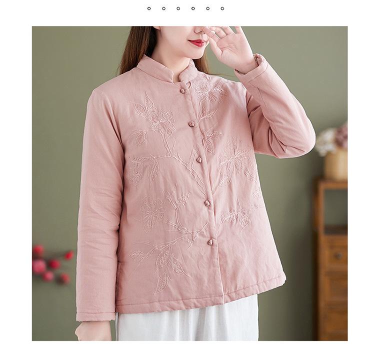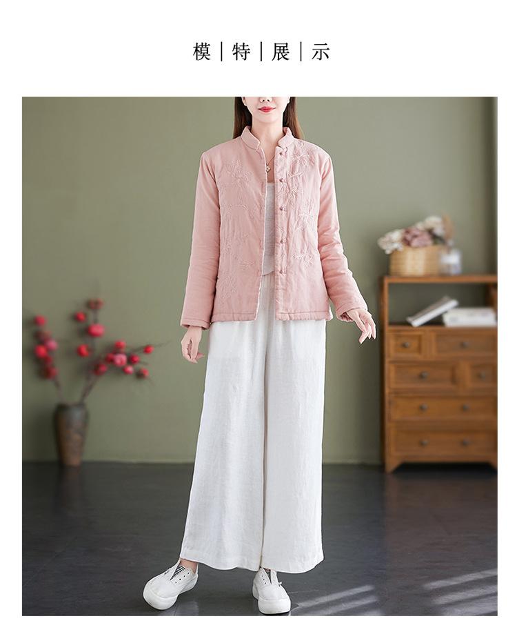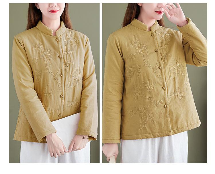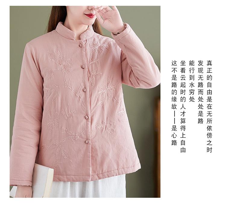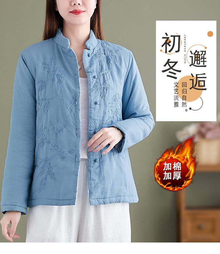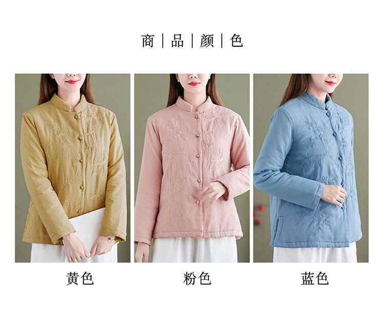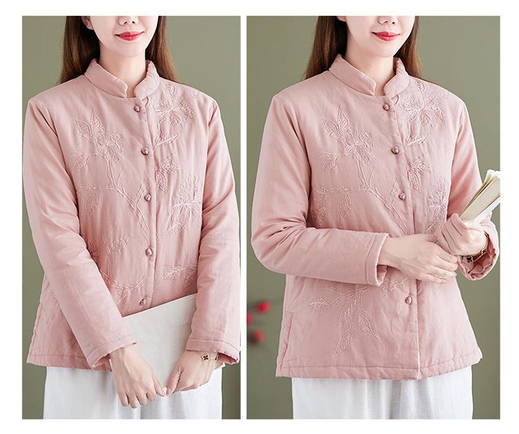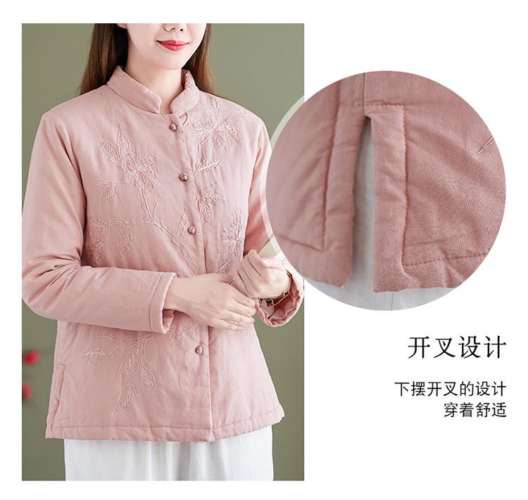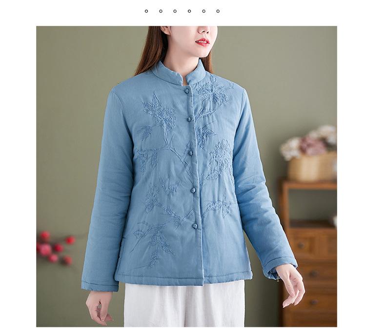 Abrigo acolchado de algodón y lino con hebilla retro de estilo chino de tiro real, abrigo de té acolchado grueso, chaqueta acolchada de algodón bordada, abrigo corto