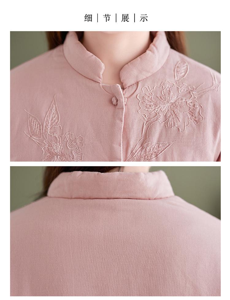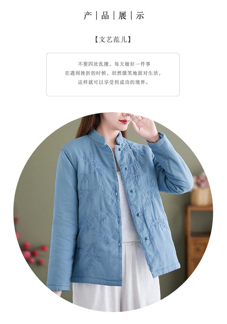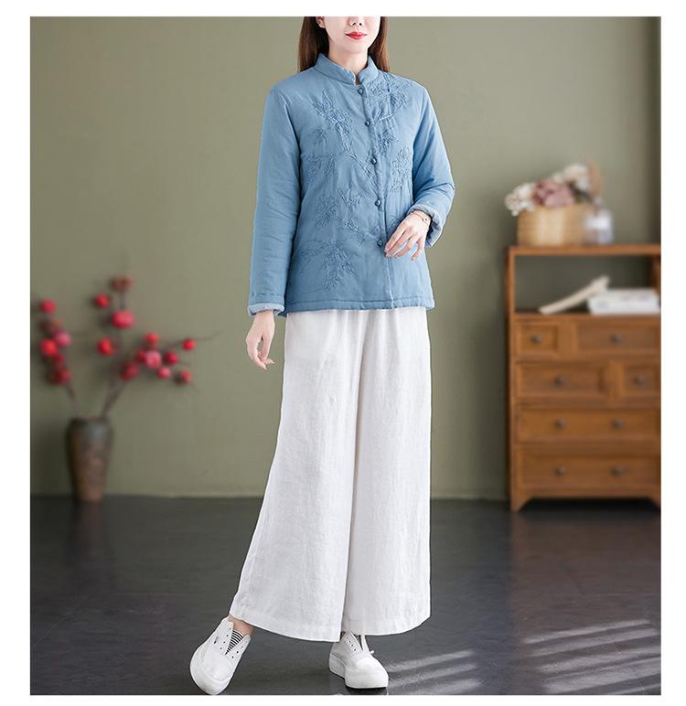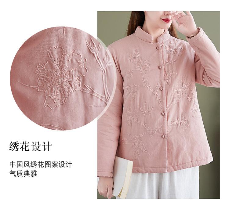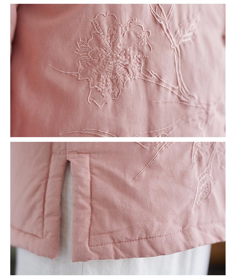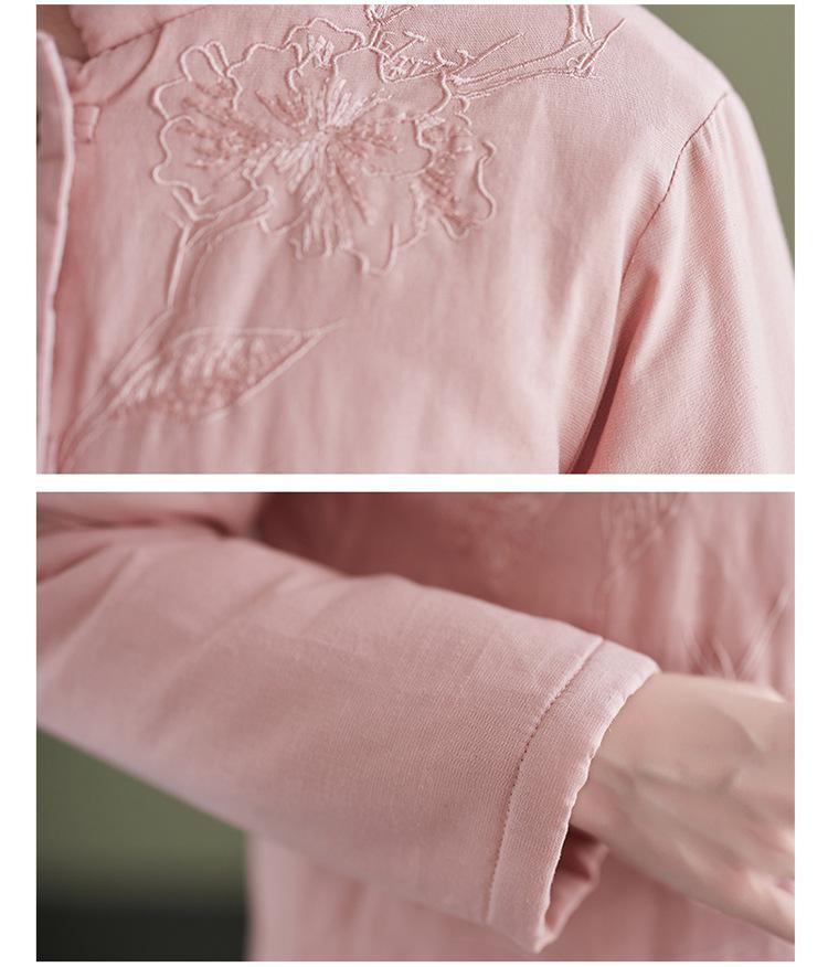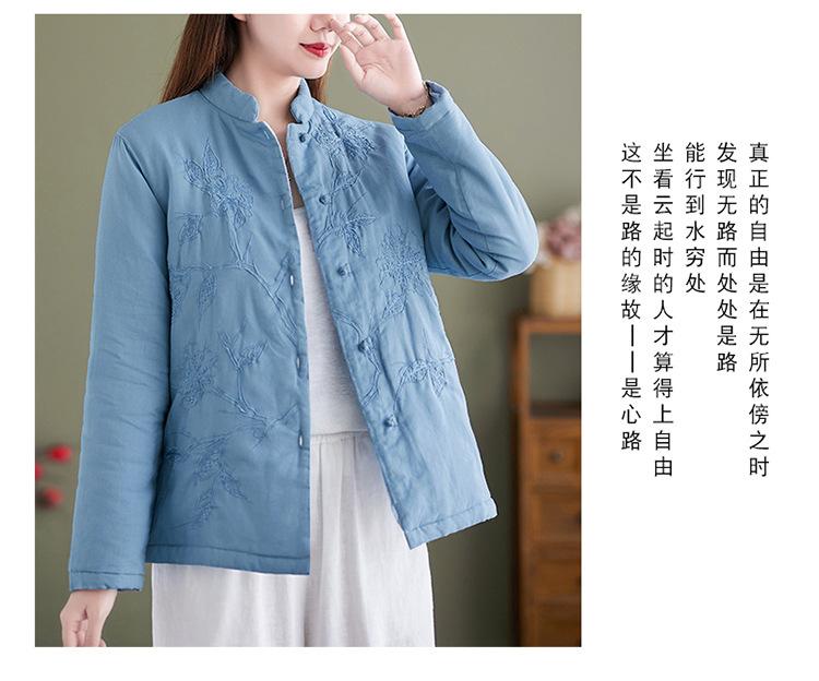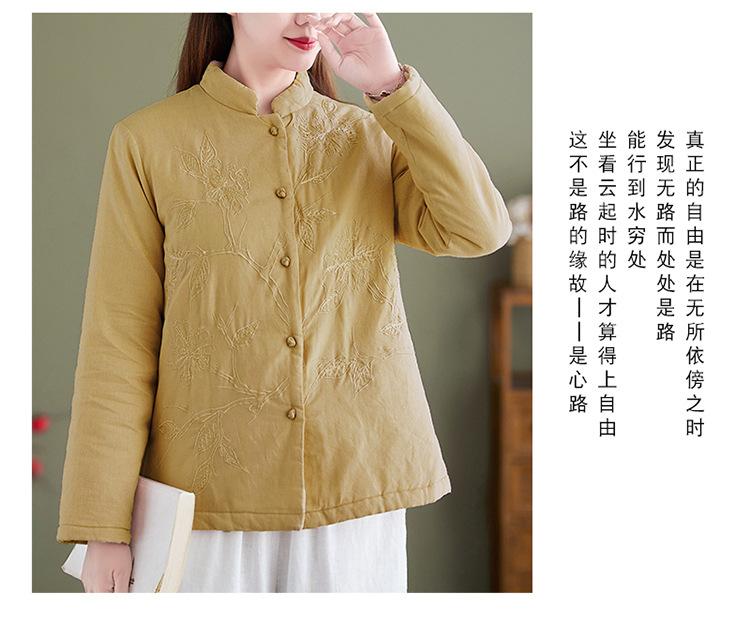 Abrigo acolchado de algodón y lino con hebilla retro de estilo chino de tiro real, abrigo de té acolchado grueso, chaqueta acolchada de algodón bordada, abrigo corto