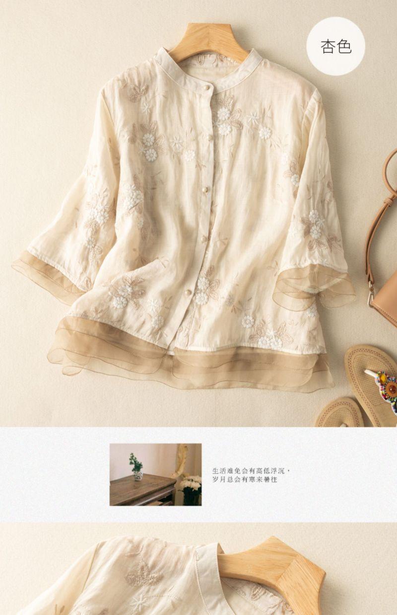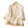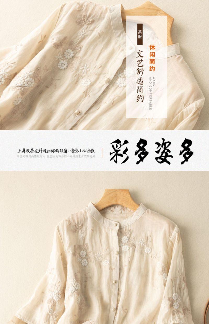 Compra Top Bordado Pesado para Mujer Manga Tres Cuartos Algodón y Lino Empalmado Camisa para Mujer Estilo Literario Retro Nuevo al por mayor en Joom.pro