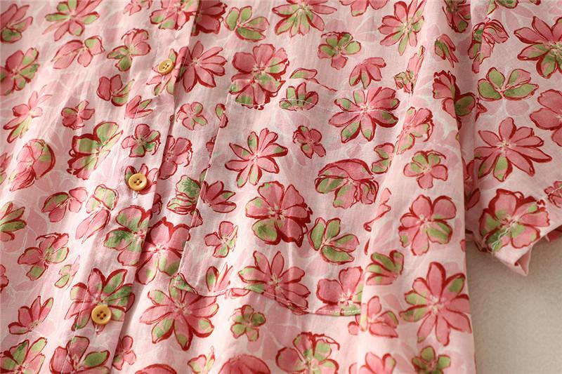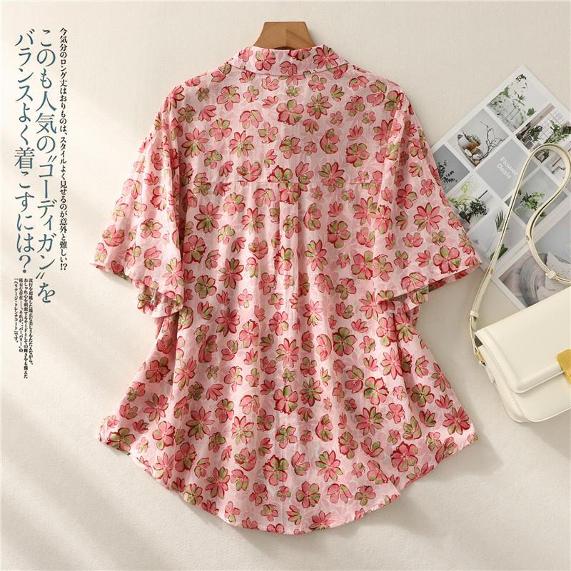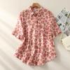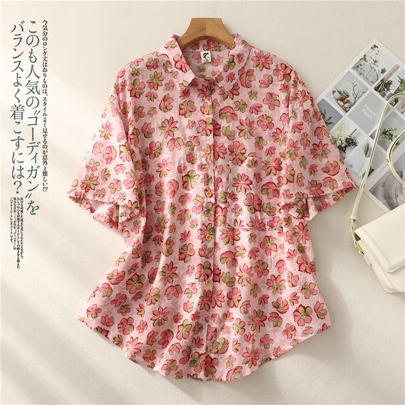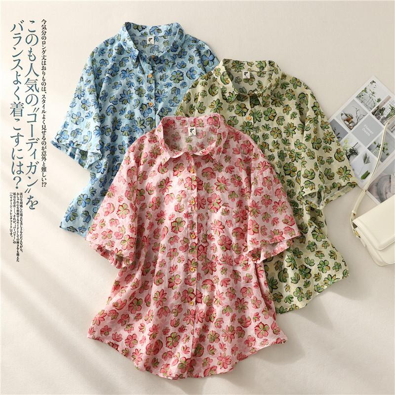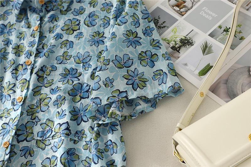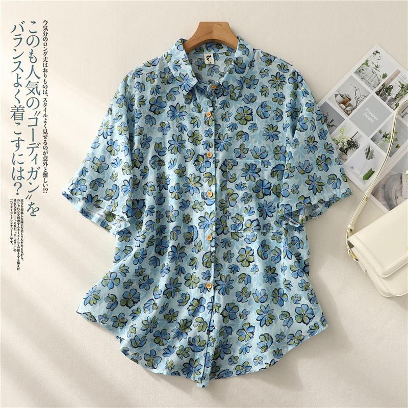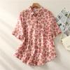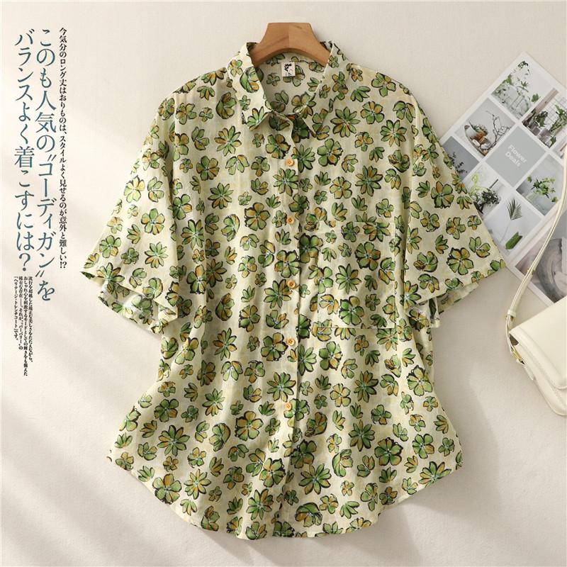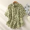 Camisa retro estampada de algodón de manga corta para talla grande casual estilo Hong Kong prenda exterior camisa holgada moderna verano 2023 nueva para mujer