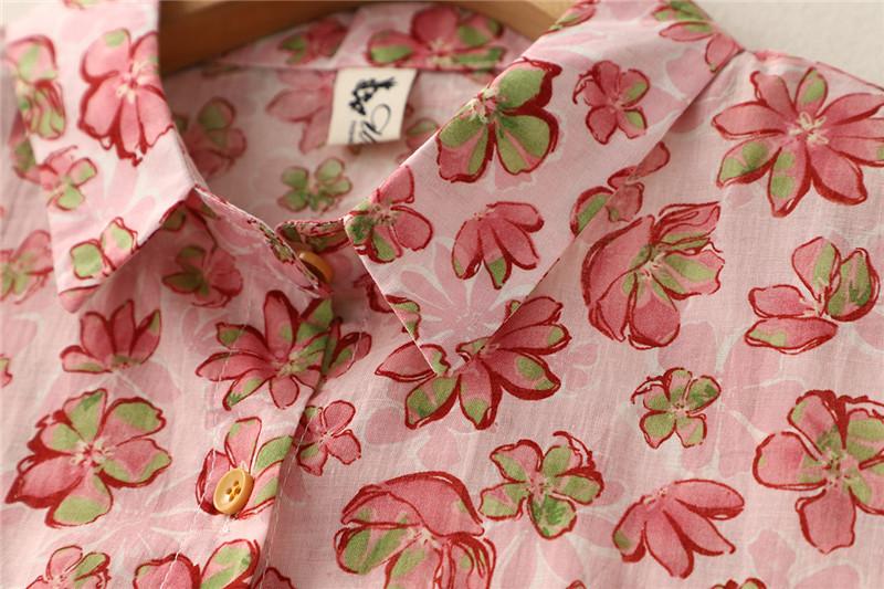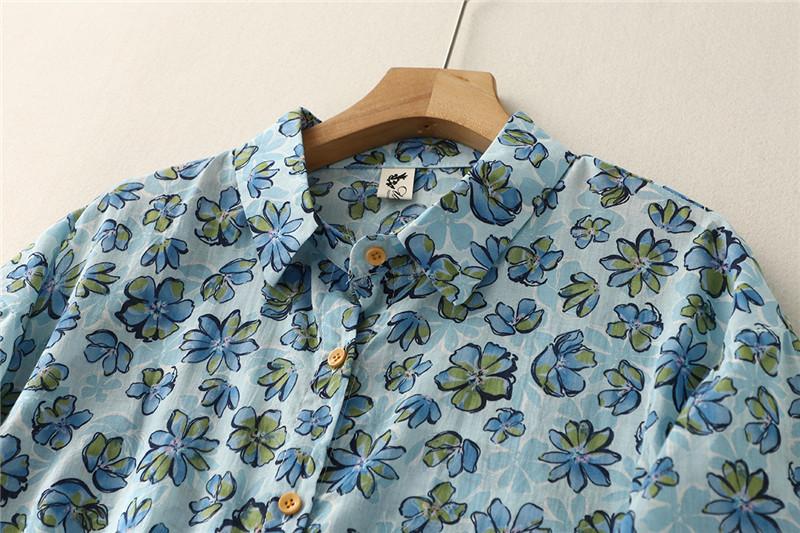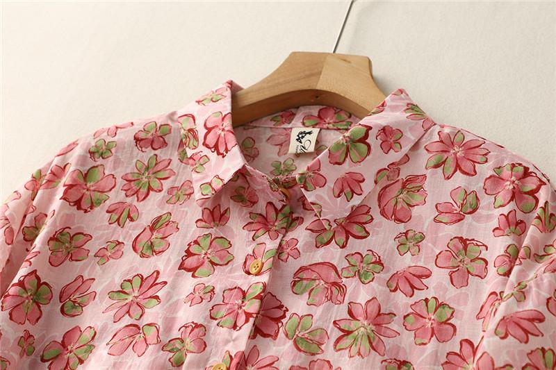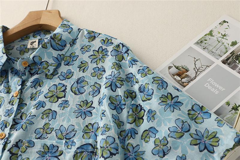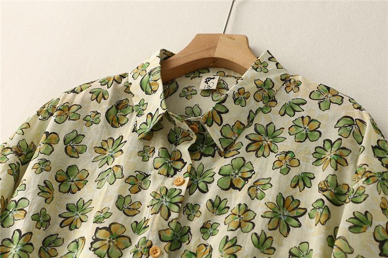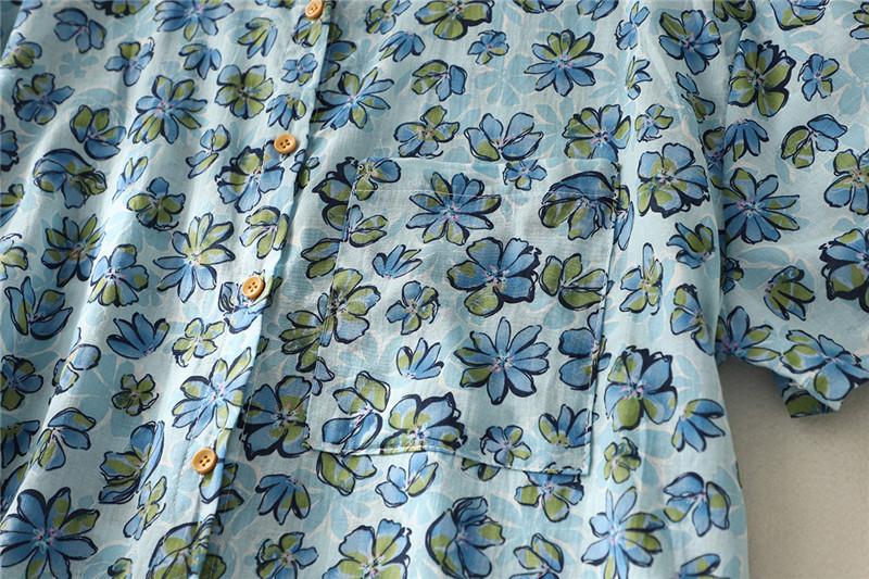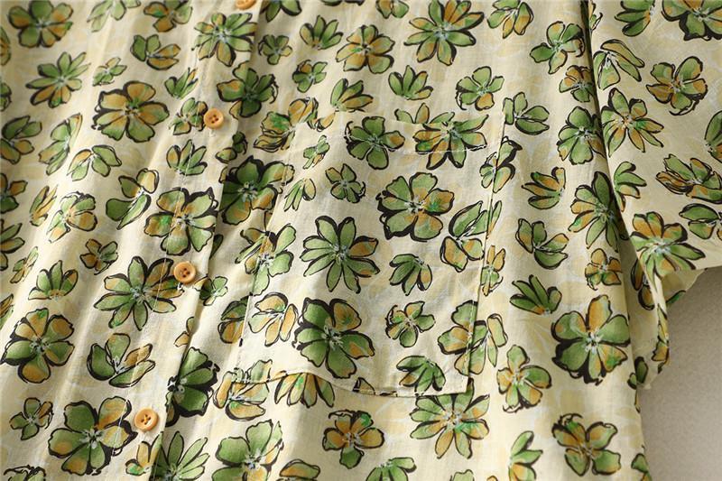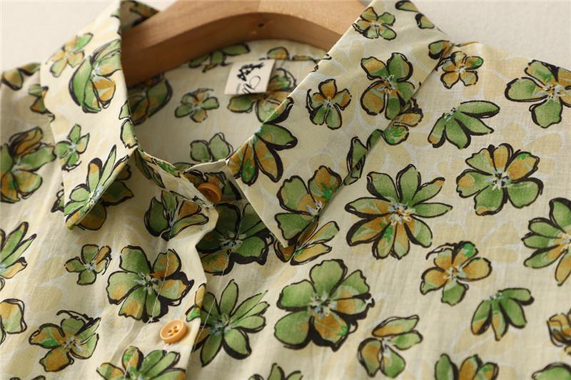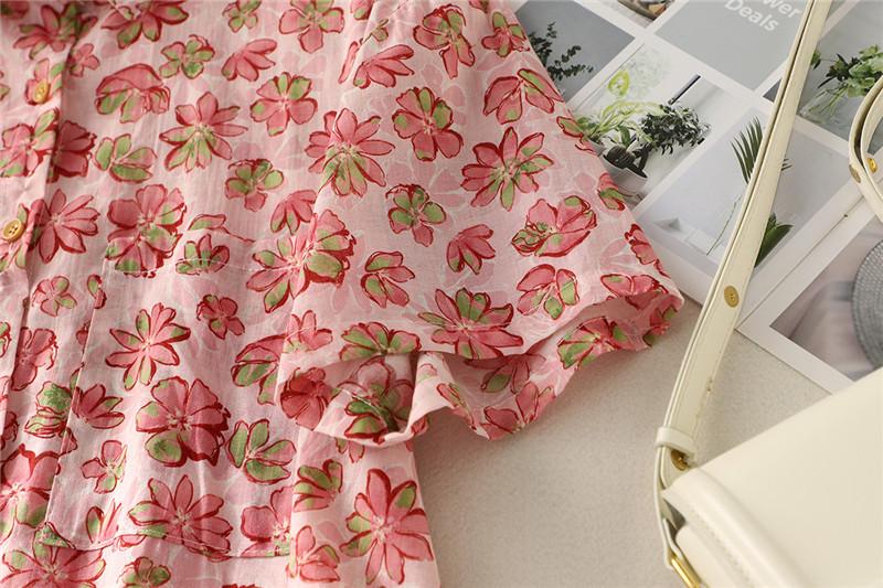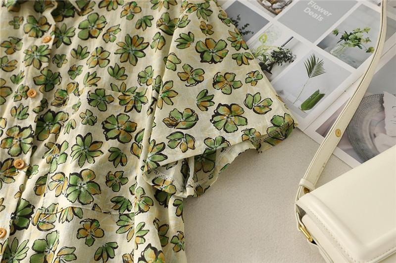 Camisa retro estampada de algodón de manga corta para talla grande casual estilo Hong Kong prenda exterior camisa holgada moderna verano 2023 nueva para mujer