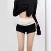 Pantalones cortos ajustados de cintura alta con contraste de color melocotón para mujer, pantalones cortos elásticos para levantar la cadera, pantalones sexys para chica, pantalones cortos adelgazantes que combinan con todo, a la moda