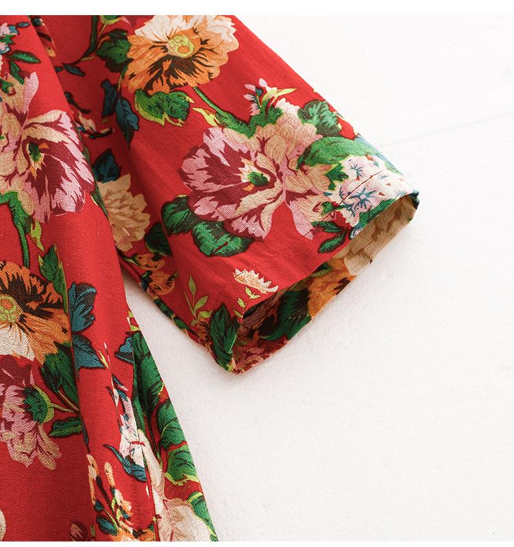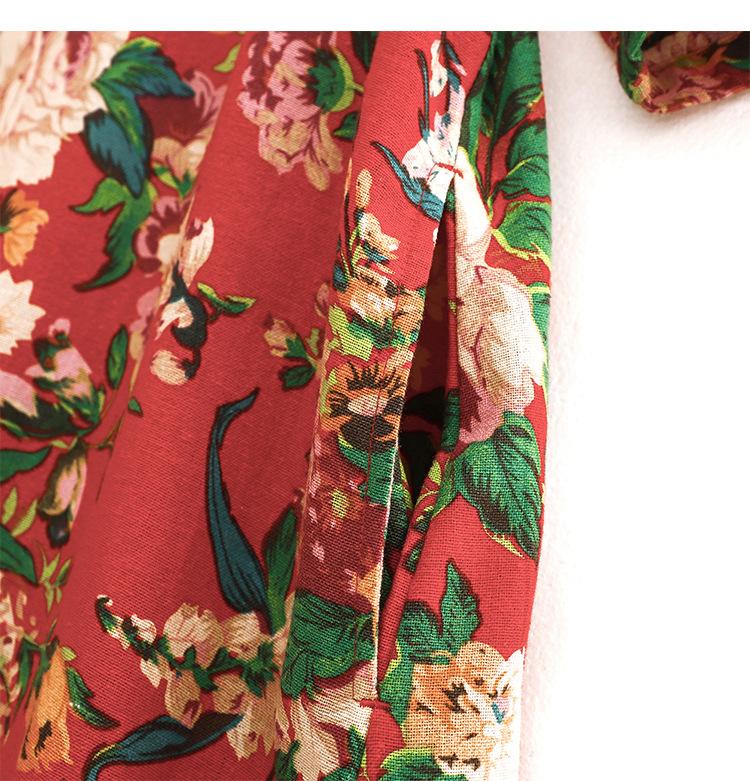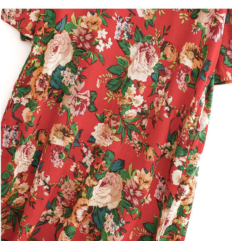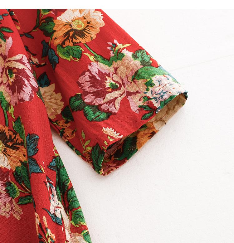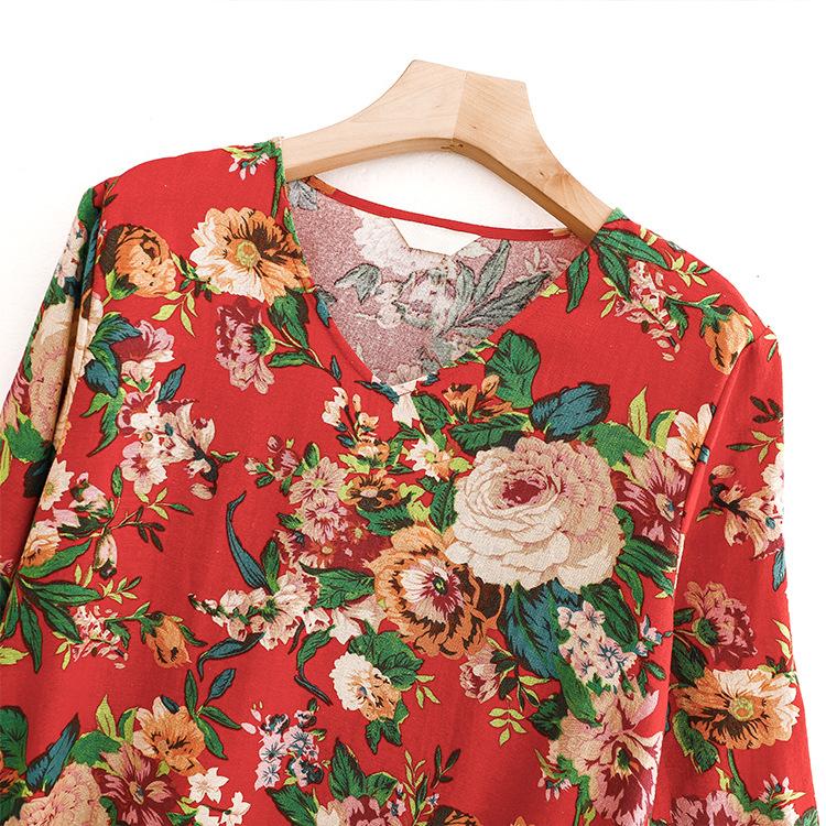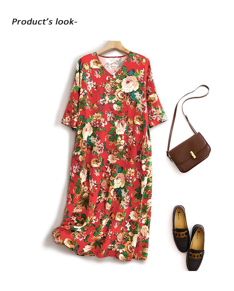 Vestido túnica retro de primavera y verano 2024 con cuello en V y flor grande