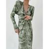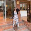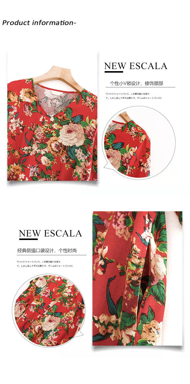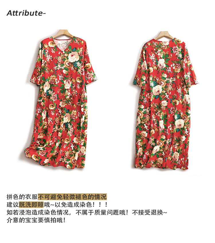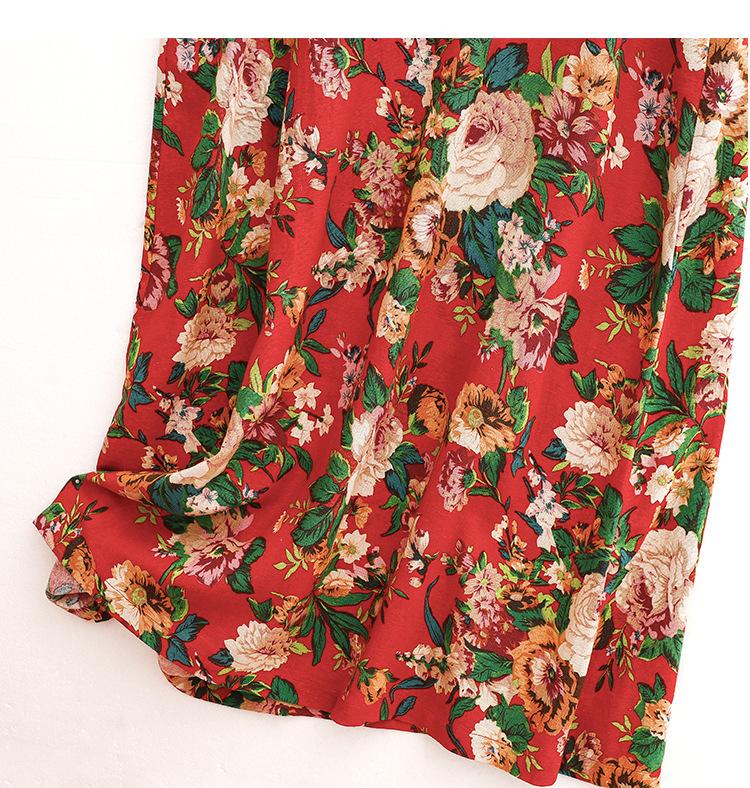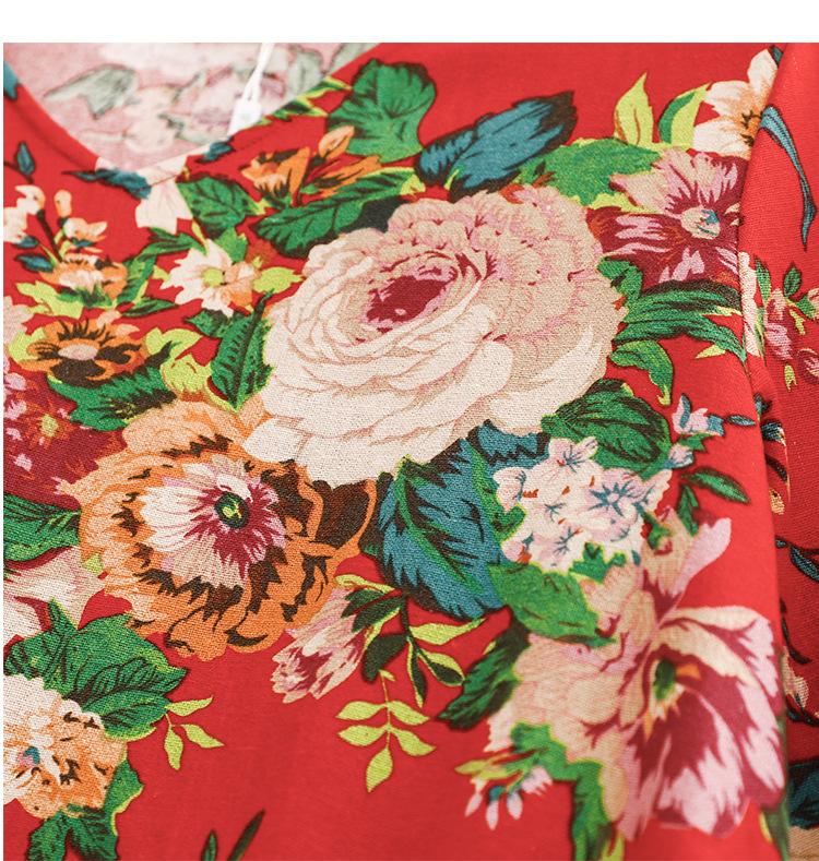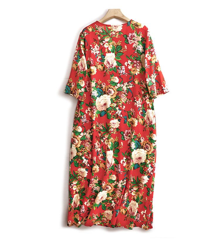 Vestido túnica retro de primavera y verano 2024 con cuello en V y flor grande