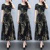 Vestido estampado de seda de imitación pesada para mujer, nuevo vestido midi elegante retro de moda de verano 2024