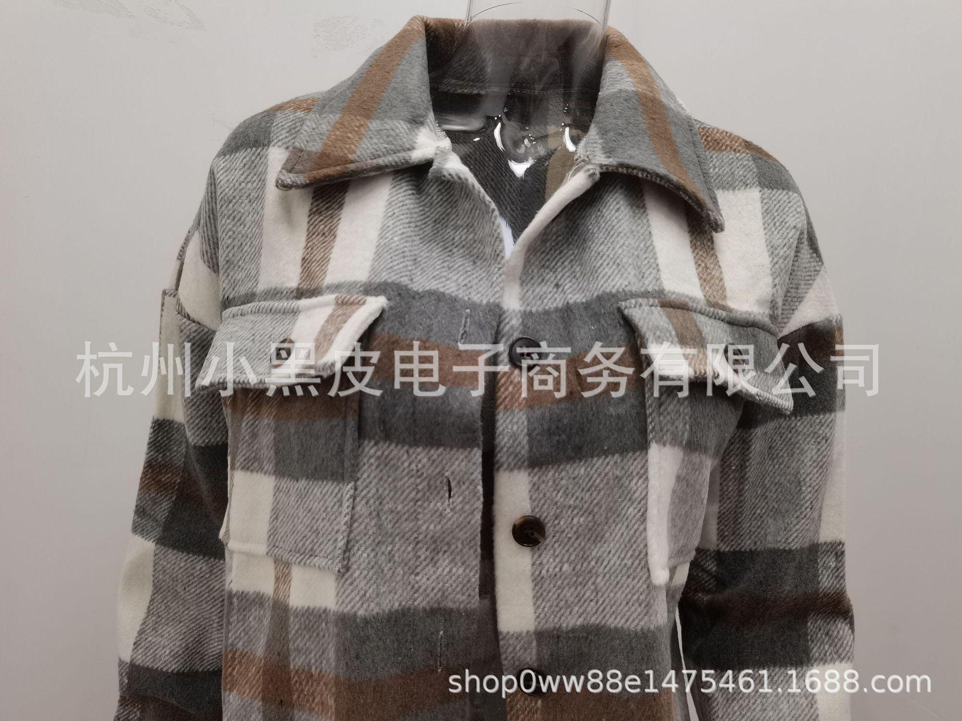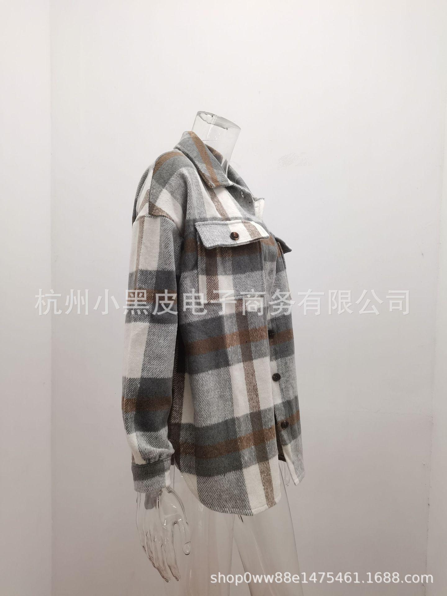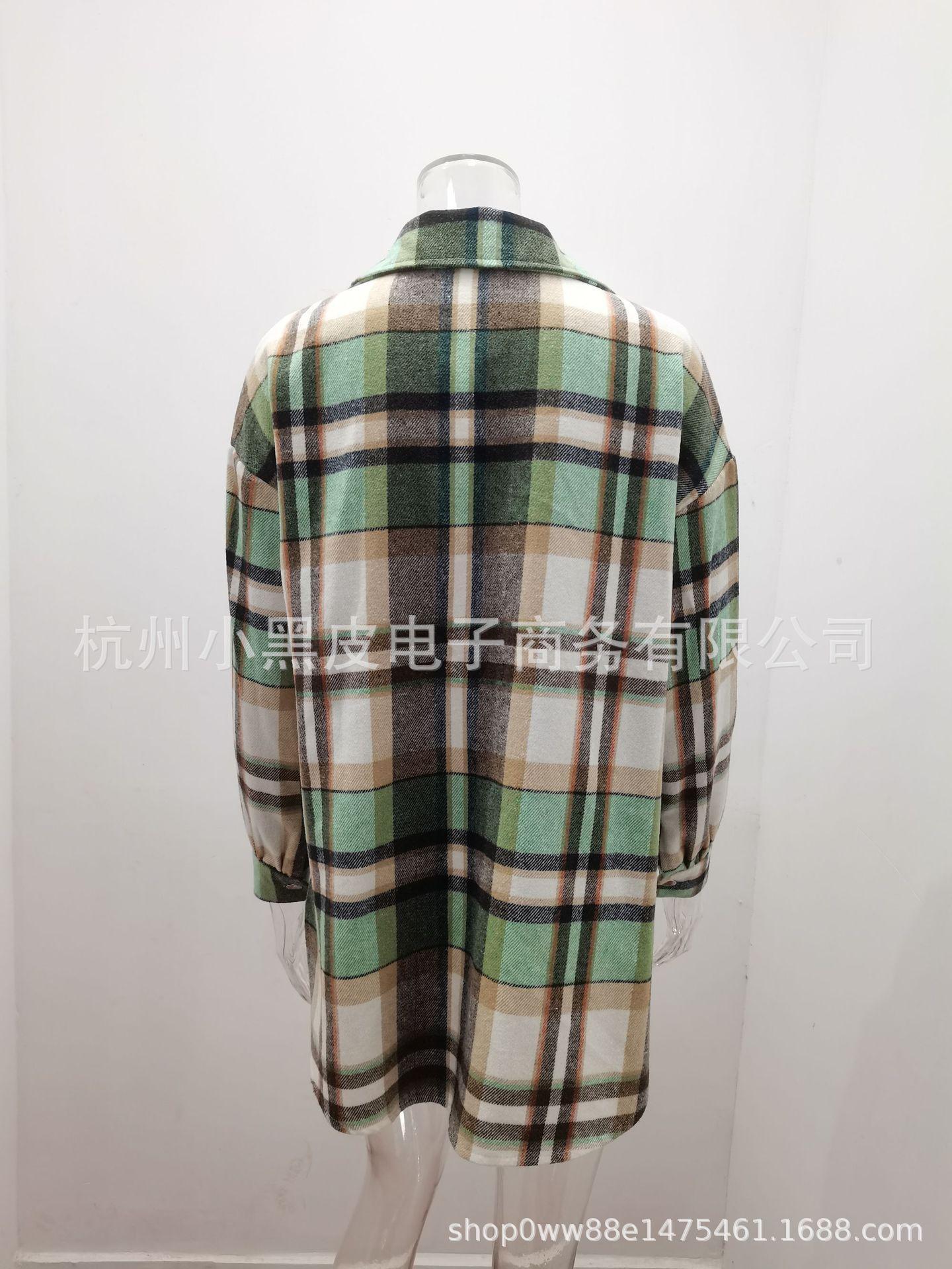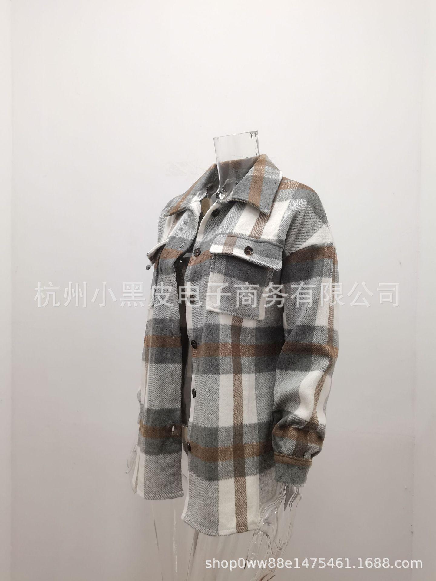 Nueva ropa de otoño e invierno para mujer europea y americana, abrigo de lana gruesa con diseño de cuadros sueltos y solapa de manga larga para otoño e invierno.