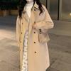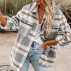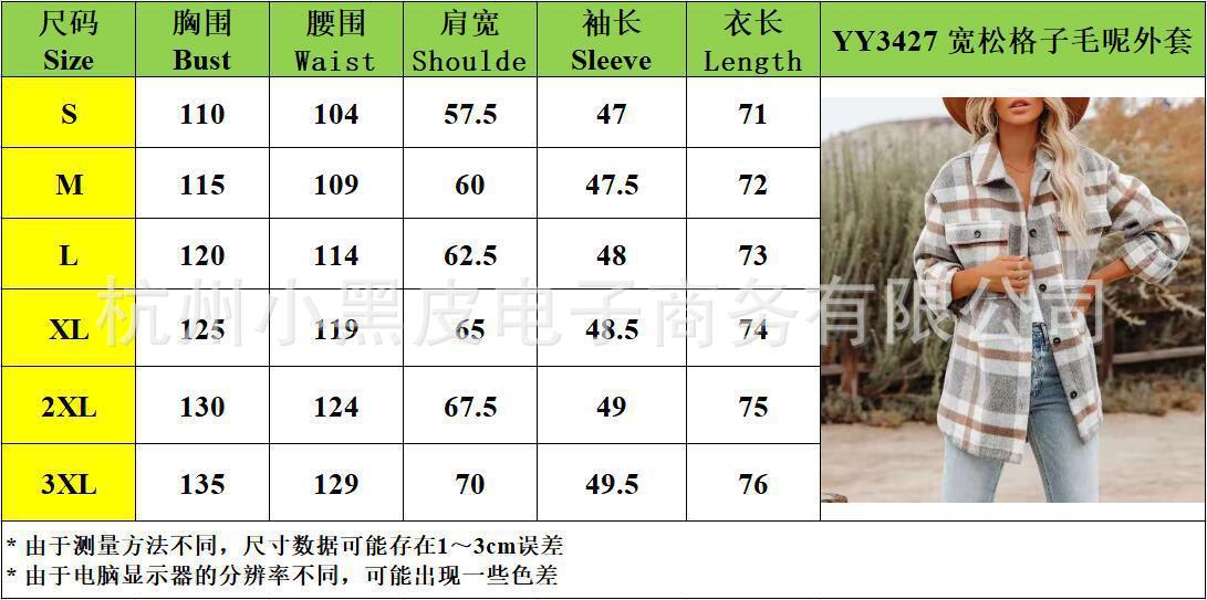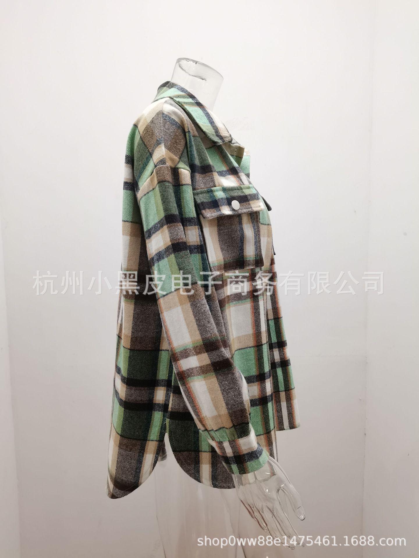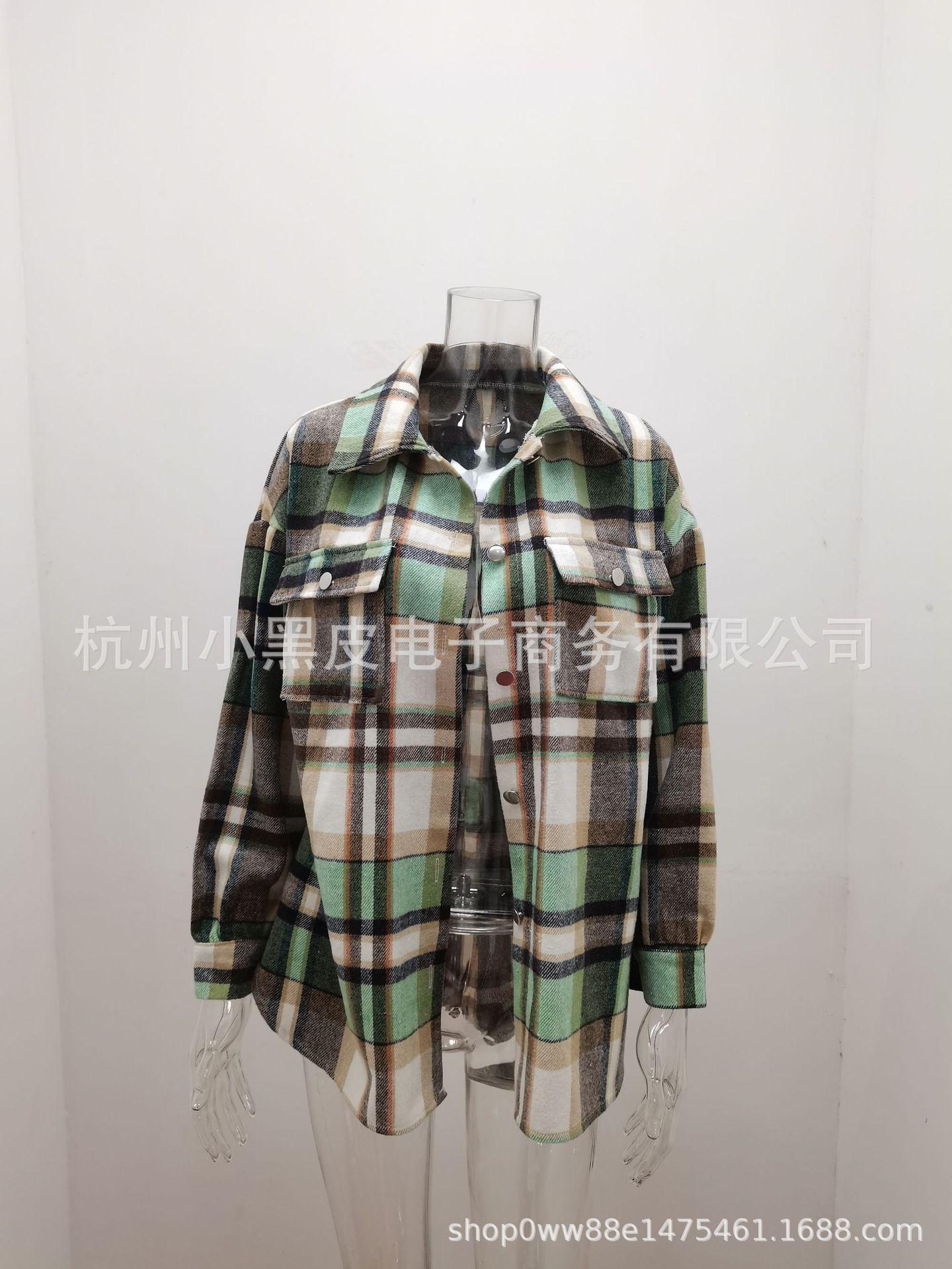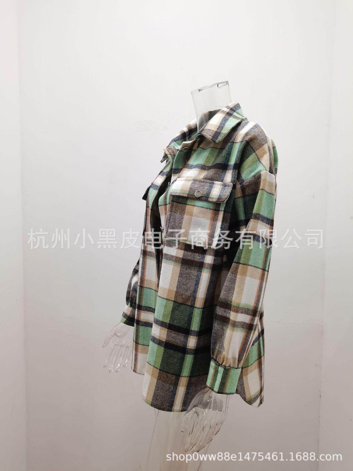 Nueva ropa de otoño e invierno para mujer europea y americana, abrigo de lana gruesa con diseño de cuadros sueltos y solapa de manga larga para otoño e invierno.