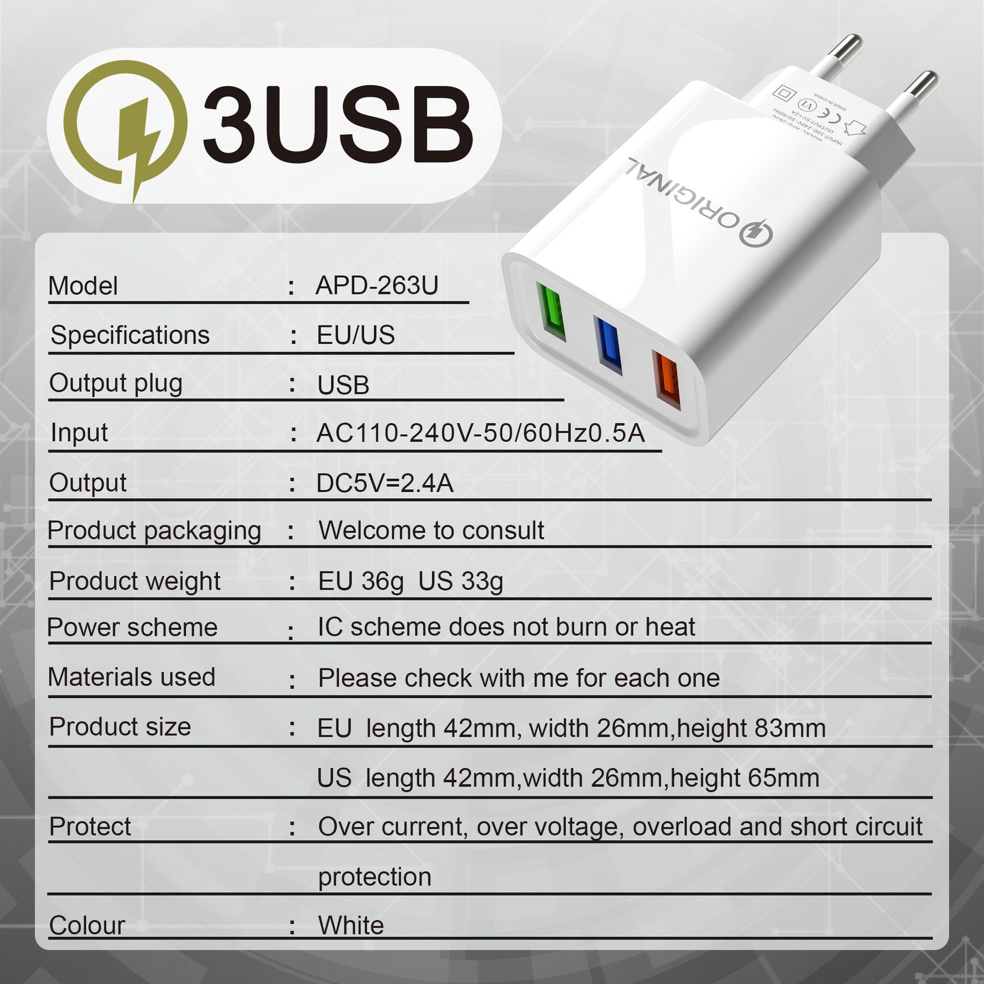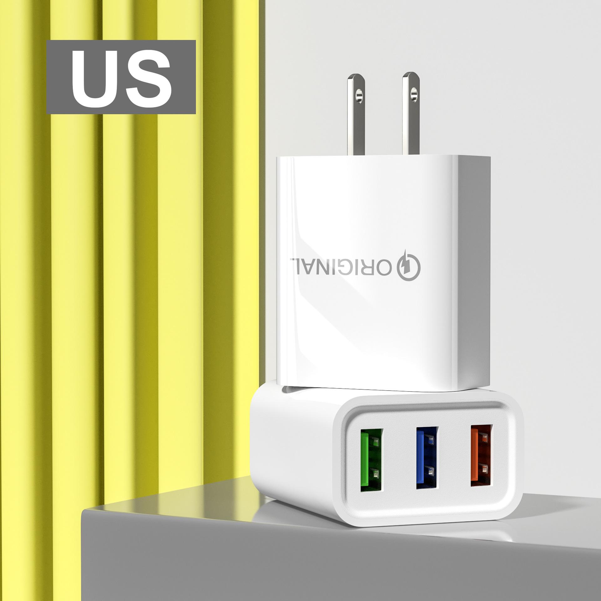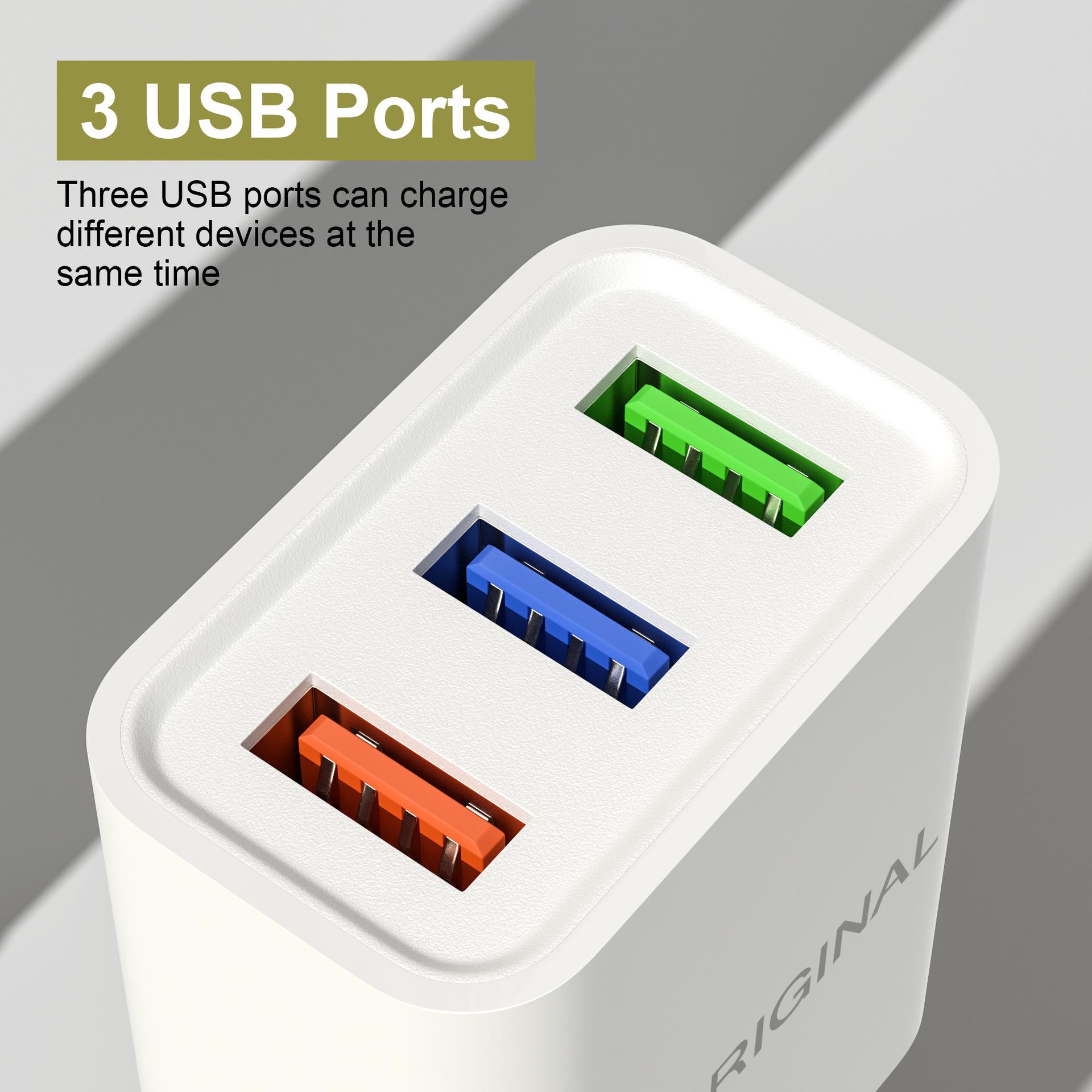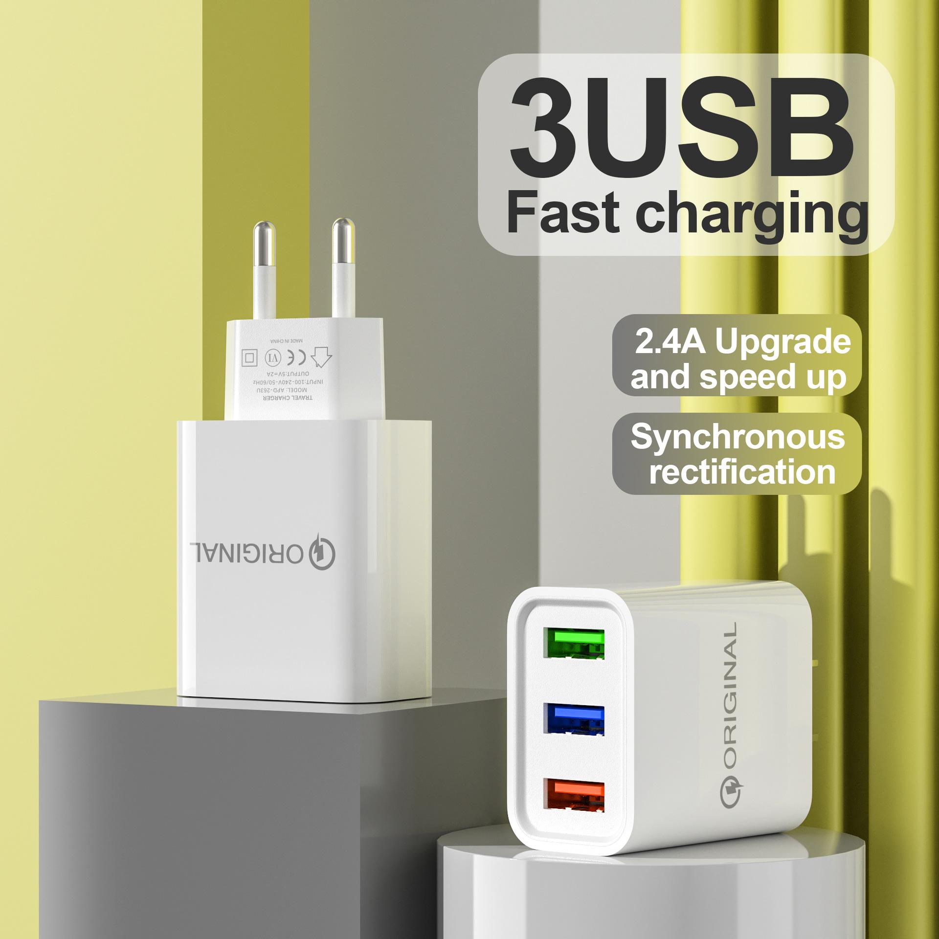 Cargador Multipuerto para Teléfono Móvil 3USB 5V2A12W Adaptador de Corriente Cargador de Pared para Viaje Enchufe de Carga Estándar Europeo y Americano Carga Rápida