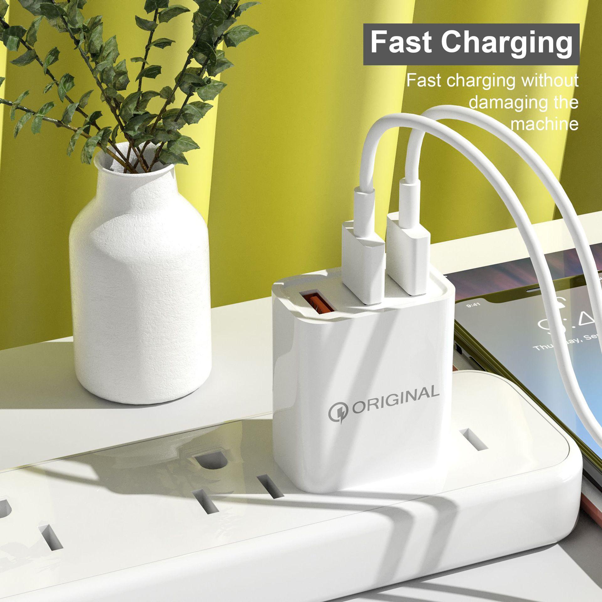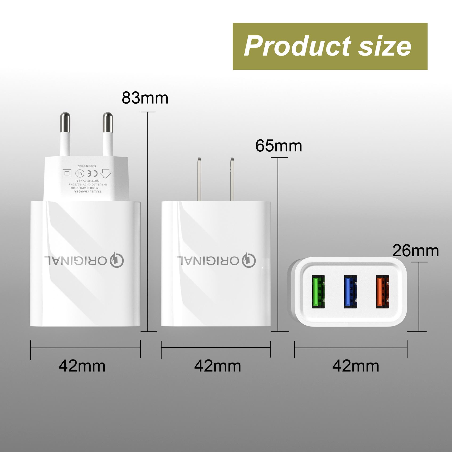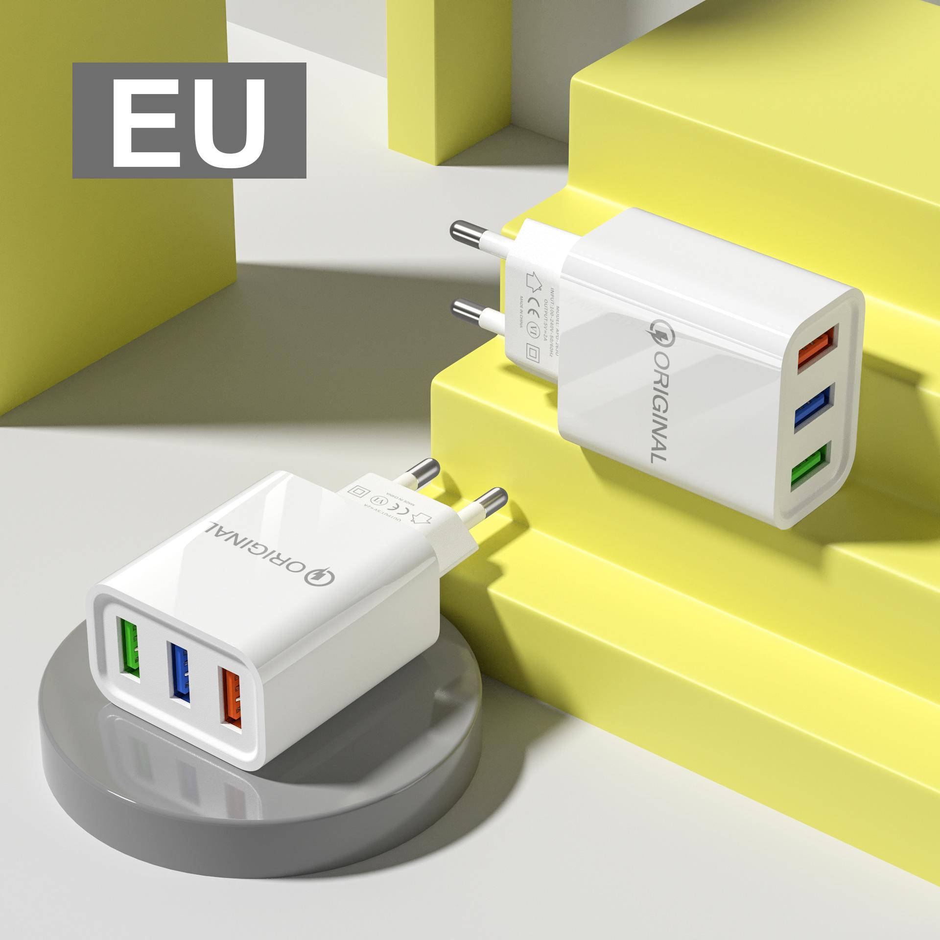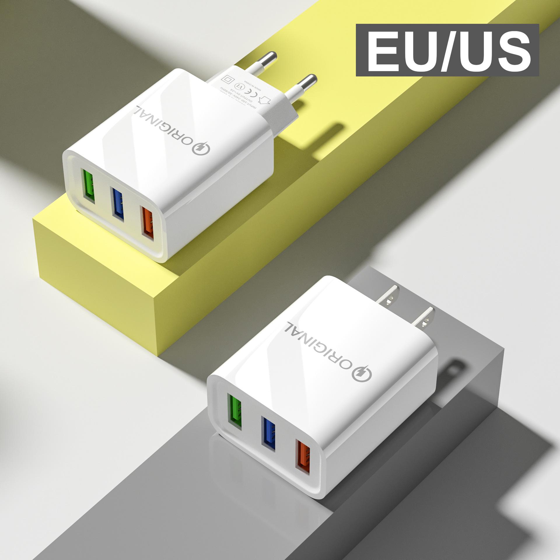 Cargador Multipuerto para Teléfono Móvil 3USB 5V2A12W Adaptador de Corriente Cargador de Pared para Viaje Enchufe de Carga Estándar Europeo y Americano Carga Rápida