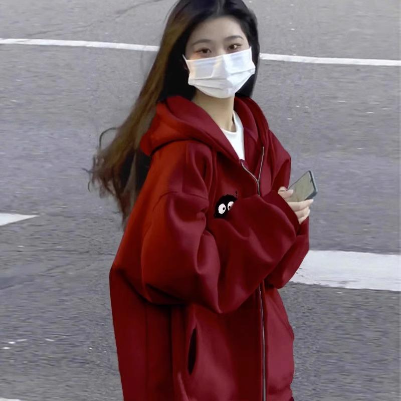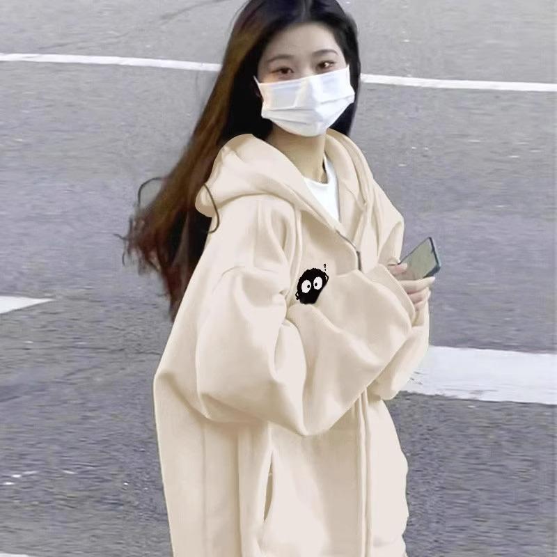 Suéter tipo cárdigan para mujer, abrigo fino y holgado con capucha, de primavera y otoño, con cremallera de gran tamaño y pequeño, a la moda