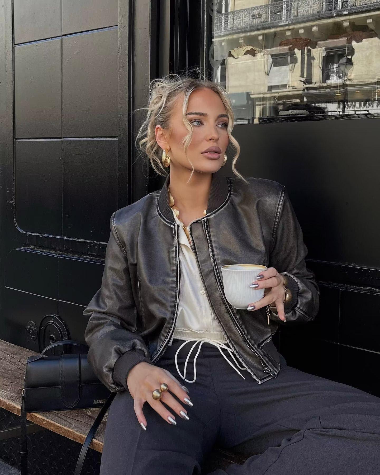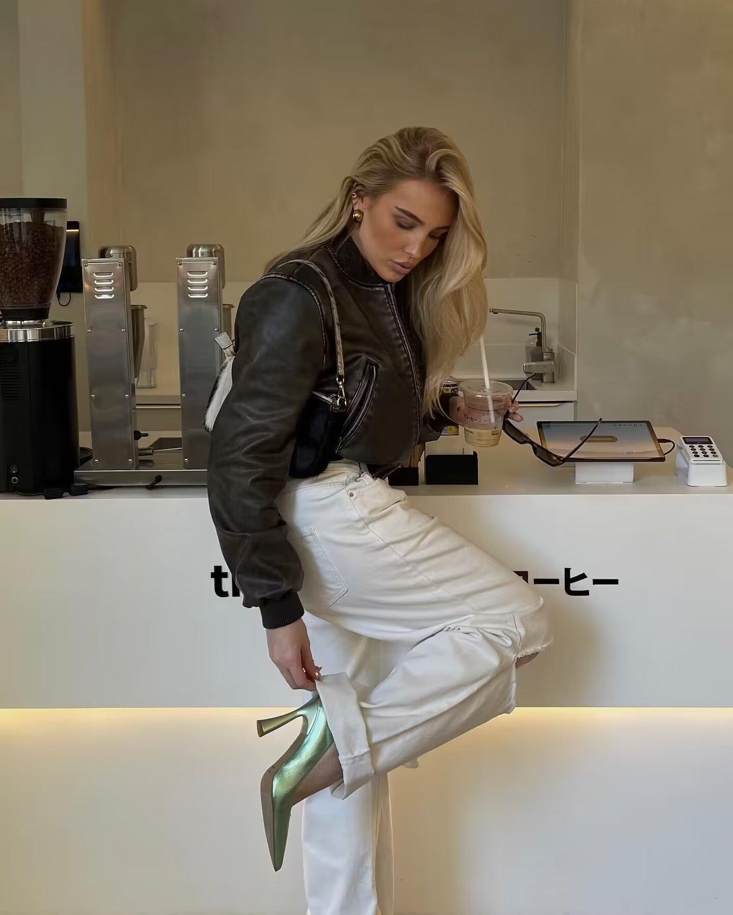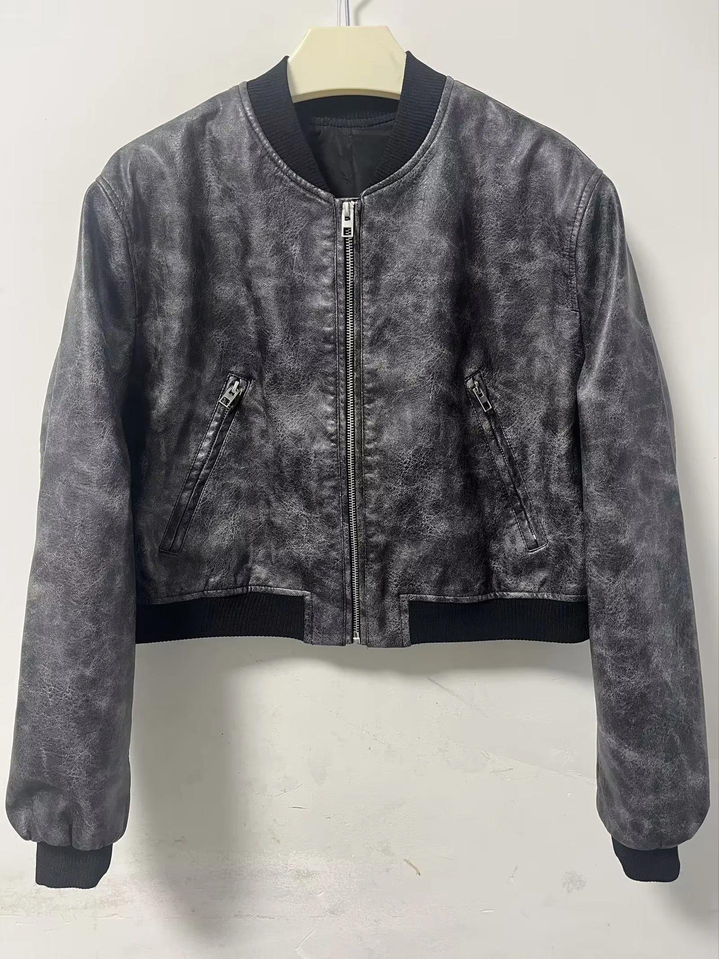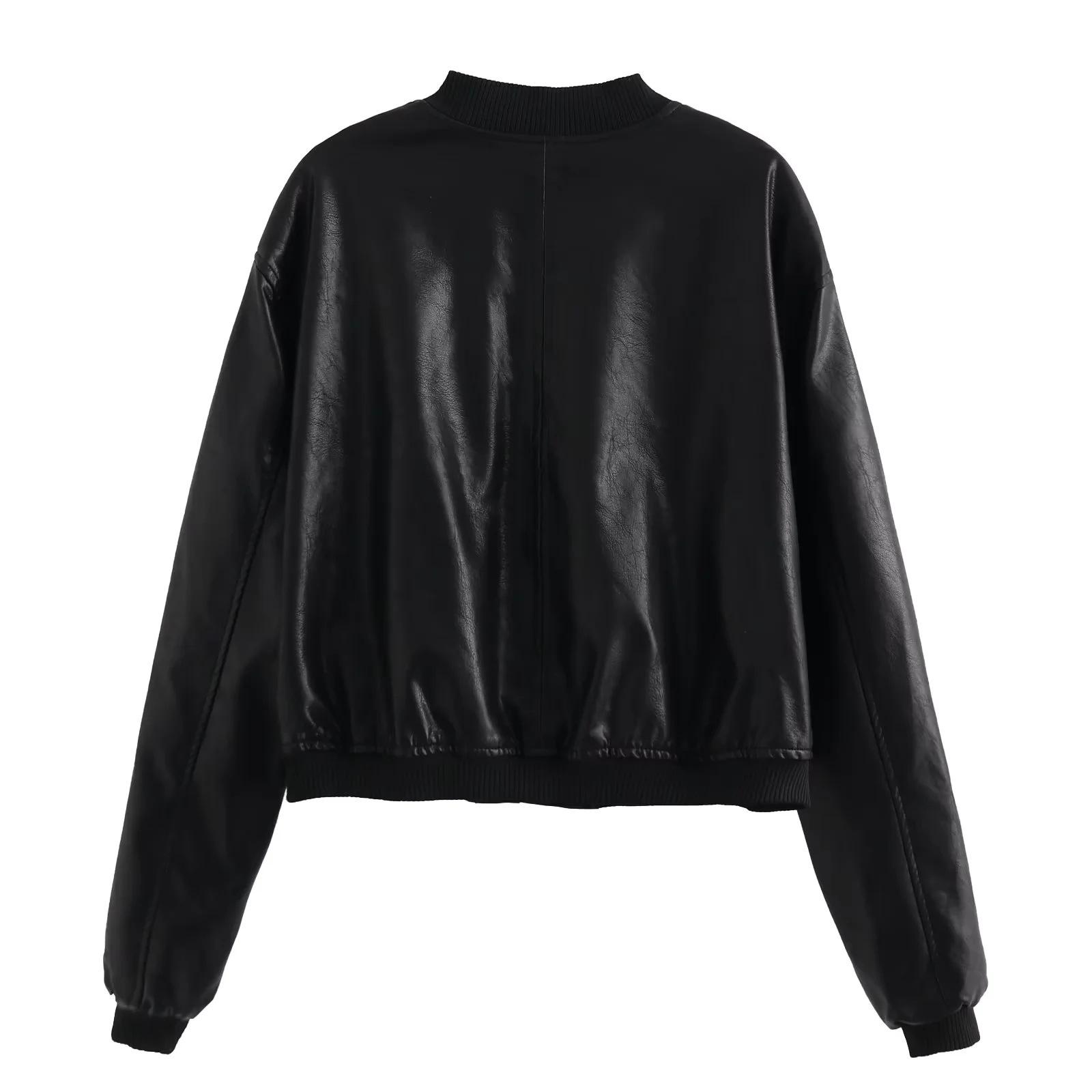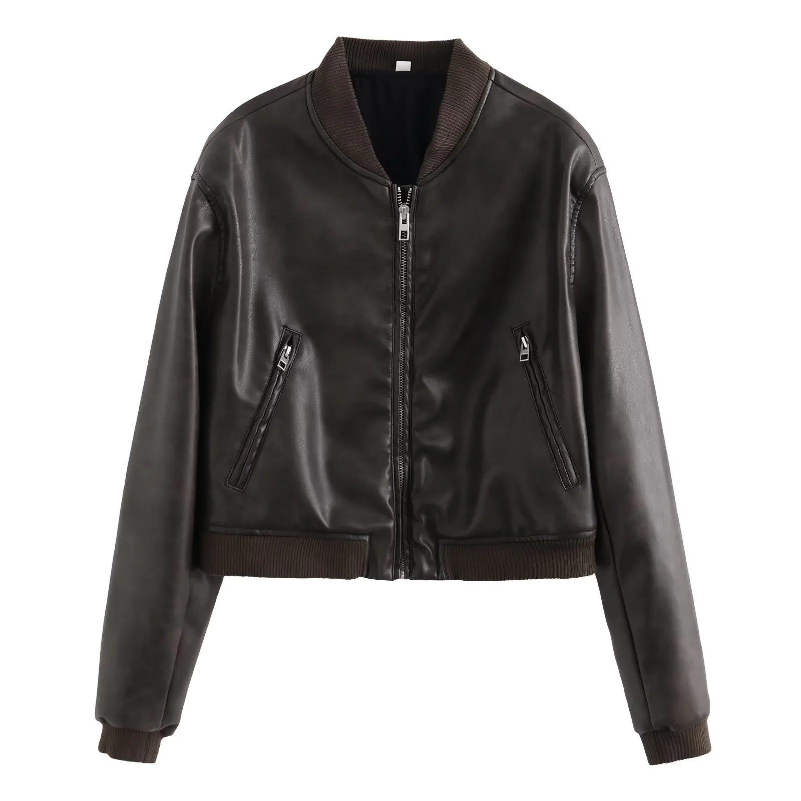 Moda urbana Y2KPU transfronteriza corte ajustado corto 2023 Otoño Nuevo Cuello alto chaqueta de piloto de motocicleta chaqueta abrigo de cuero 6