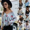 Suéter de Punto Europeo y Americano de Primavera y Verano Transfronterizo Europeo y Americano de Comercio Exterior Nuevo Amazon para Mujer Color Sólido Solapa Punto para Mujer