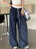 Pantalones largos casuales de estilo coreano con pernera ancha y cintura alta, pantalones holgados que combinan con todo.