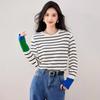 Camiseta básica de punto con cuello redondo y media manga para mujer, estilo occidental, fina y sencilla, combinable con todo, primavera y otoño de 2023