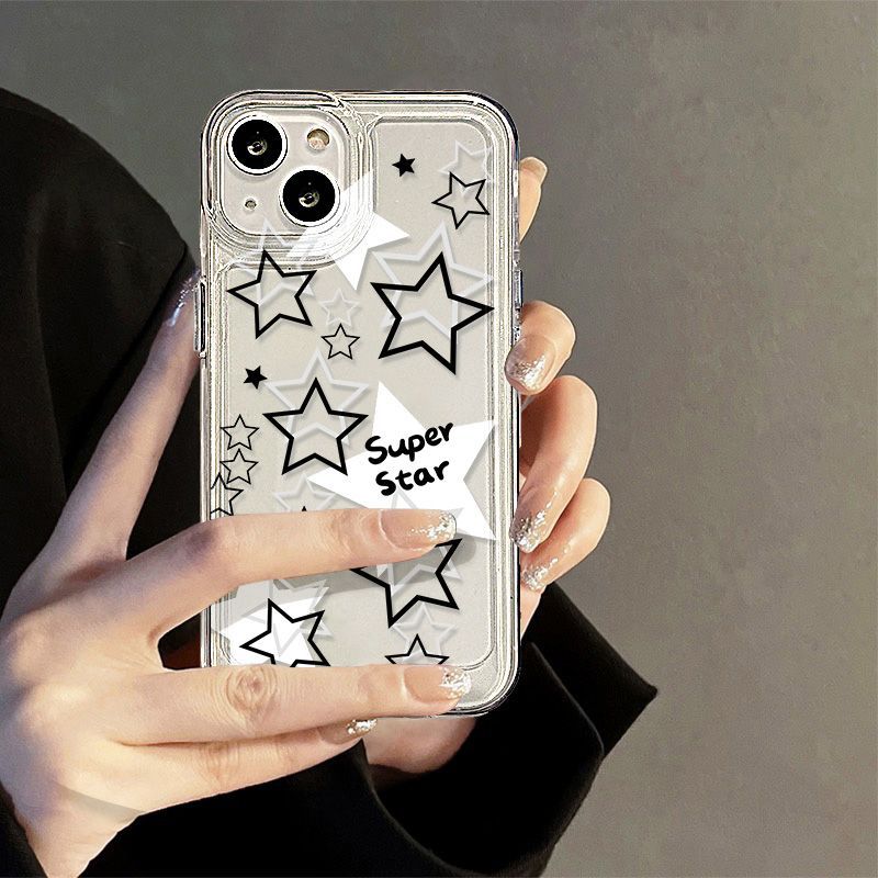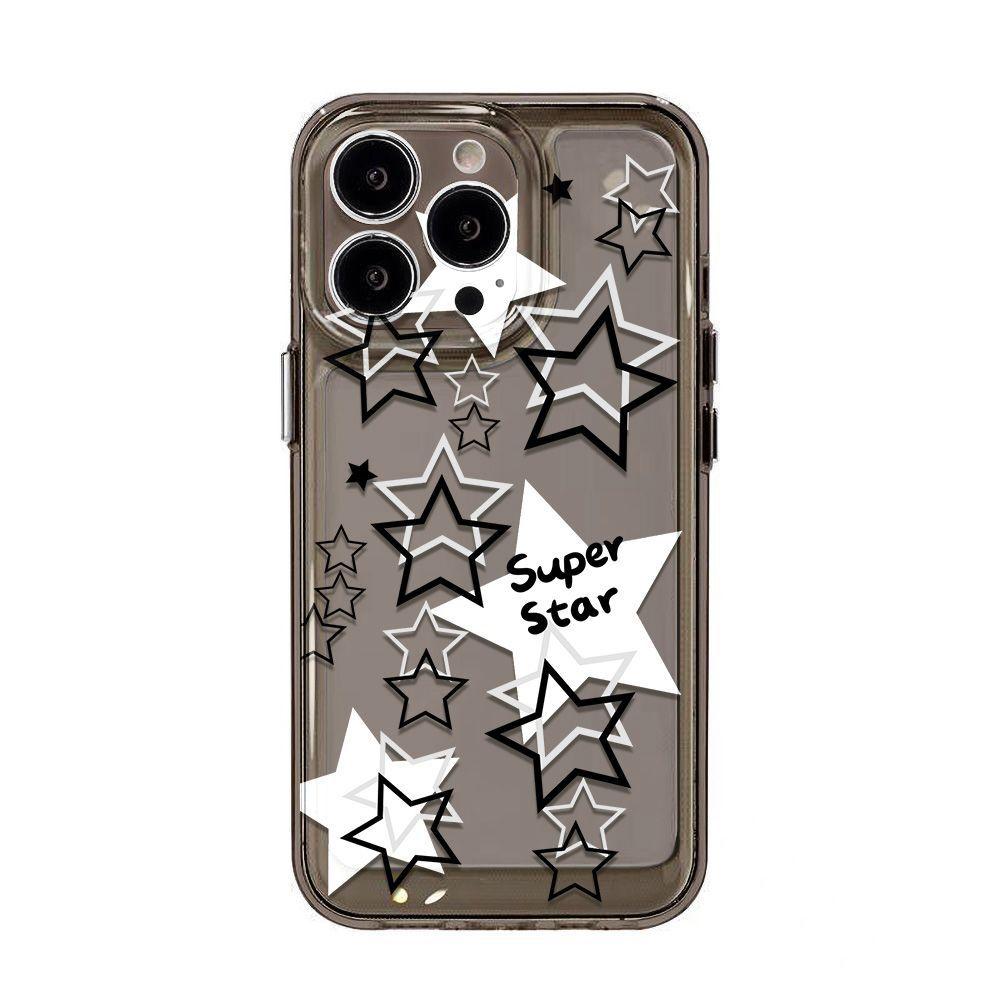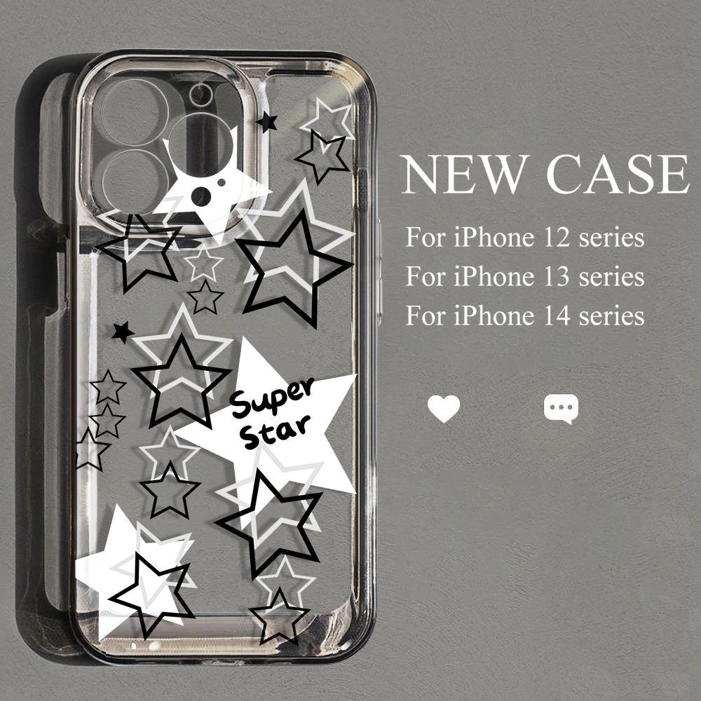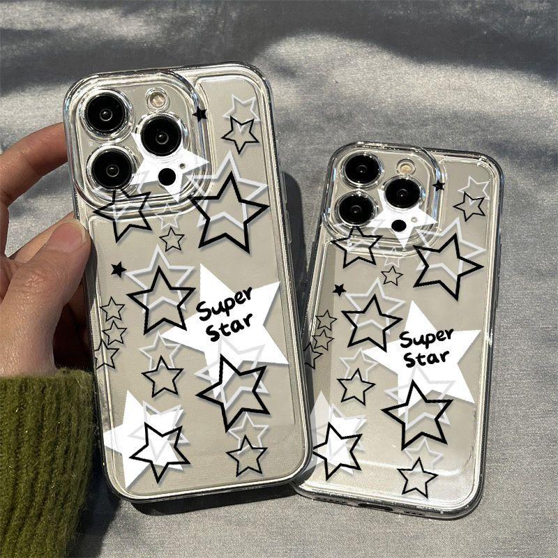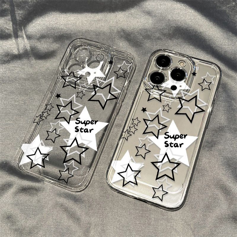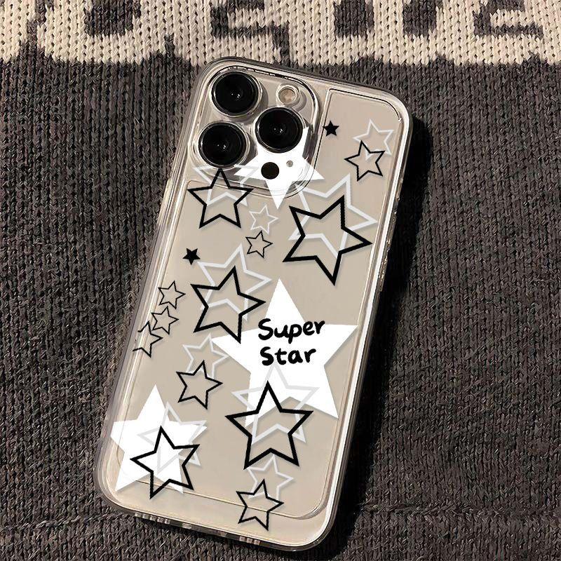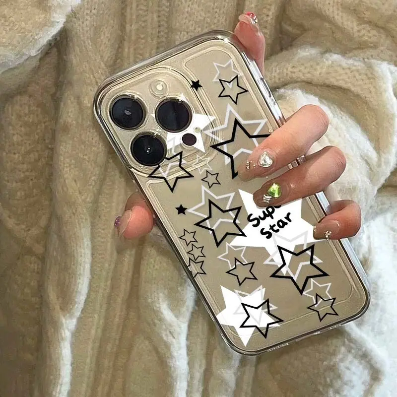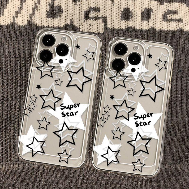 Estrella Hueca Blanca y Negra Adecuado para iPhone 17 Pro Max Carcasa de Teléfono Espacial 16 Apple 13 Cobertura Completa 15 Transparente XS