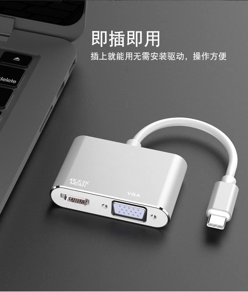 Adaptador de computadora con concentrador de expansión USB multipuerto tipo C a HDMI/VGA, serie transfronteriza
