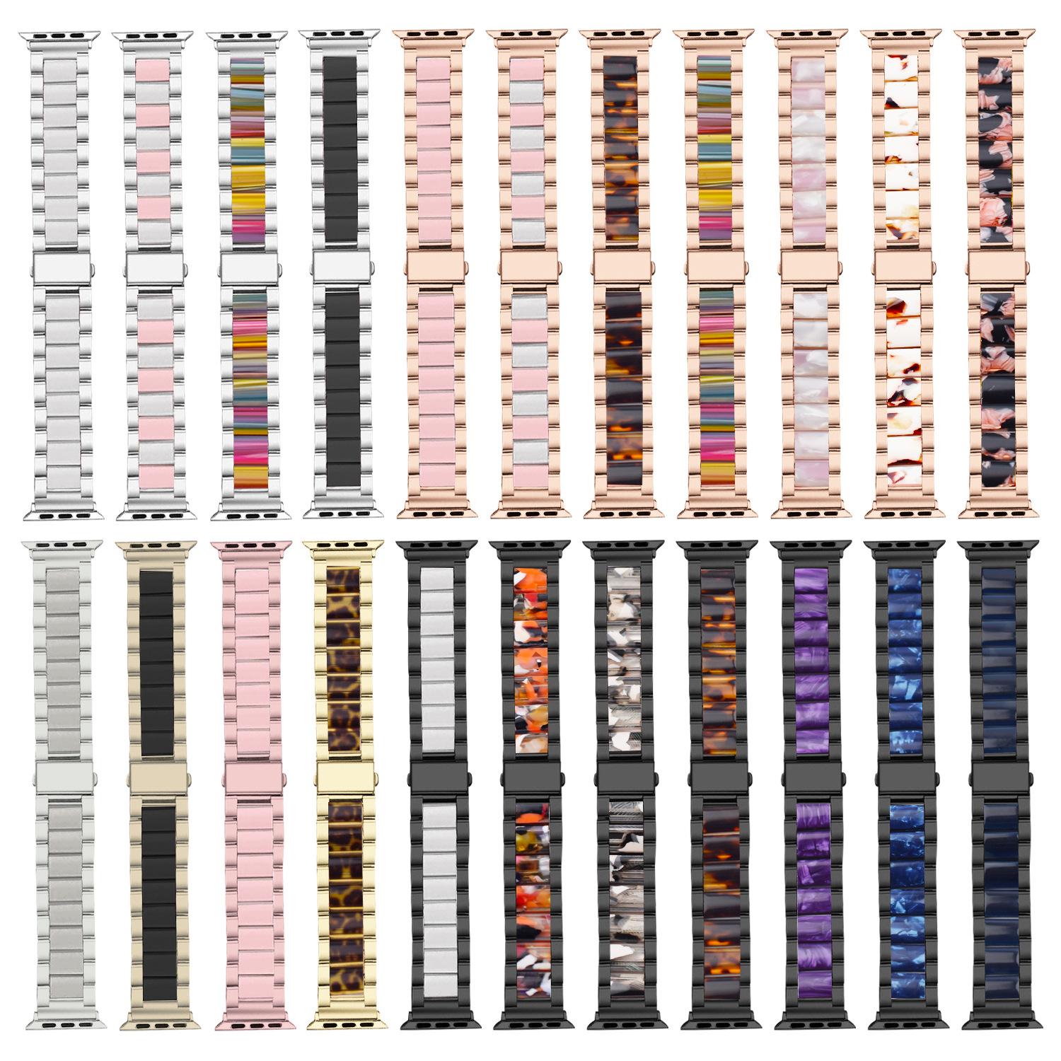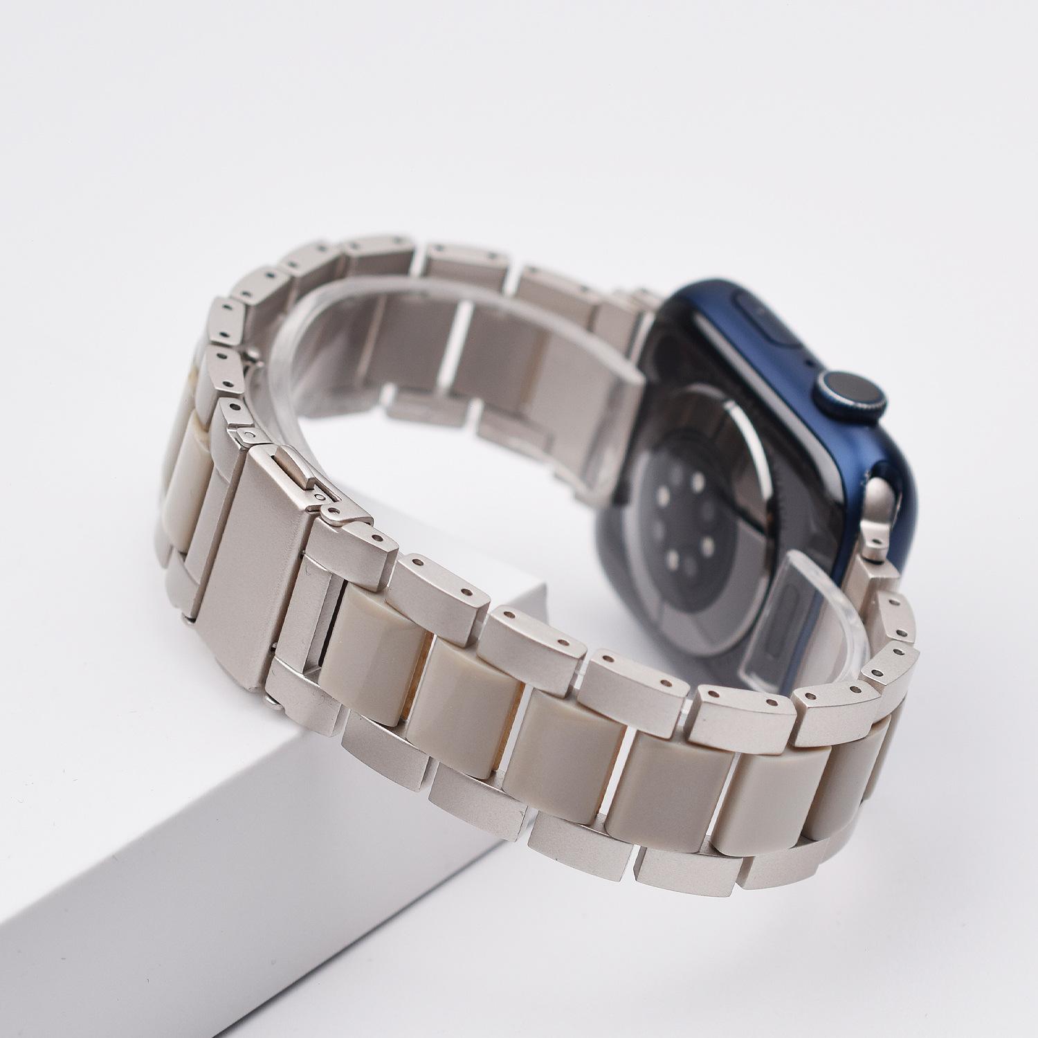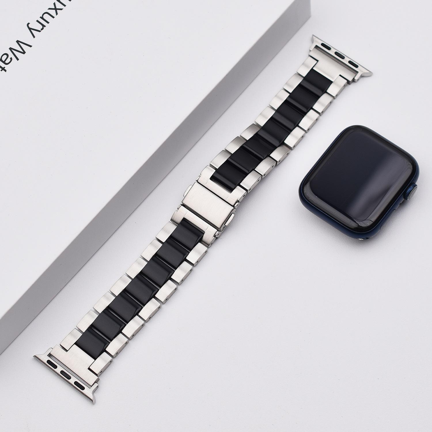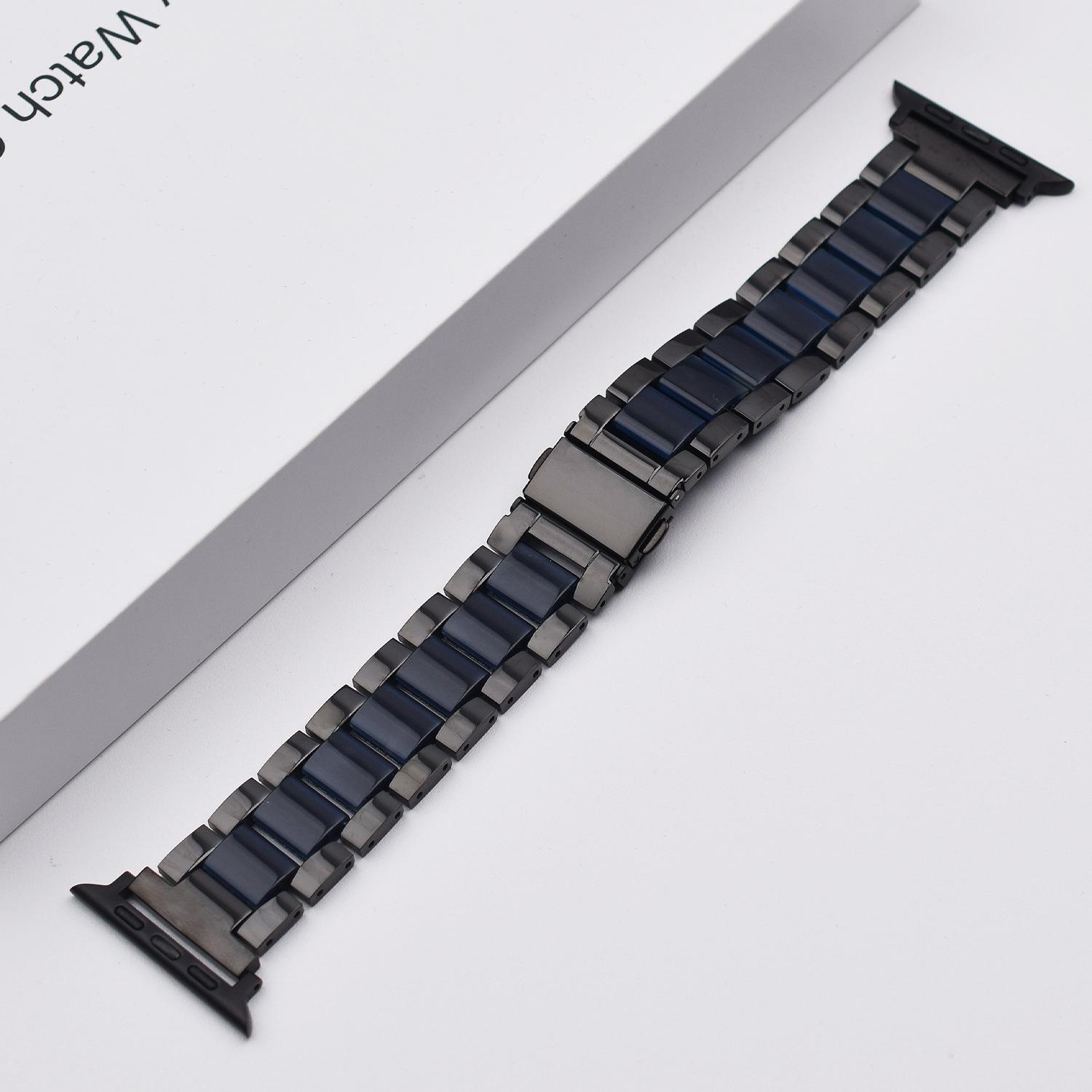 Correa de Resina de Acero Inoxidable Adecuada para Correa iWatch Correa Apple Watch Correa Metálica de Tres Eslabones Hebilla Mariposa