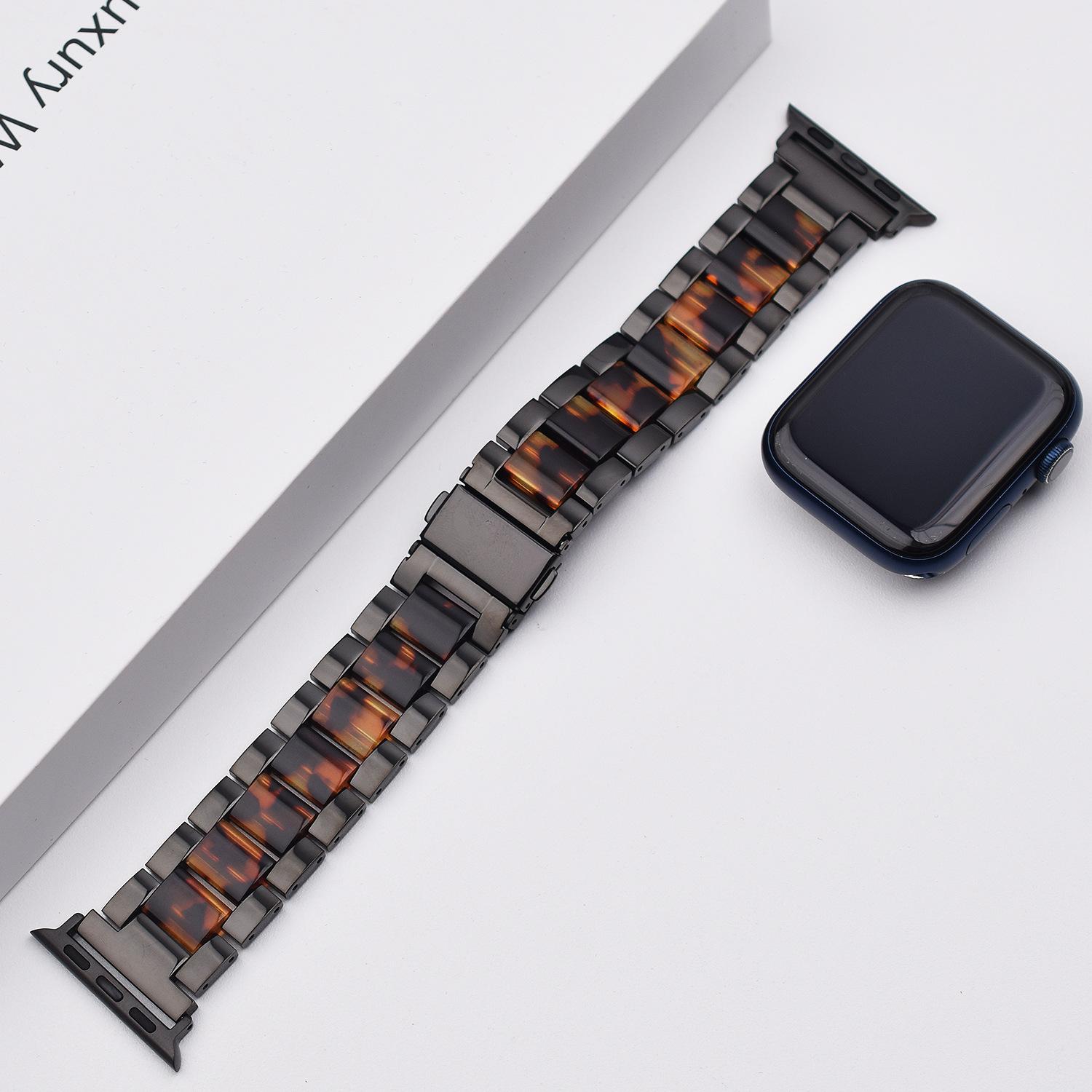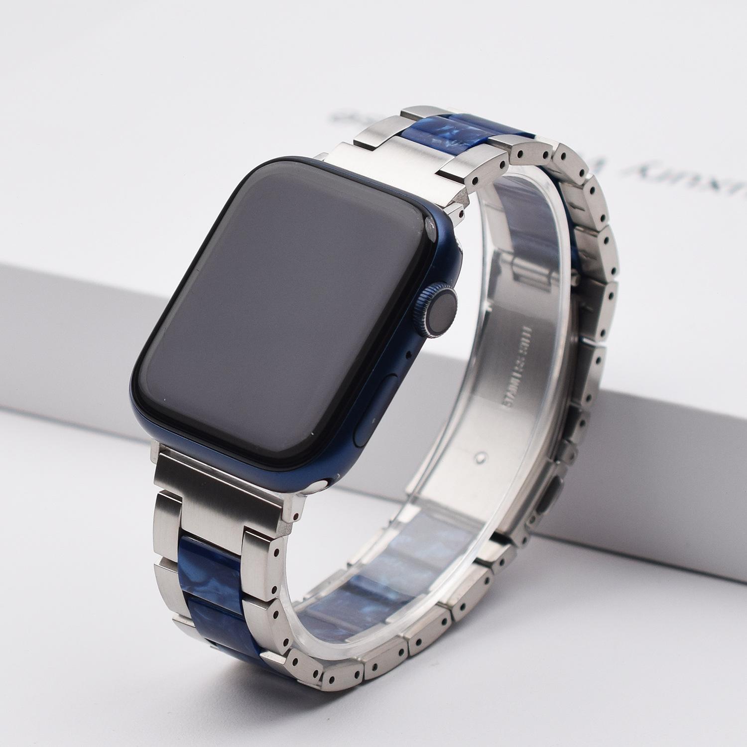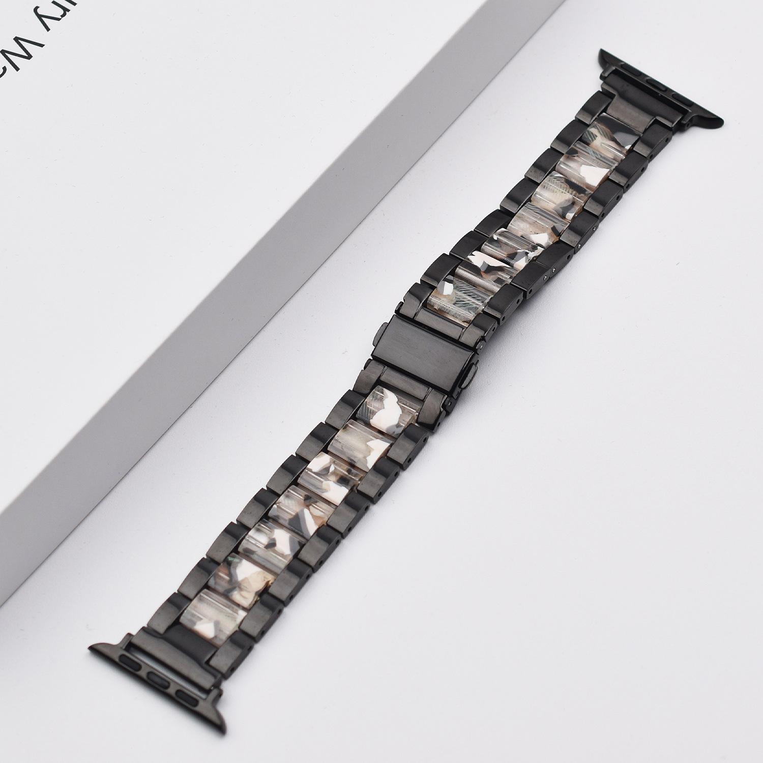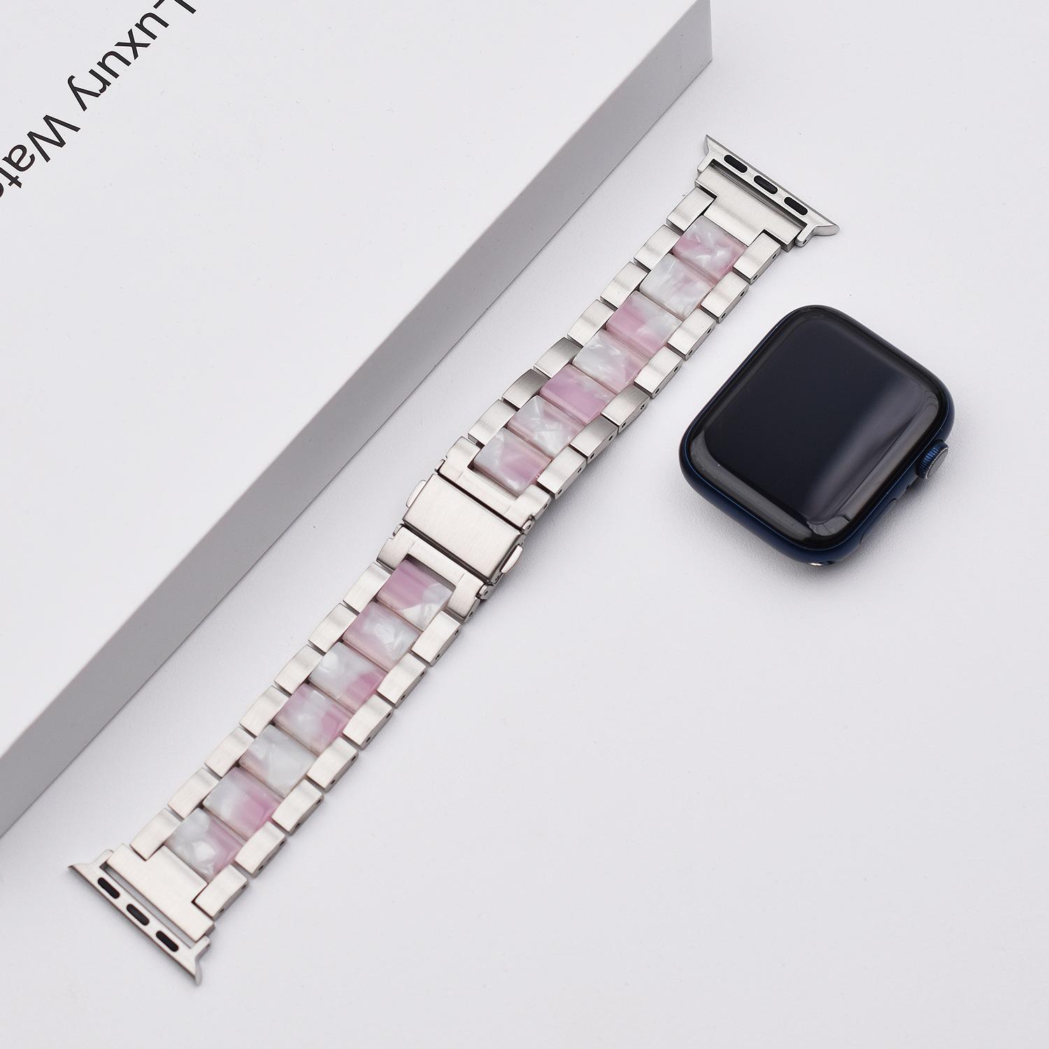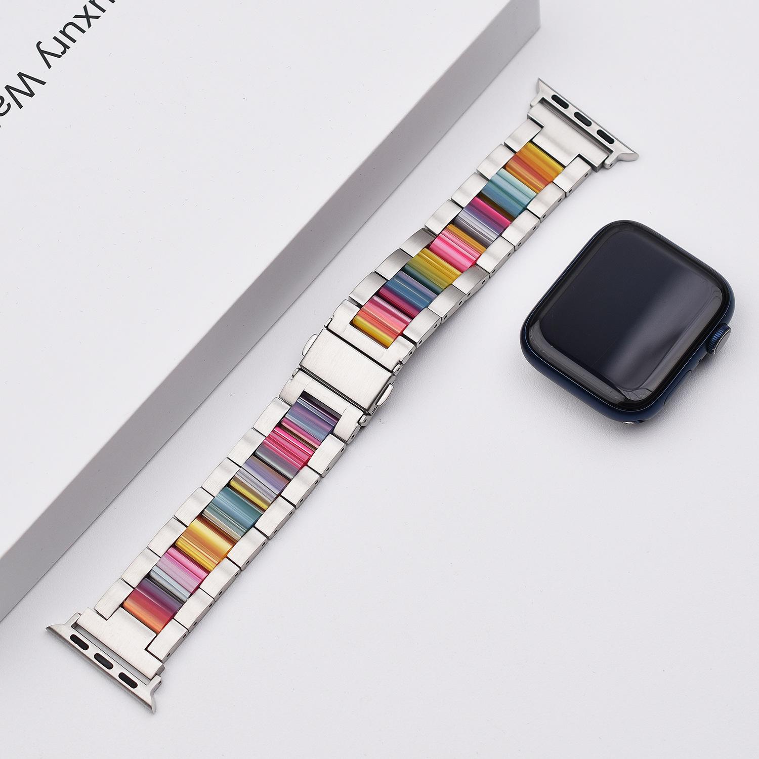 Correa de Resina de Acero Inoxidable Adecuada para Correa iWatch Correa Apple Watch Correa Metálica de Tres Eslabones Hebilla Mariposa