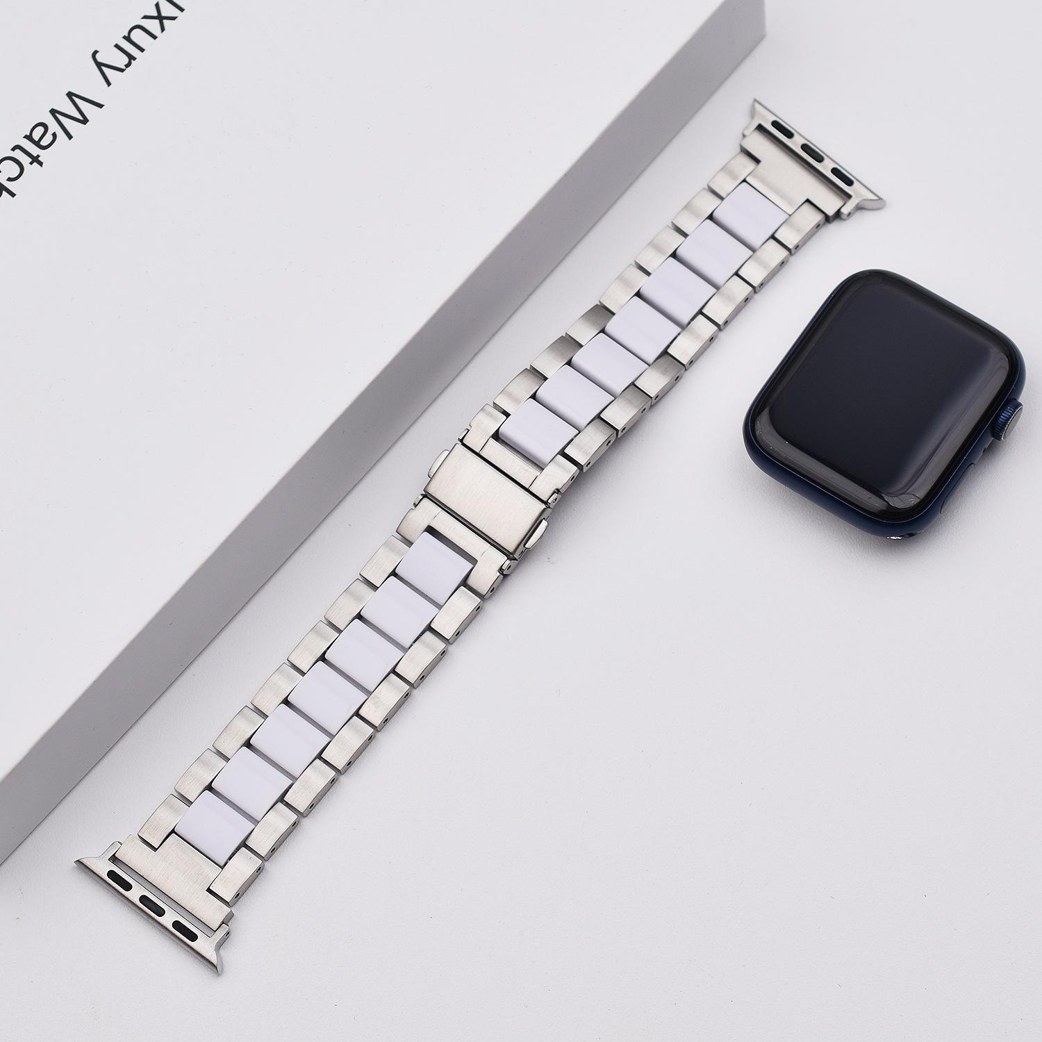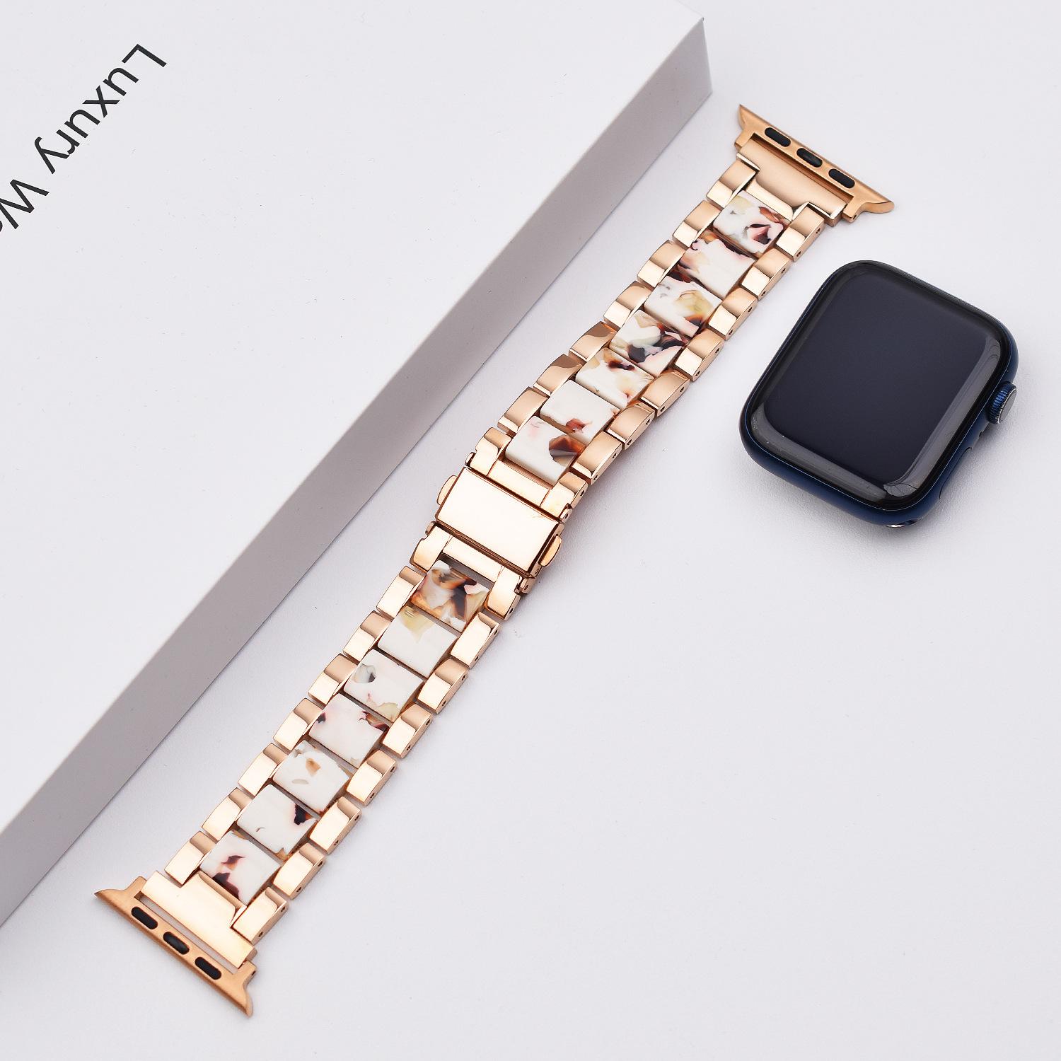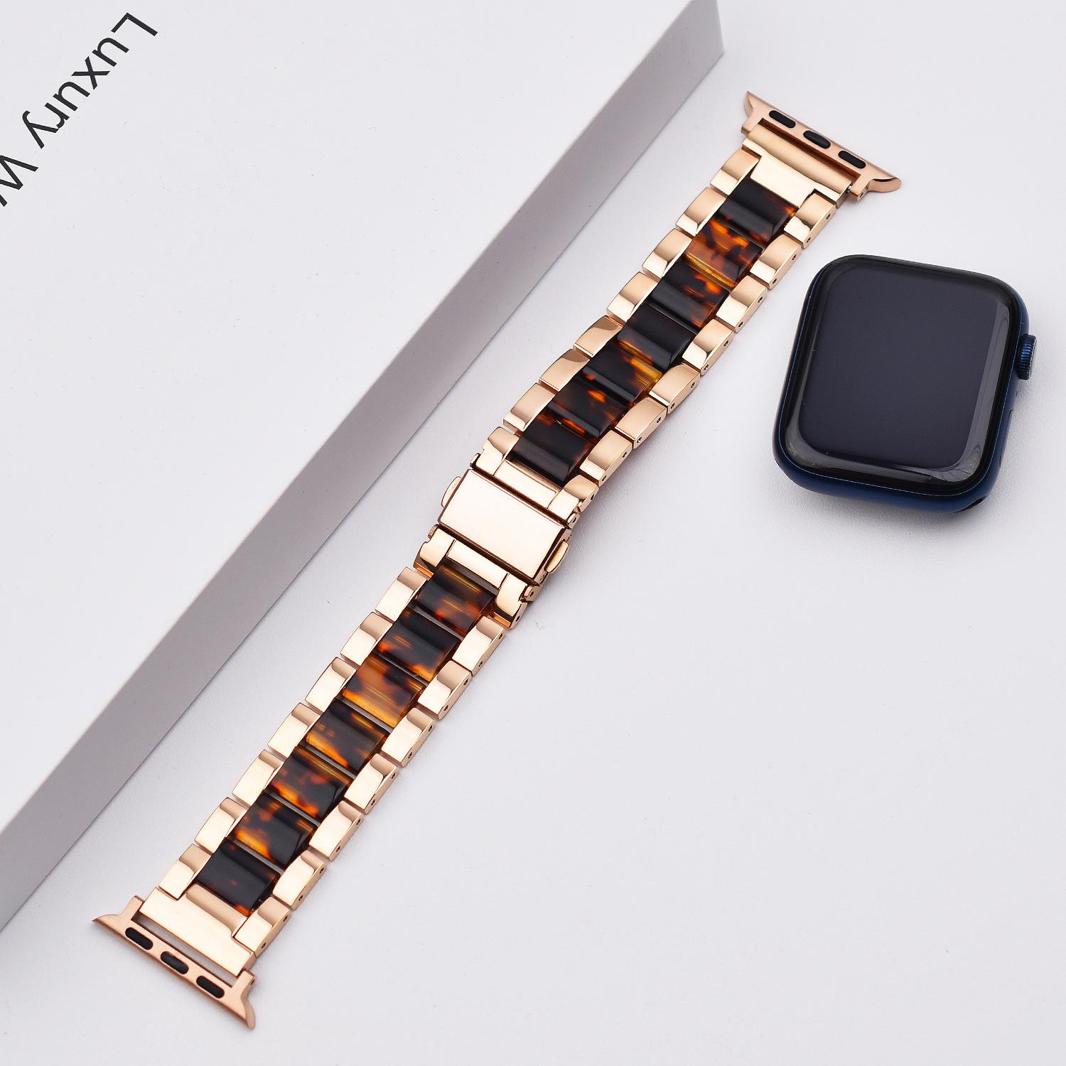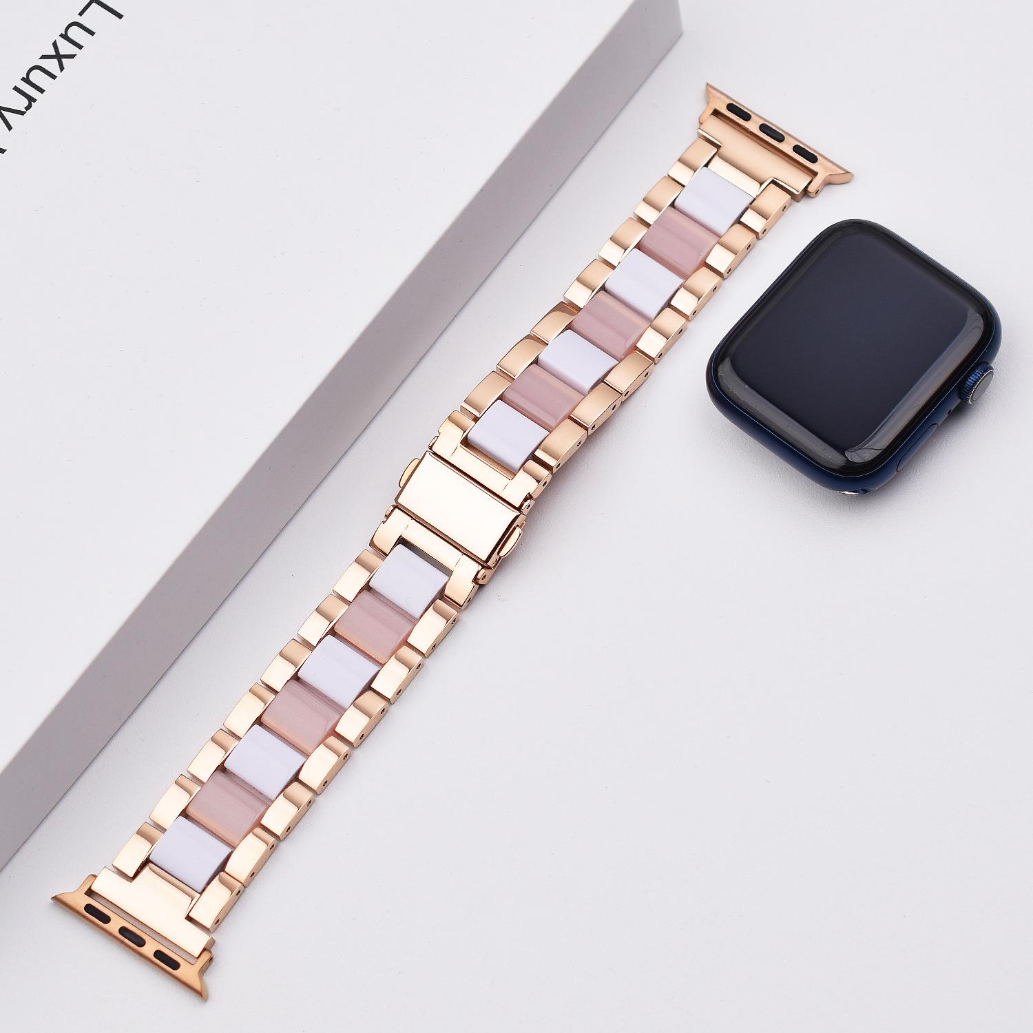 Correa de Resina de Acero Inoxidable Adecuada para Correa iWatch Correa Apple Watch Correa Metálica de Tres Eslabones Hebilla Mariposa