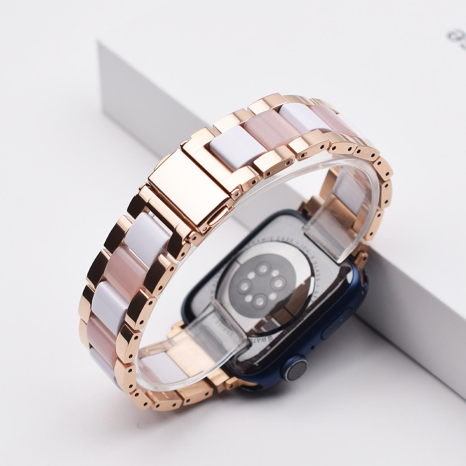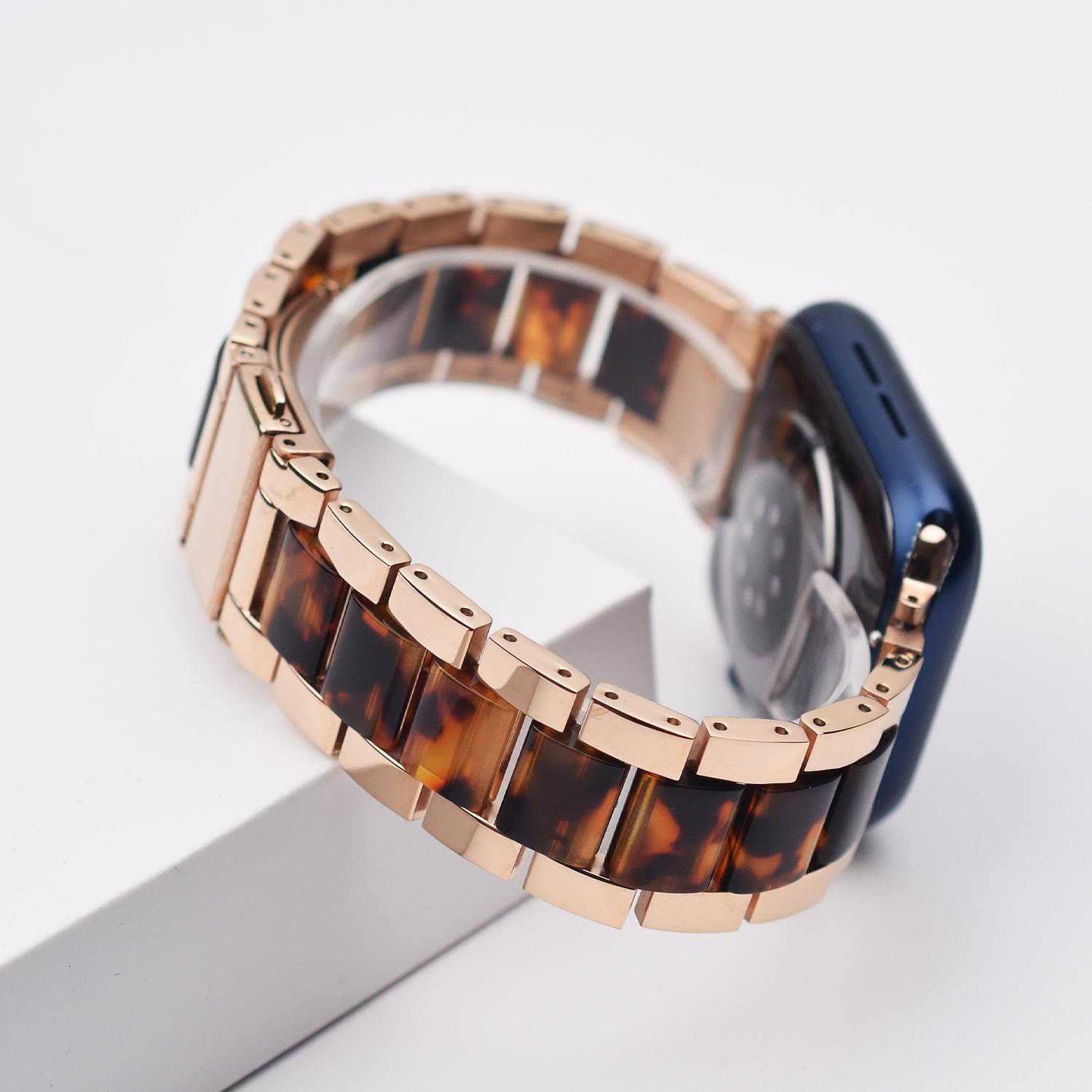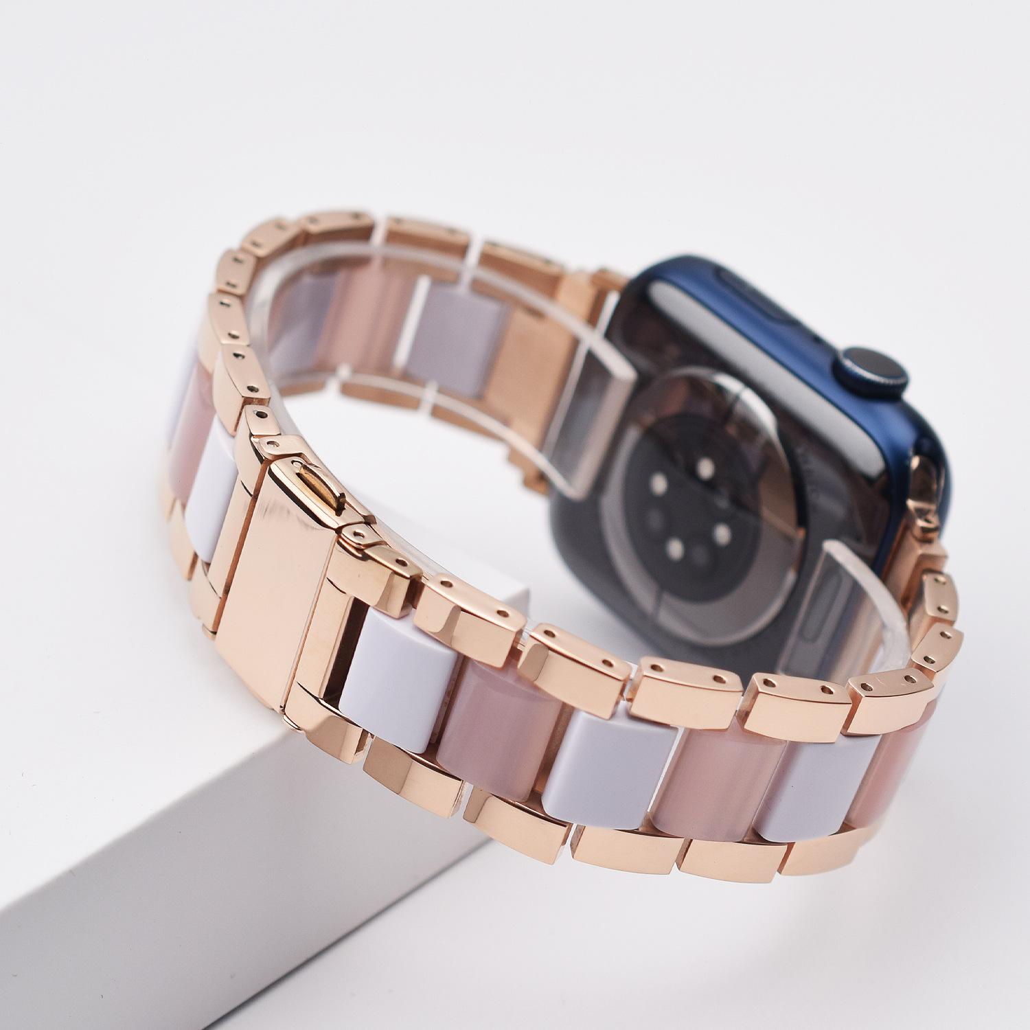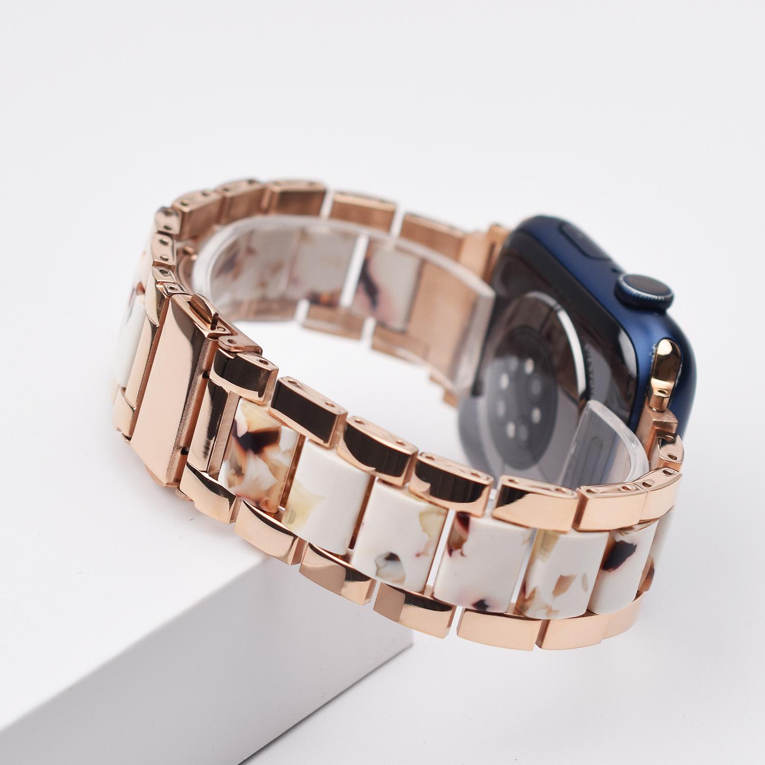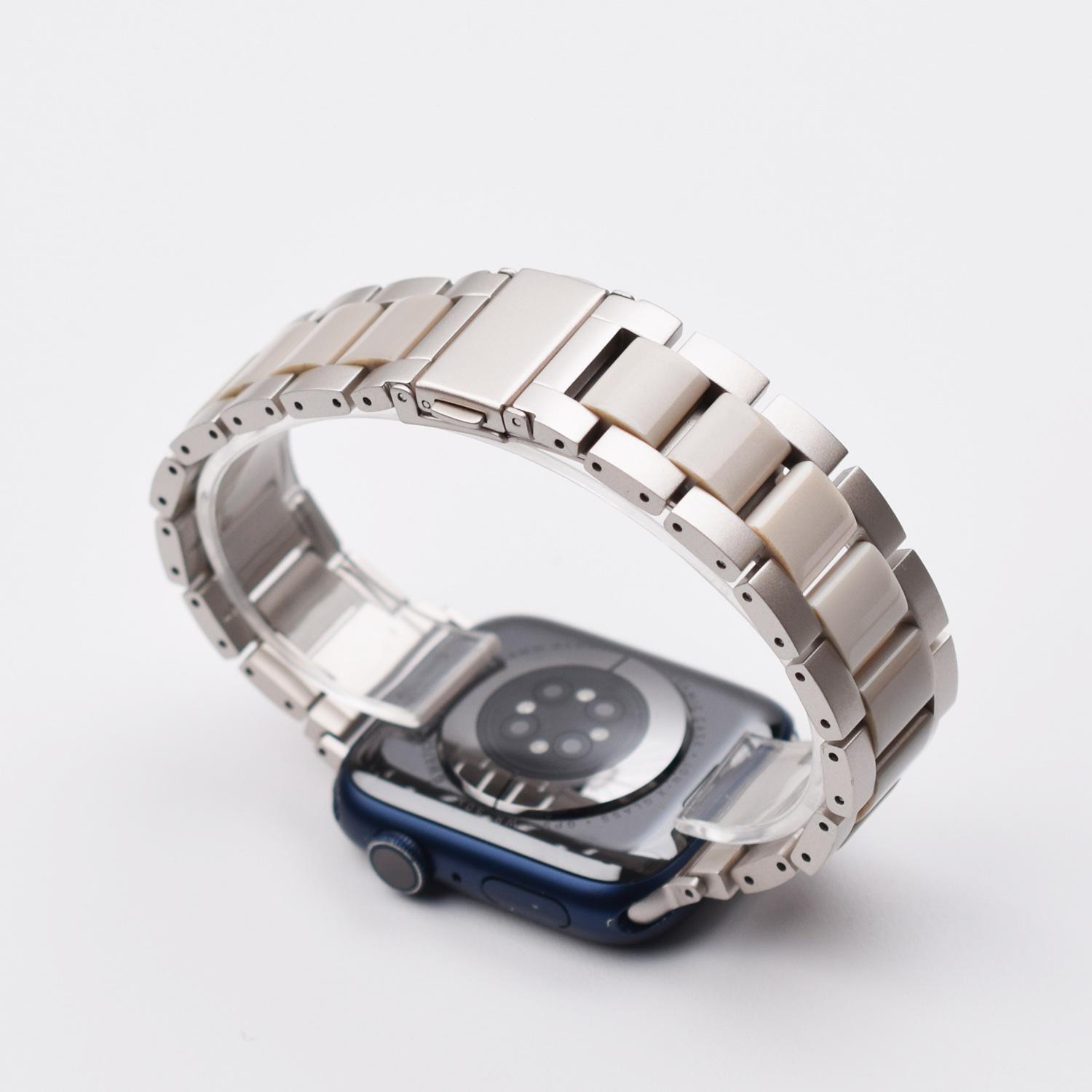 Correa de Resina de Acero Inoxidable Adecuada para Correa iWatch Correa Apple Watch Correa Metálica de Tres Eslabones Hebilla Mariposa