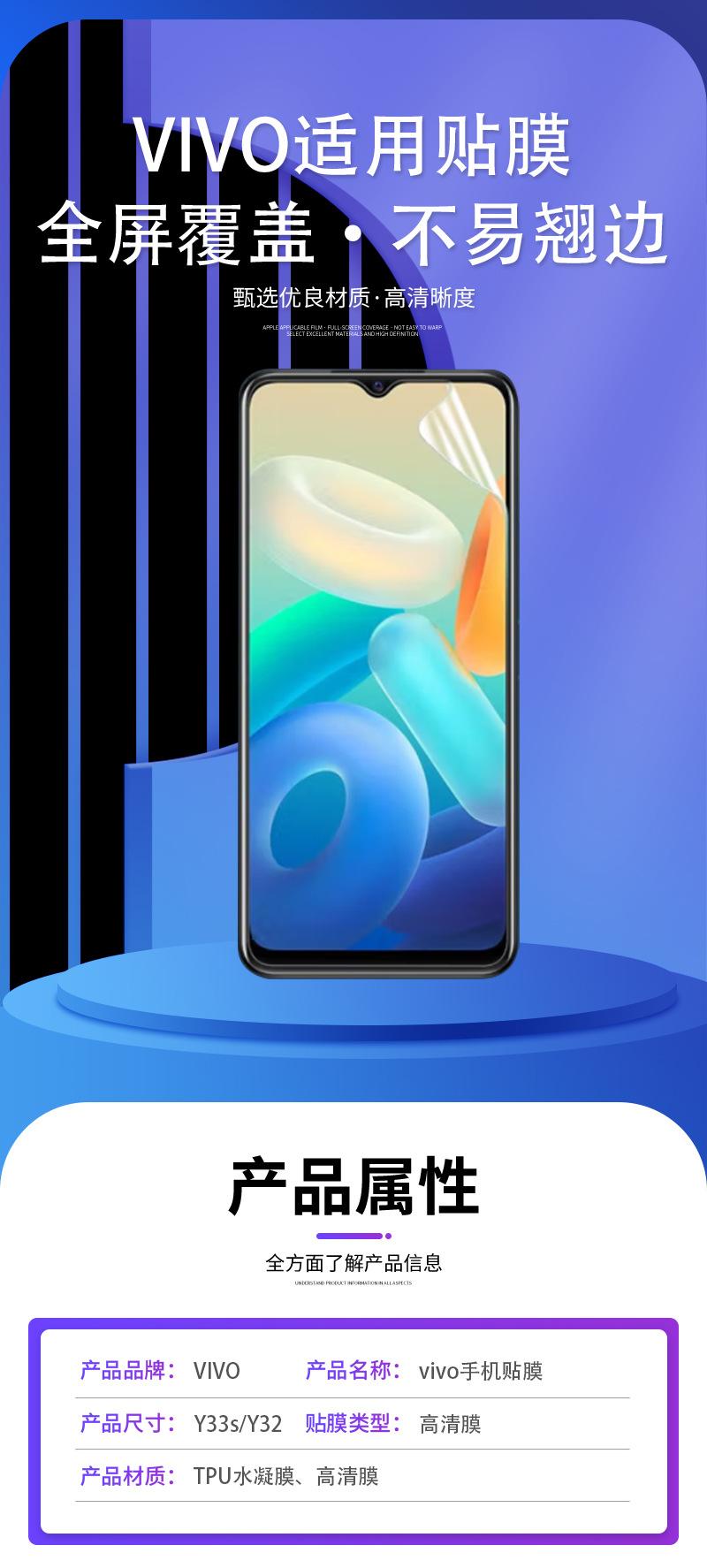 Aplicable a la película transparente del teléfono inteligente VIVO Y33S Y32 película protectora de pantalla completa PET HD a prueba de arañazos en stock