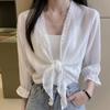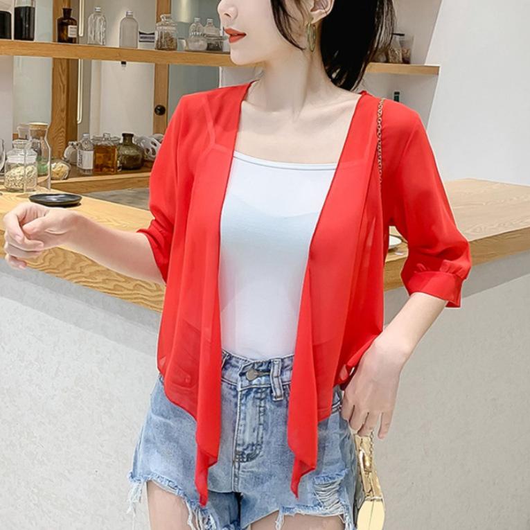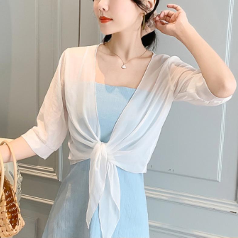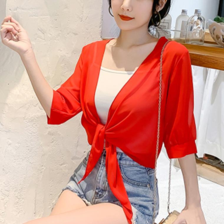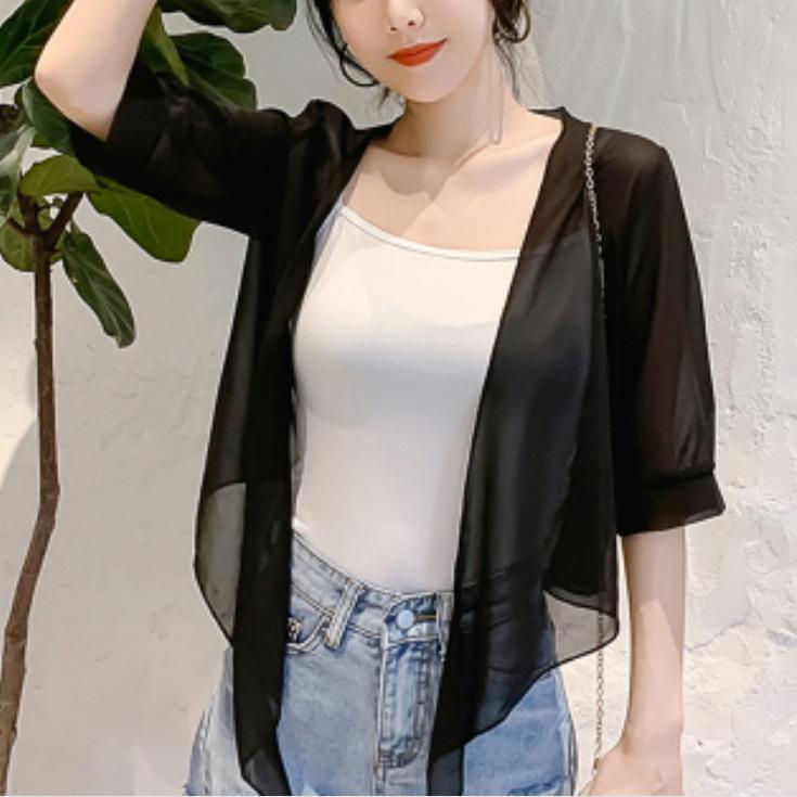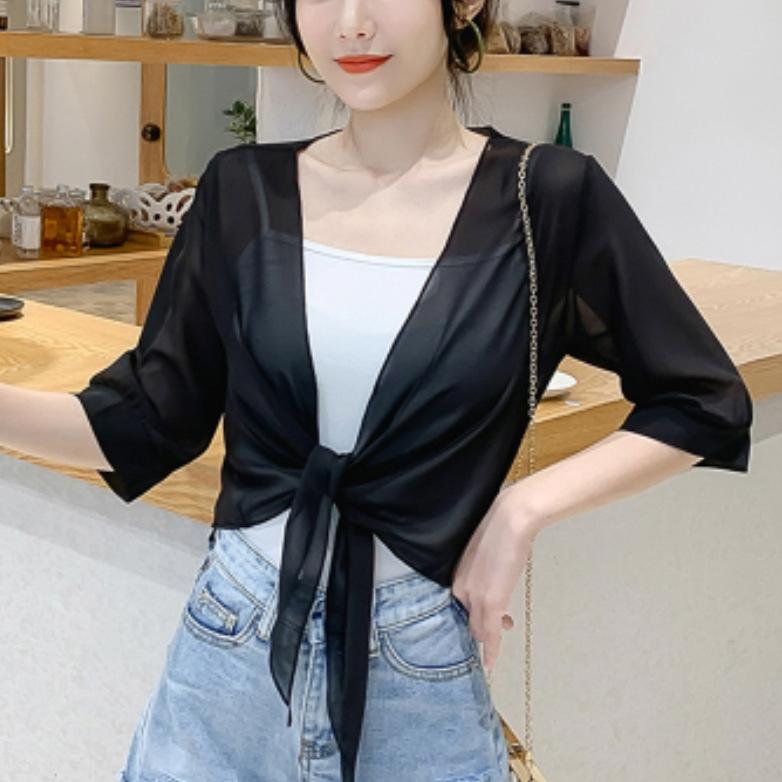 Abrigo de verano con chal pequeño y falda de tirantes, cárdigan corto con protección solar, top de gasa para mujer, exterior fino que combina con todo