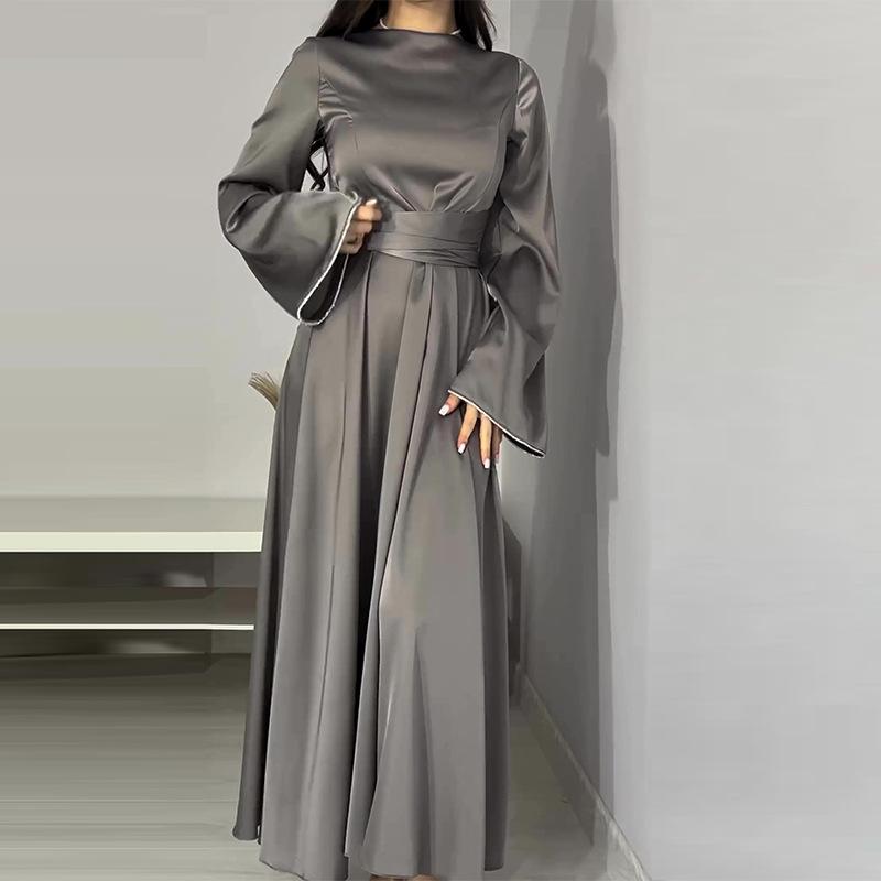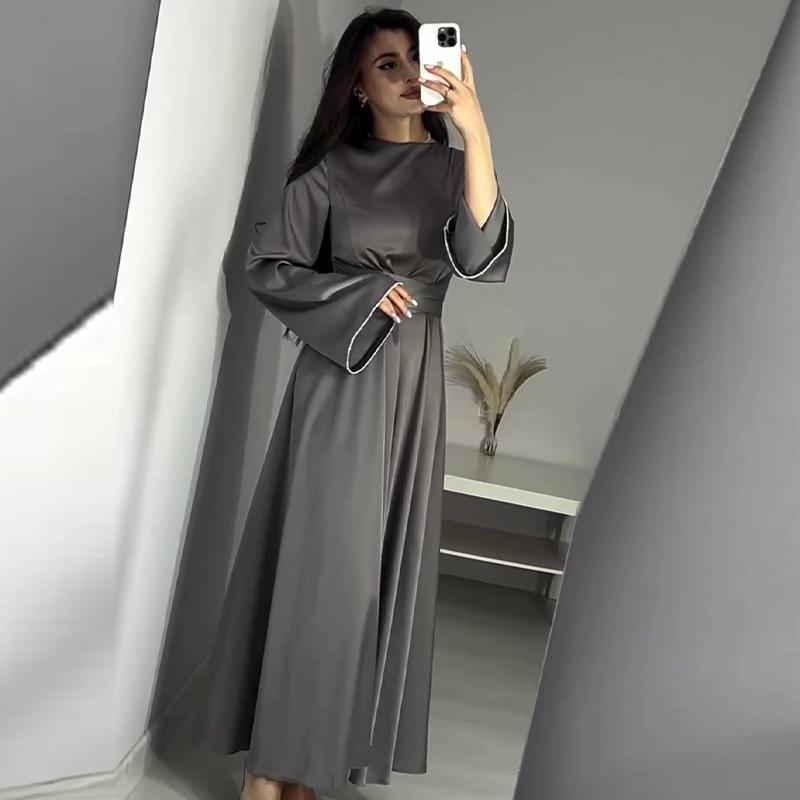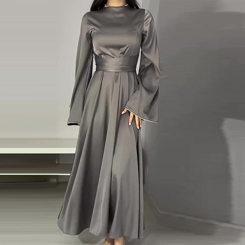 Otoño 2024 Nuevo vestido elegante de manga larga con cuello redondo y cinturón de color sólido transfronterizo de Amazon transfronterizo de Europa y América