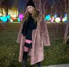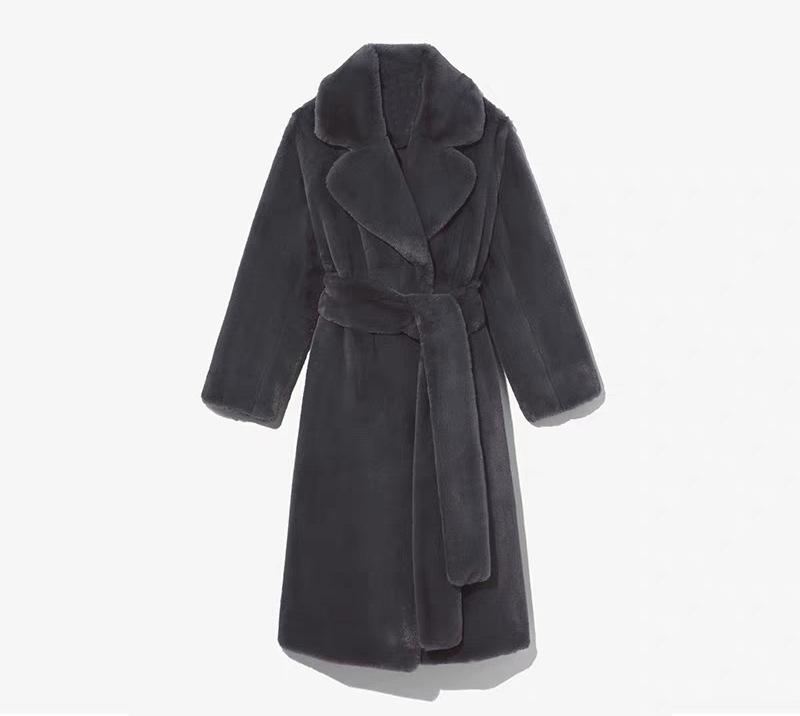 Abrigo de piel sintética de conejo para mujer, abrigo de felpa cálido y grueso con cinturón largo, para invierno, nuevo, transfronterizo