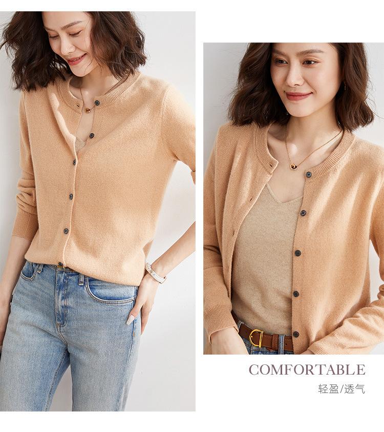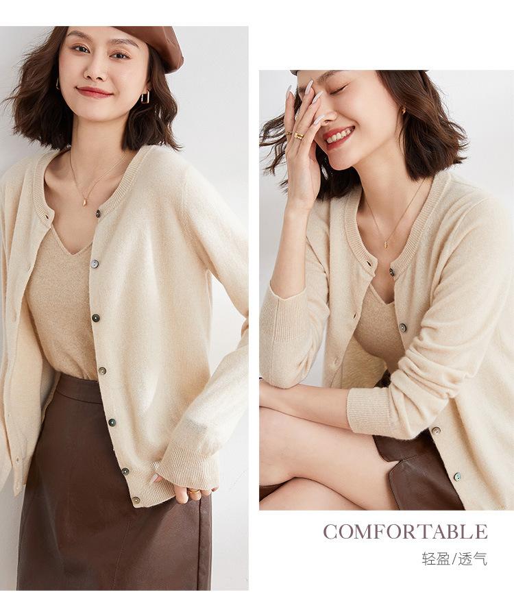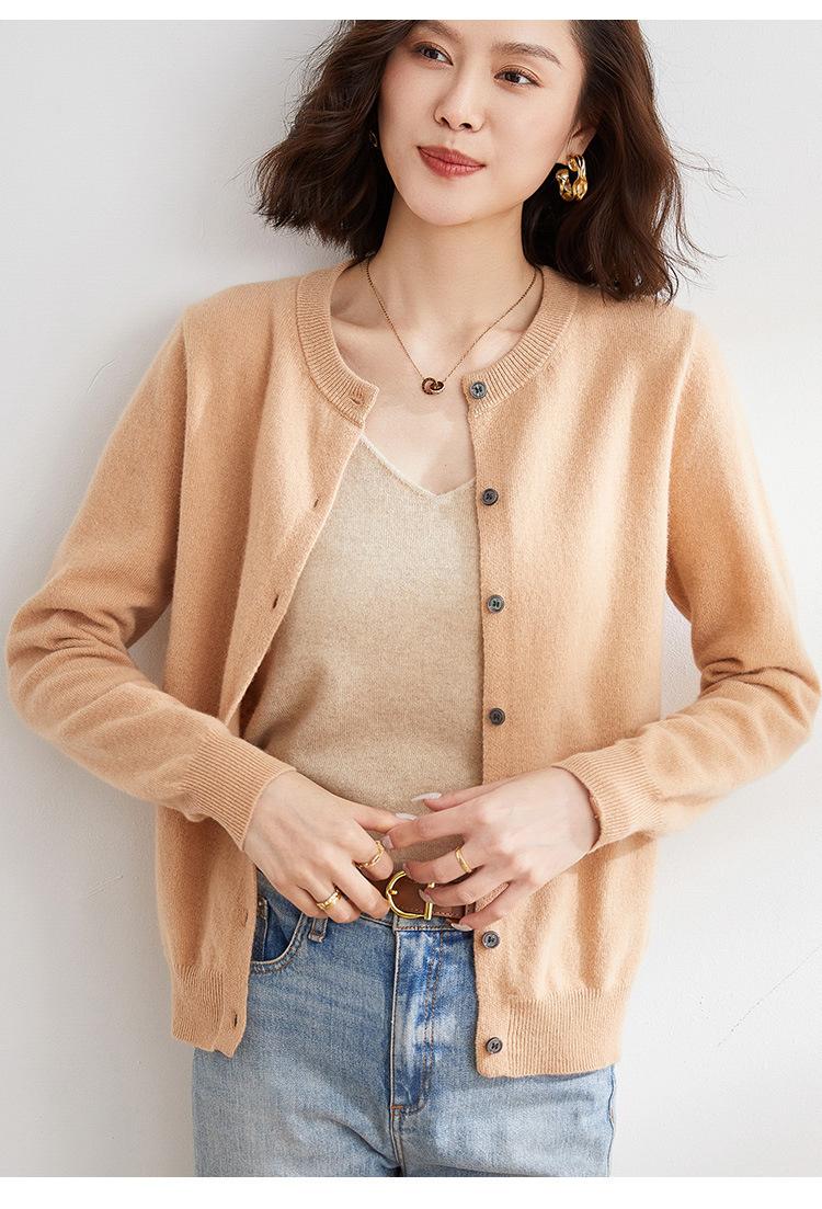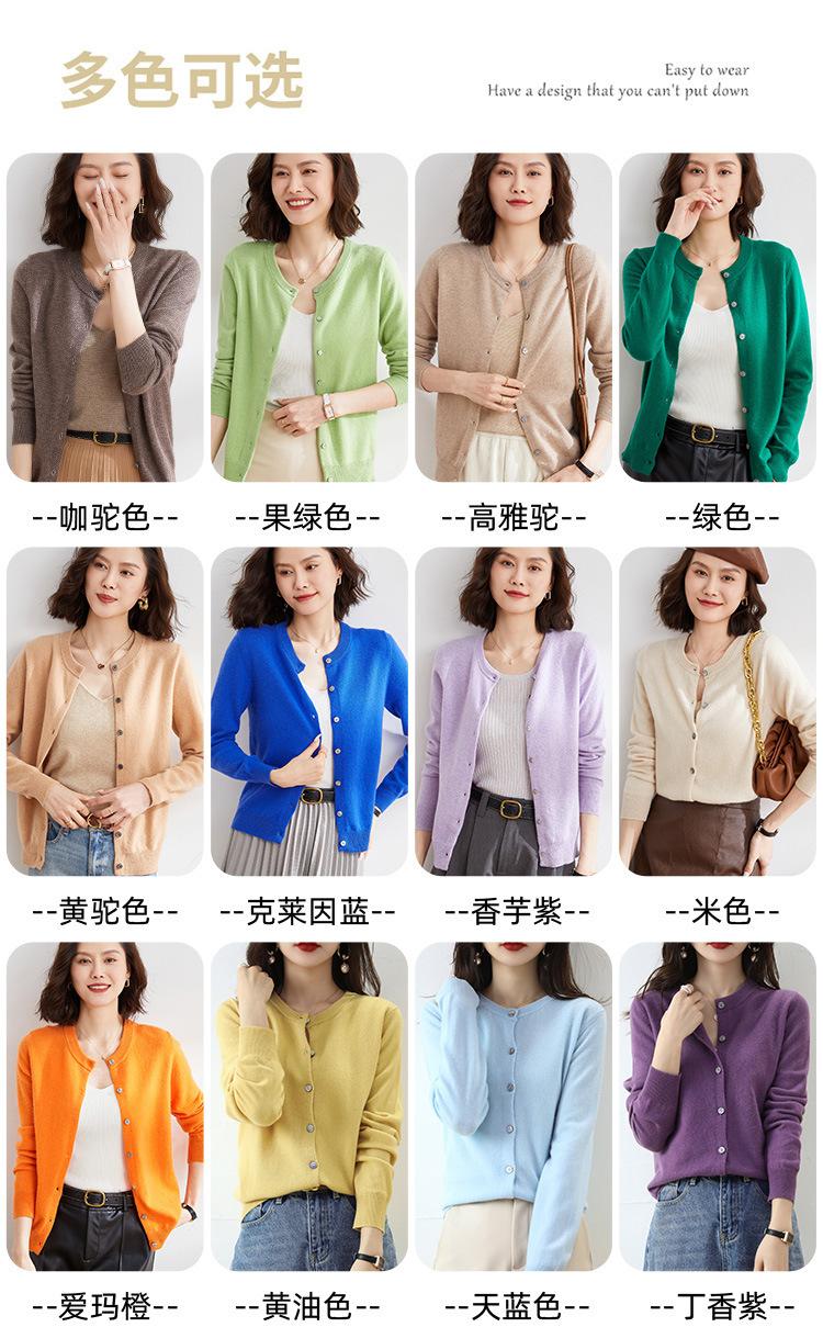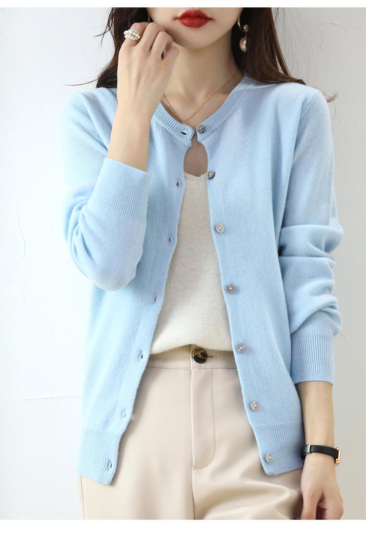 Cárdigan de Punto de Cuello Redondo Estilo Nuevo de Primavera y Otoño para Mujer, Manga Larga, Abrigo, Suéter de Punto, Color Sólido, Chaqueta Delgada para Mujer