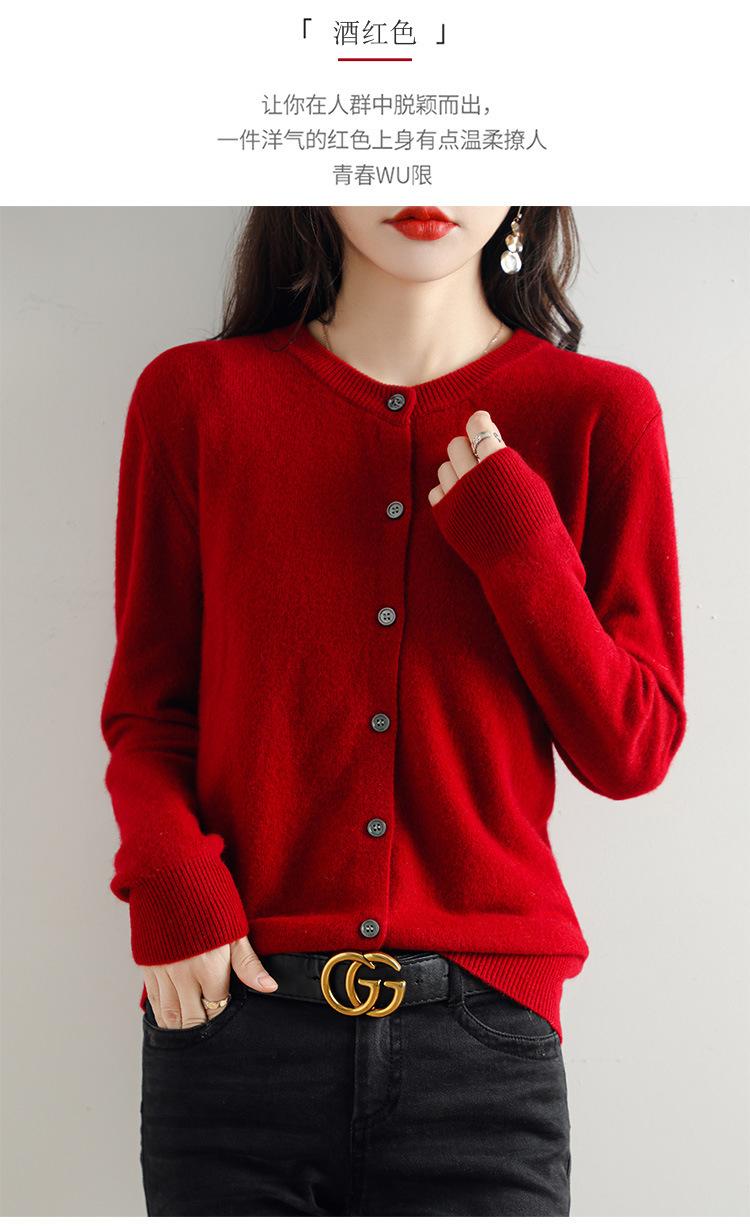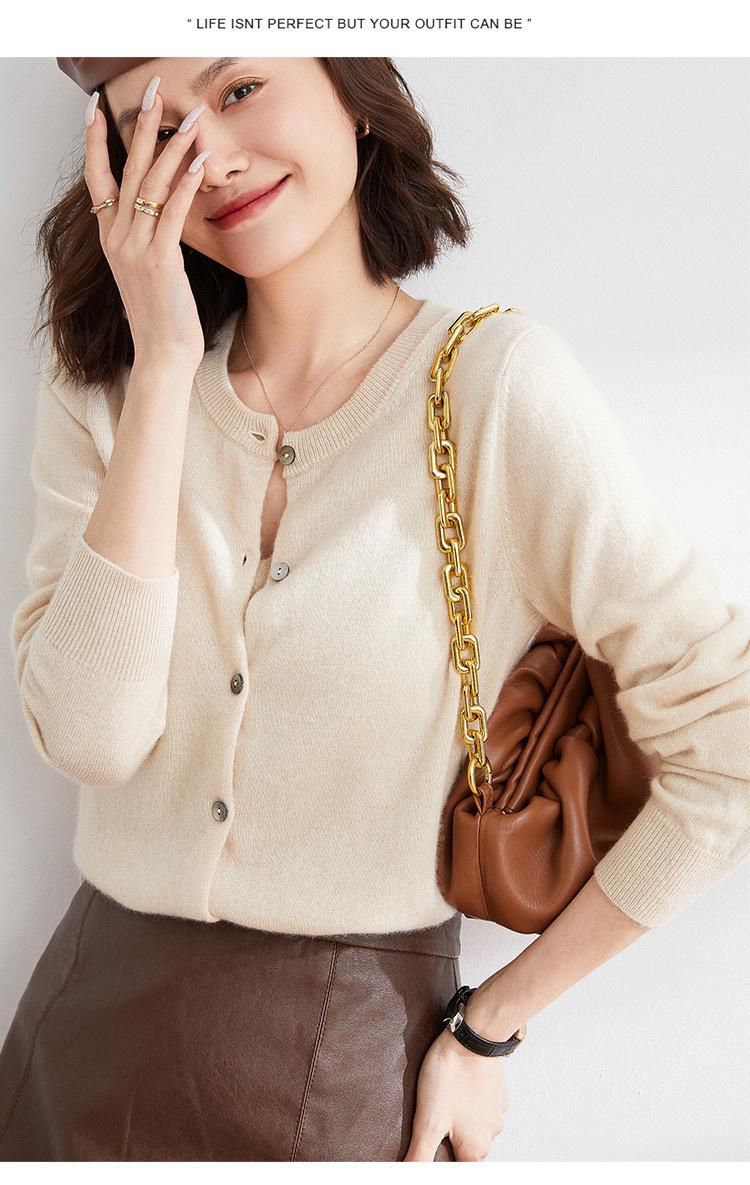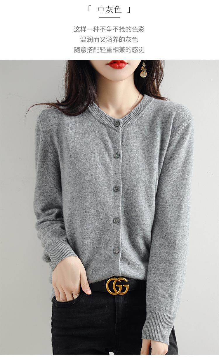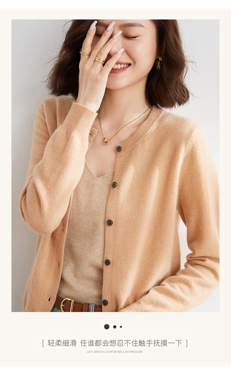 Cárdigan de Punto de Cuello Redondo Estilo Nuevo de Primavera y Otoño para Mujer, Manga Larga, Abrigo, Suéter de Punto, Color Sólido, Chaqueta Delgada para Mujer