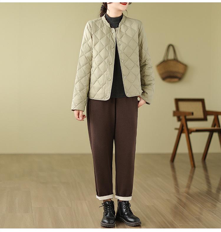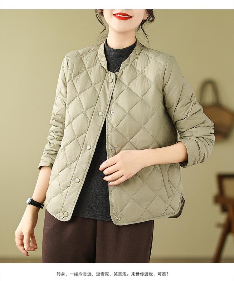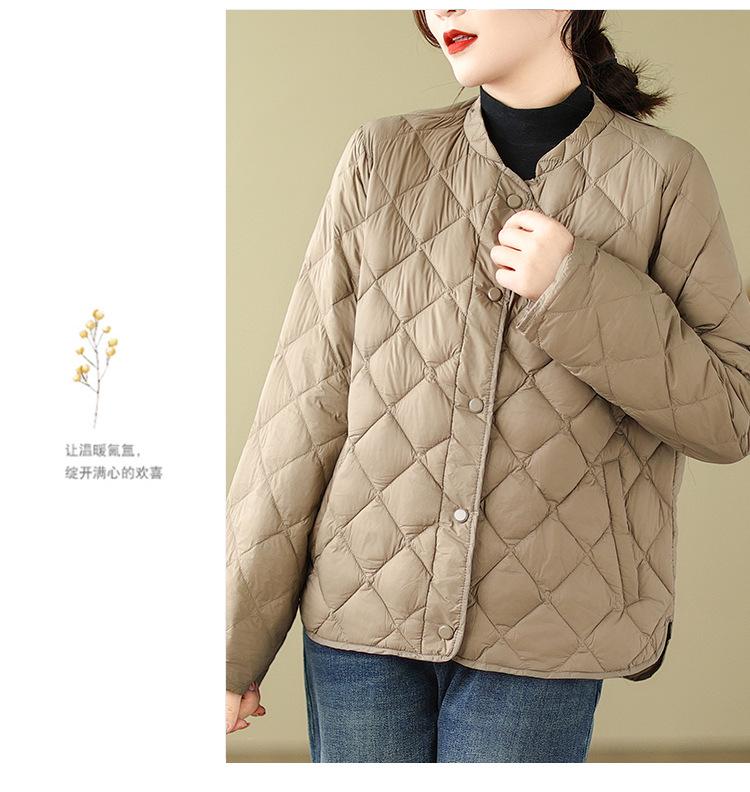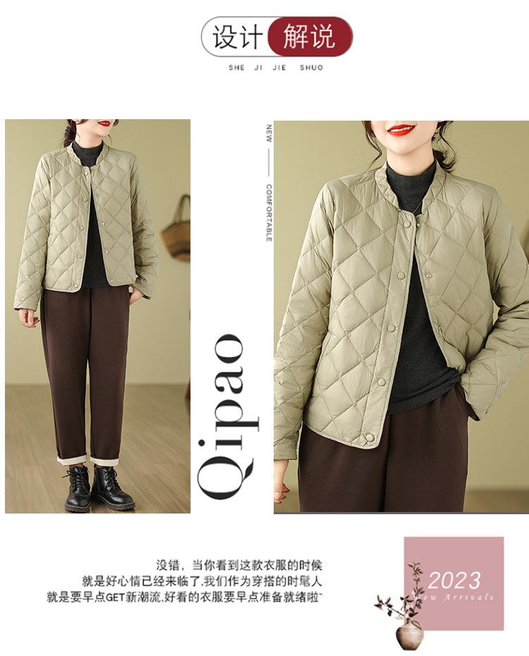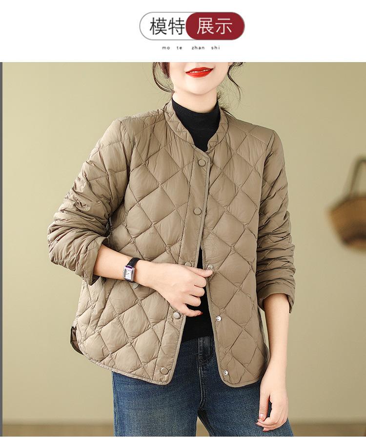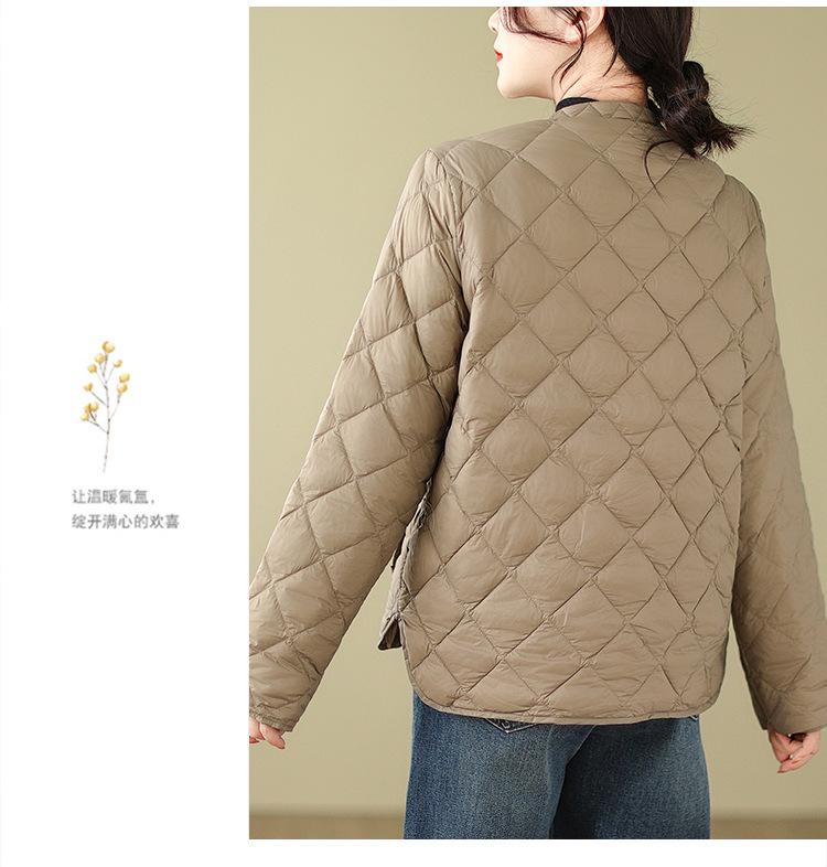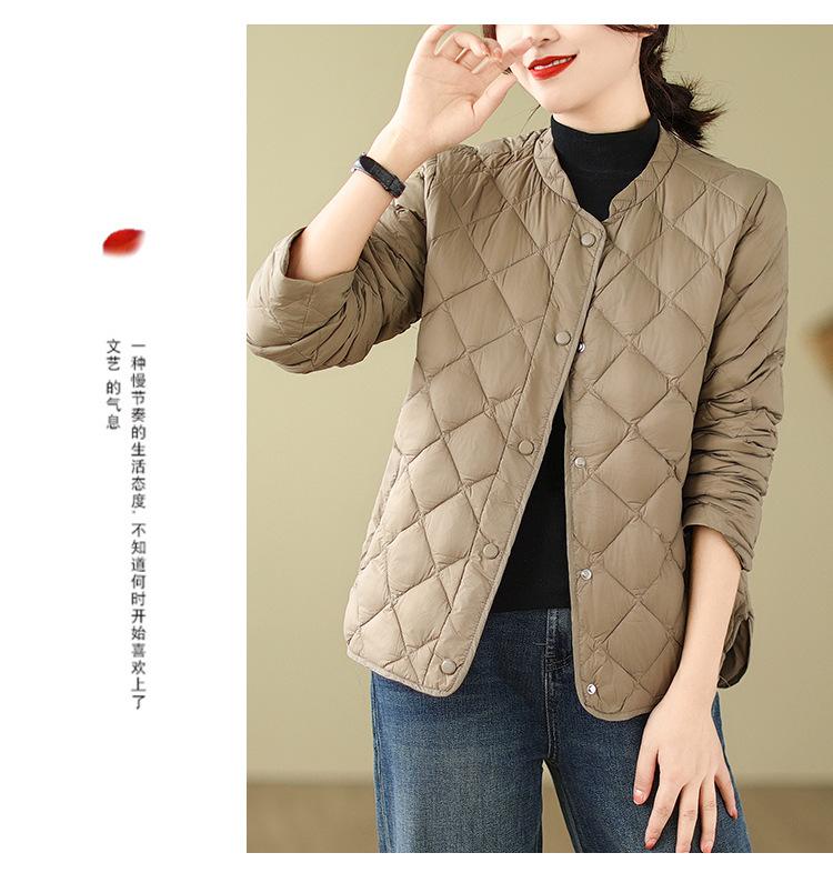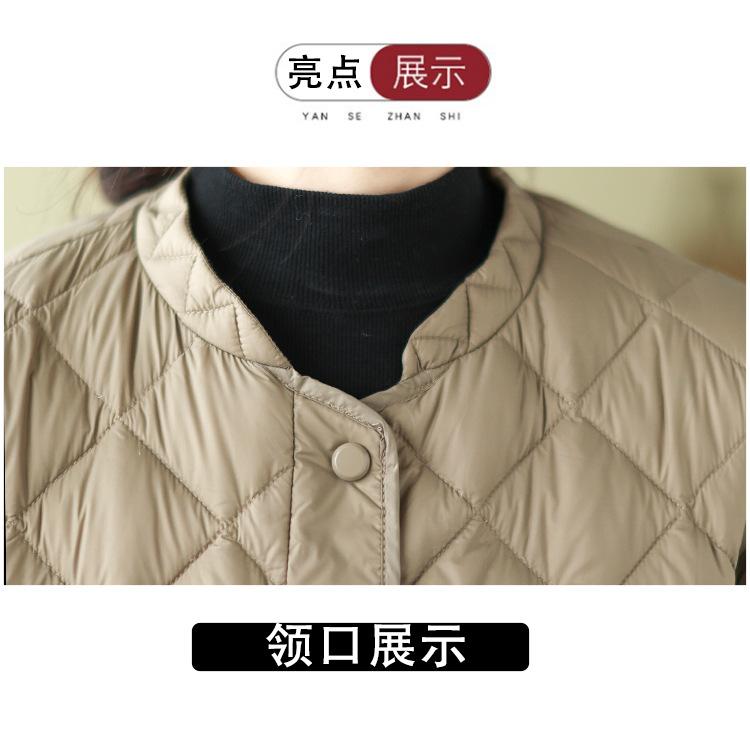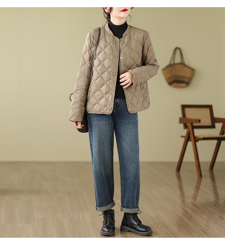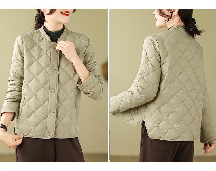 Foto Real de 2025 Nueva Moda de Otoño e Invierno Acolchada Ligera Plumón Fino Algodón para Mujer Cuello Alto Manga Larga Cálida Chaqueta de Algodón