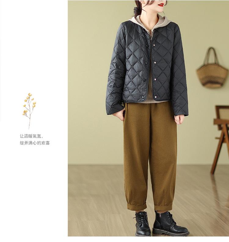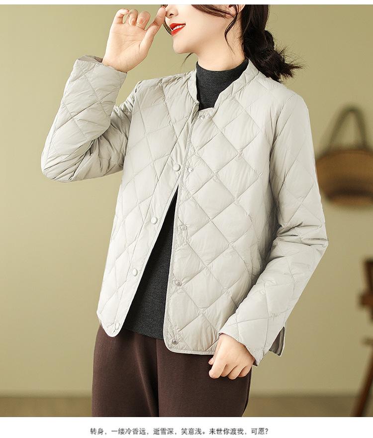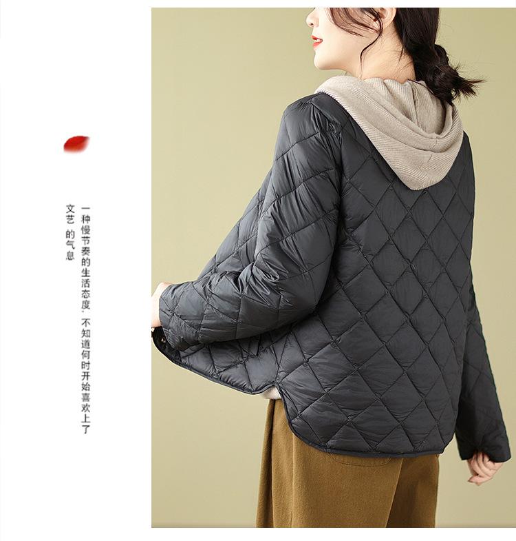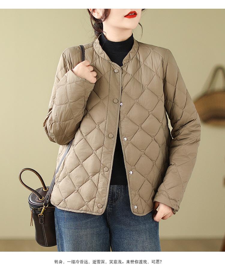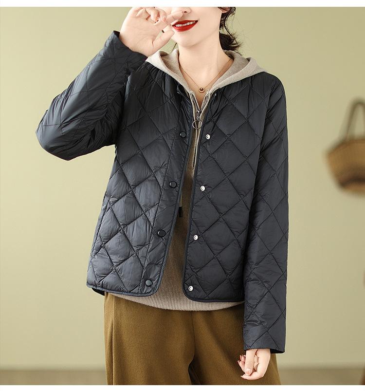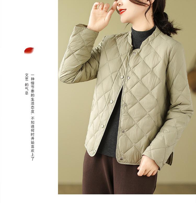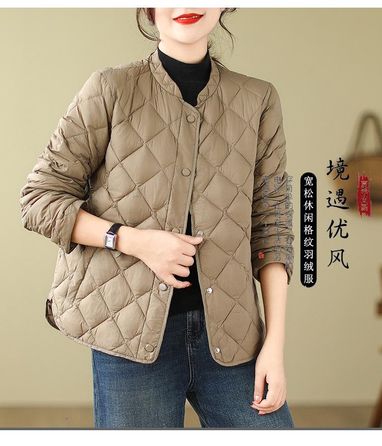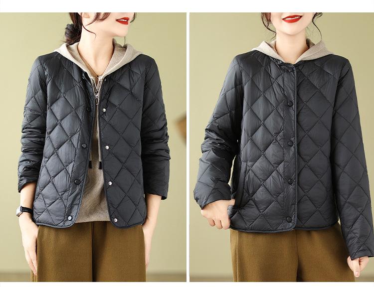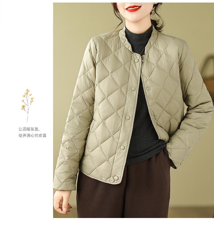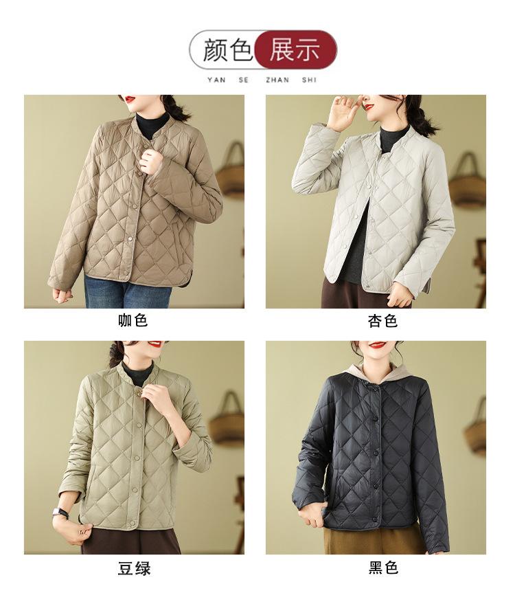 Foto Real de 2025 Nueva Moda de Otoño e Invierno Acolchada Ligera Plumón Fino Algodón para Mujer Cuello Alto Manga Larga Cálida Chaqueta de Algodón