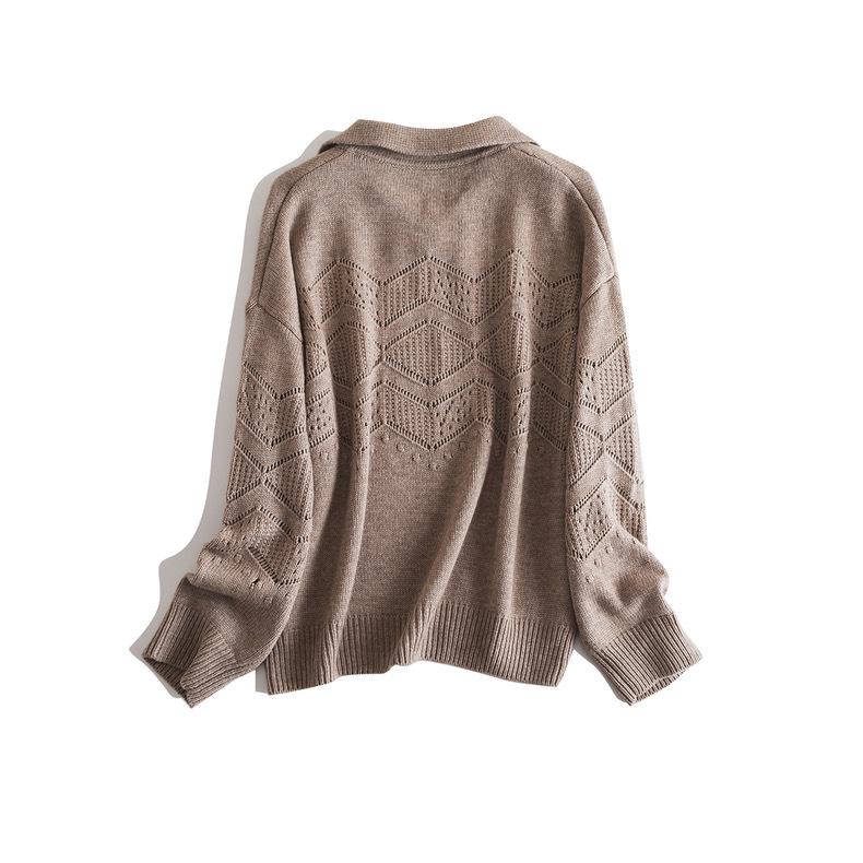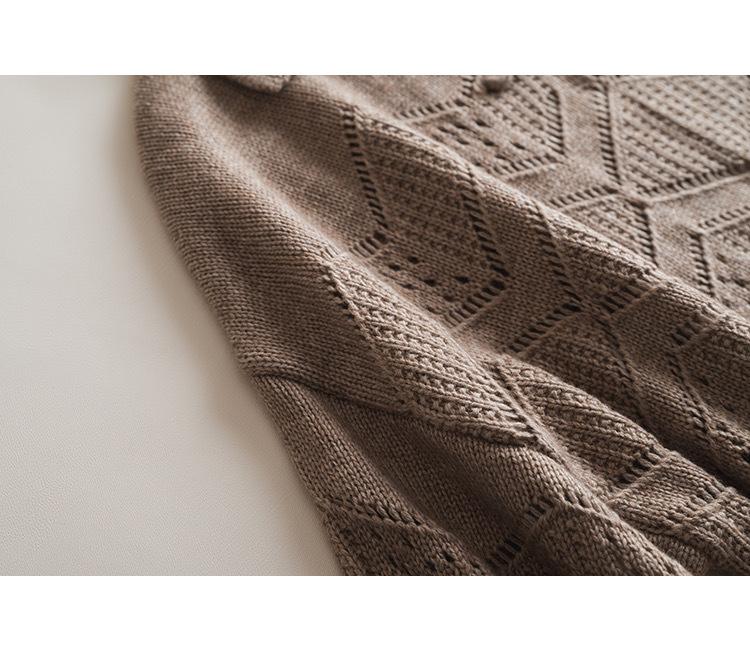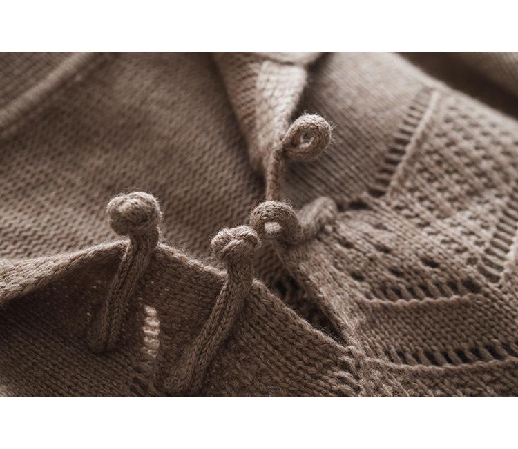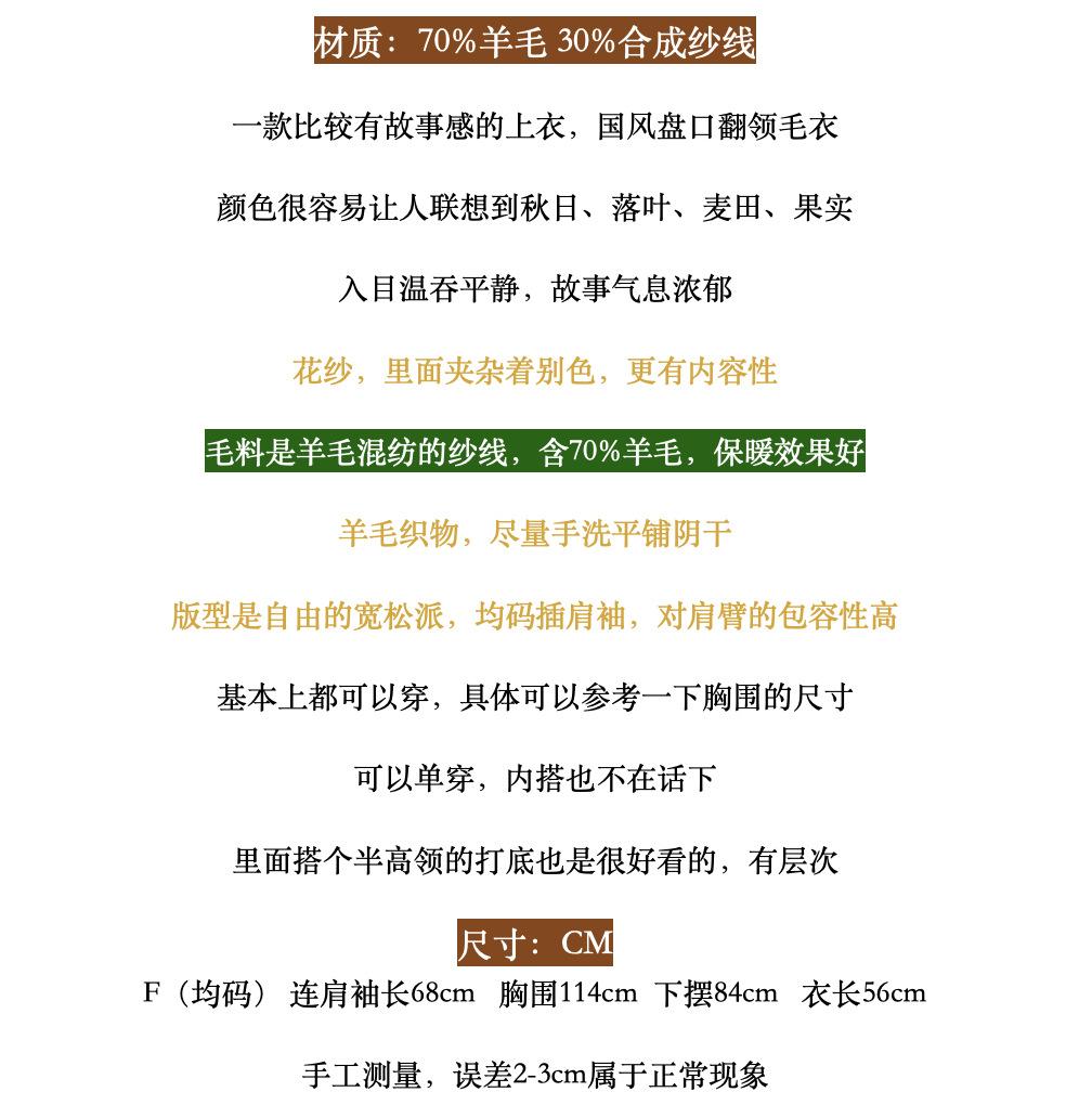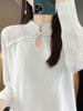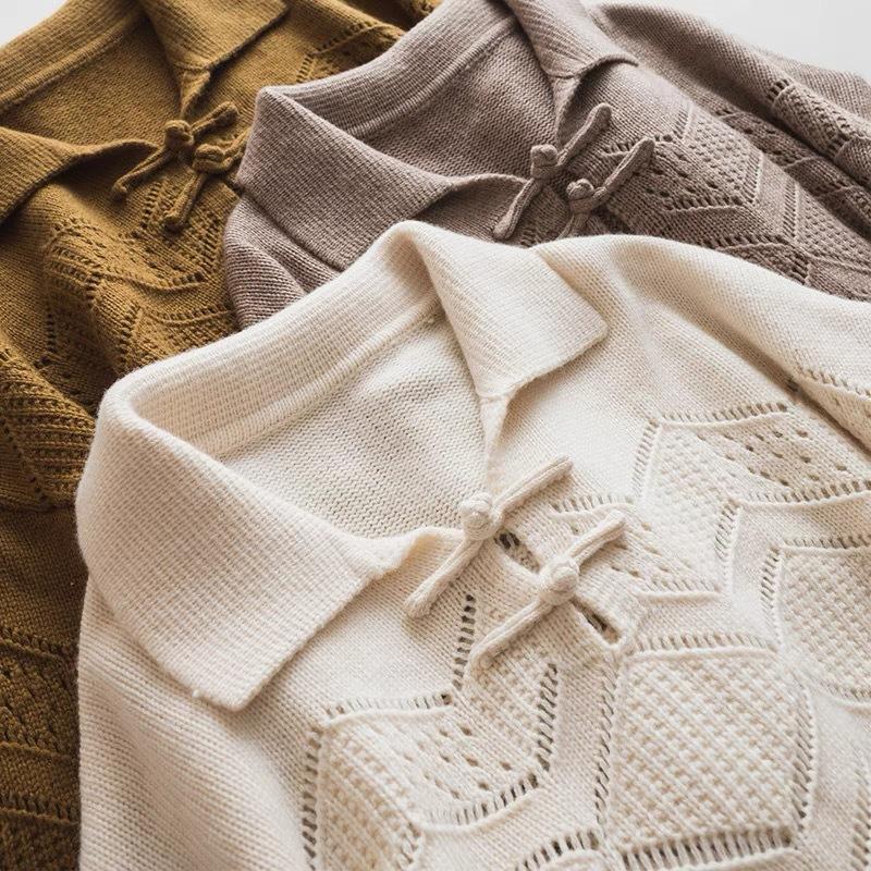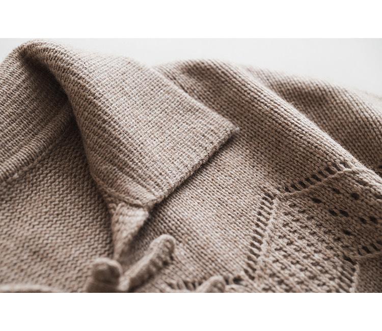 Suéter suéter de manga larga con solapa de hebilla de estilo nacional retro de estilo chino nuevo, 70% lana, tejido a ganchillo calado, temperamento suave