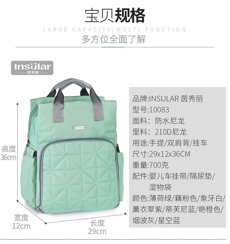 Mochila de moda multifuncional de gran capacidad Inxiuli impermeable lavable a máquina bolsa de mamá mochila bolsa de viaje para madre y bebé transfronteriza