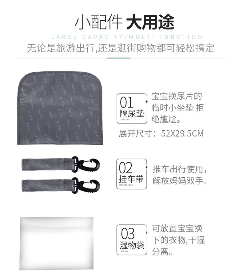 Accesorios: cambiador/bolsa húmeda/correa para carriola