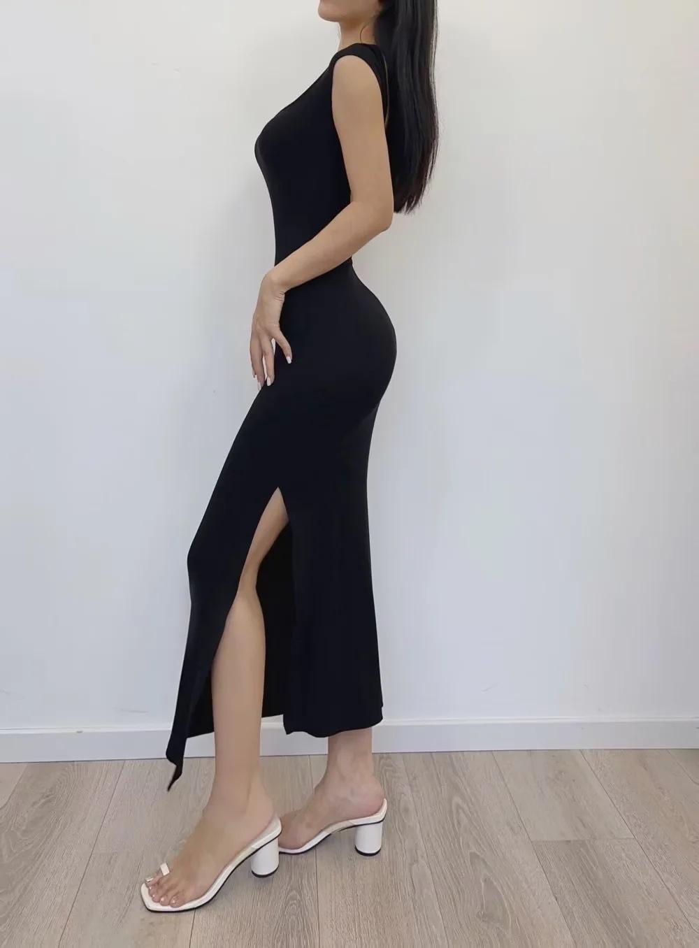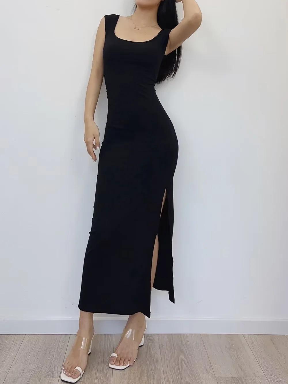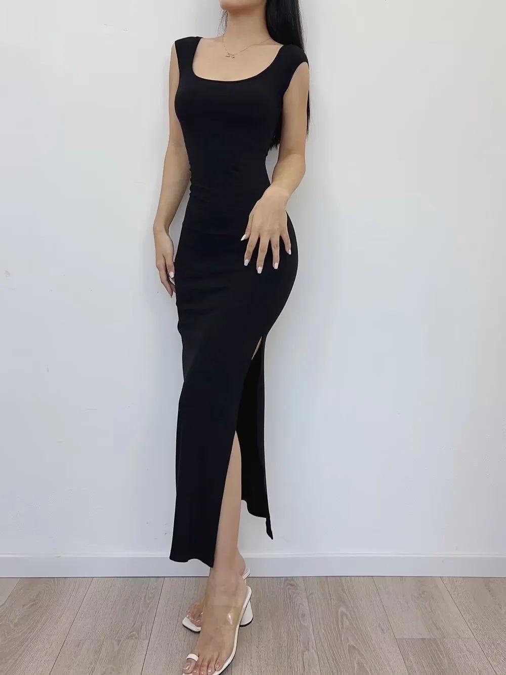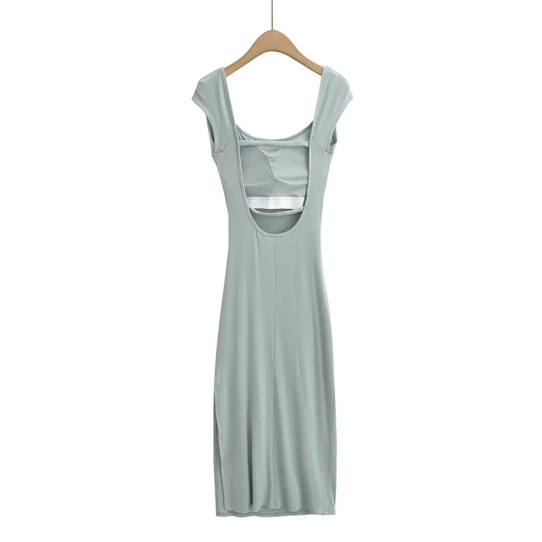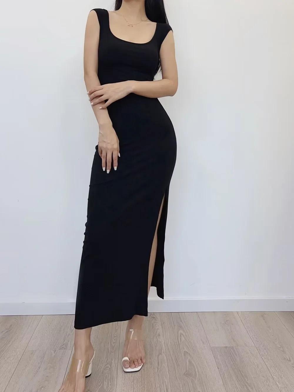 Vestido largo ajustado de verano 2024 con almohadilla para el pecho, sexy, con abertura en la espalda y hueco para mujer