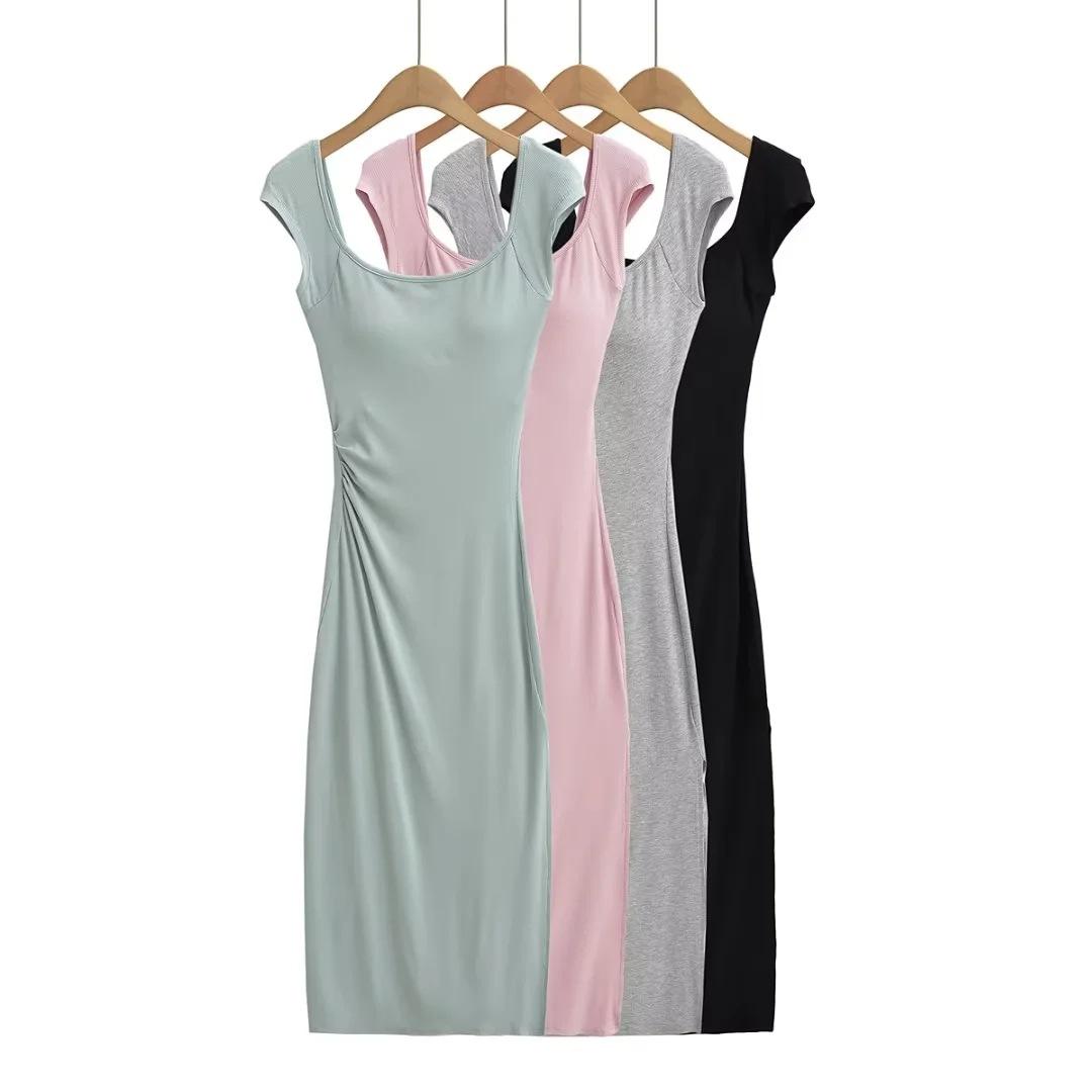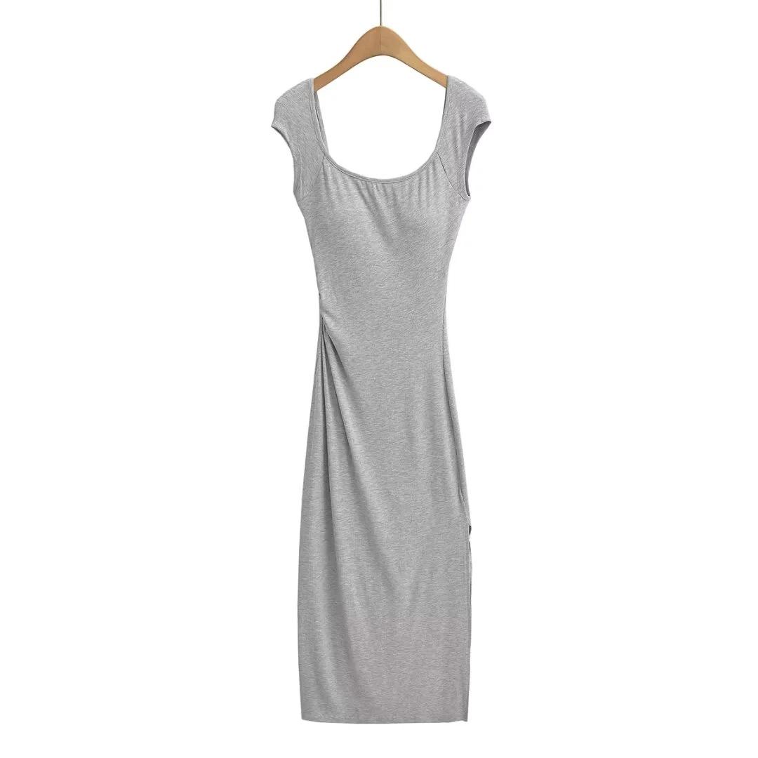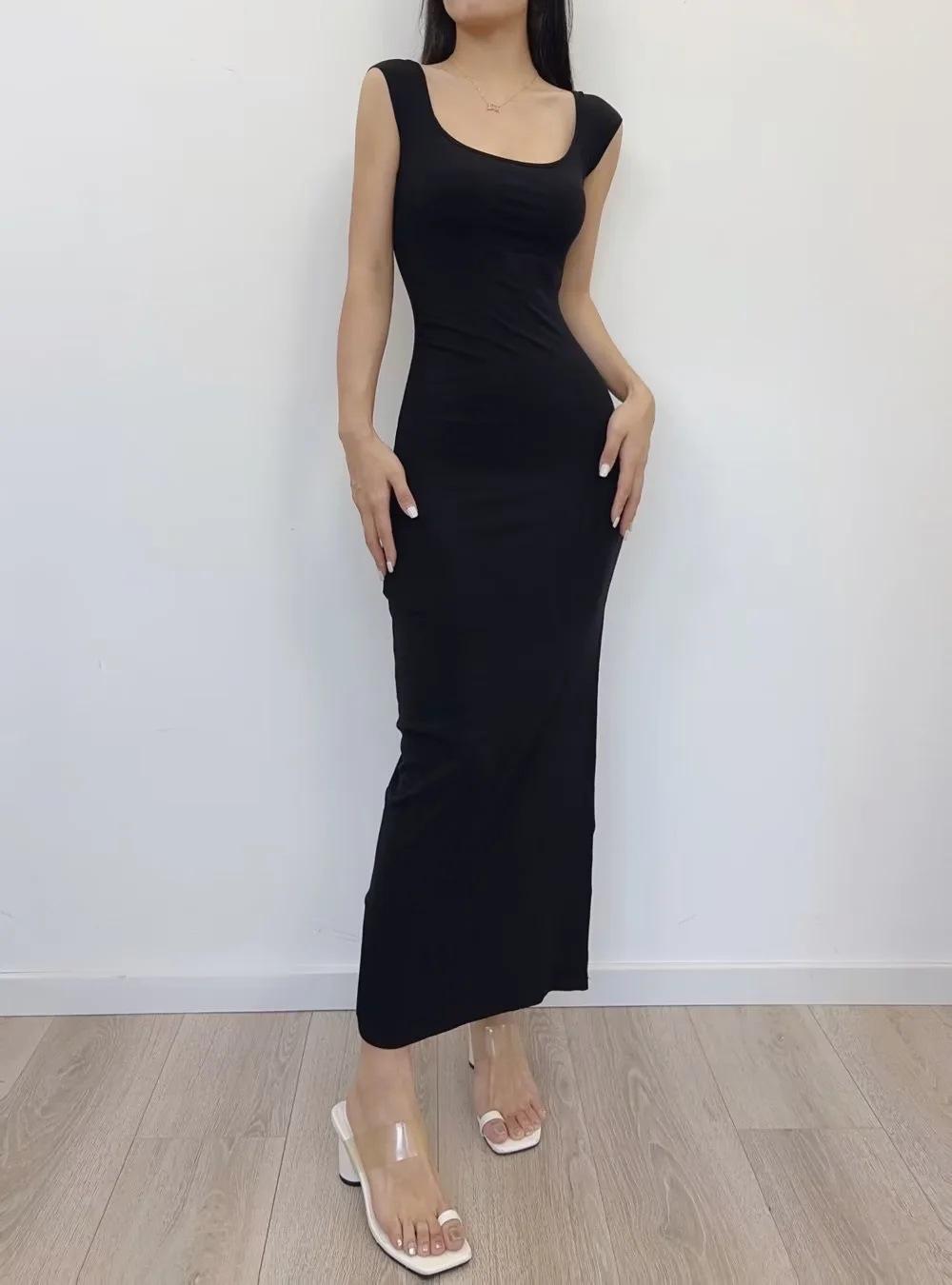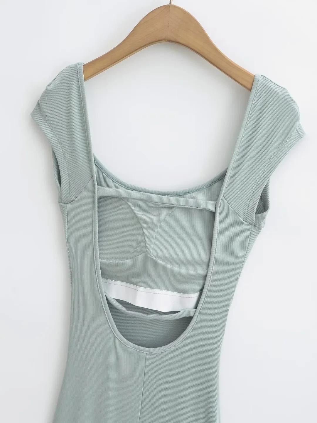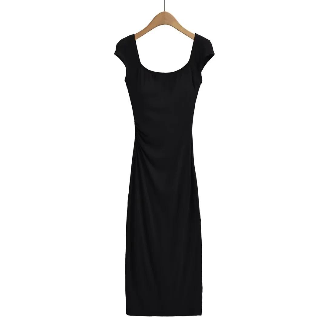 Vestido largo ajustado de verano 2024 con almohadilla para el pecho, sexy, con abertura en la espalda y hueco para mujer