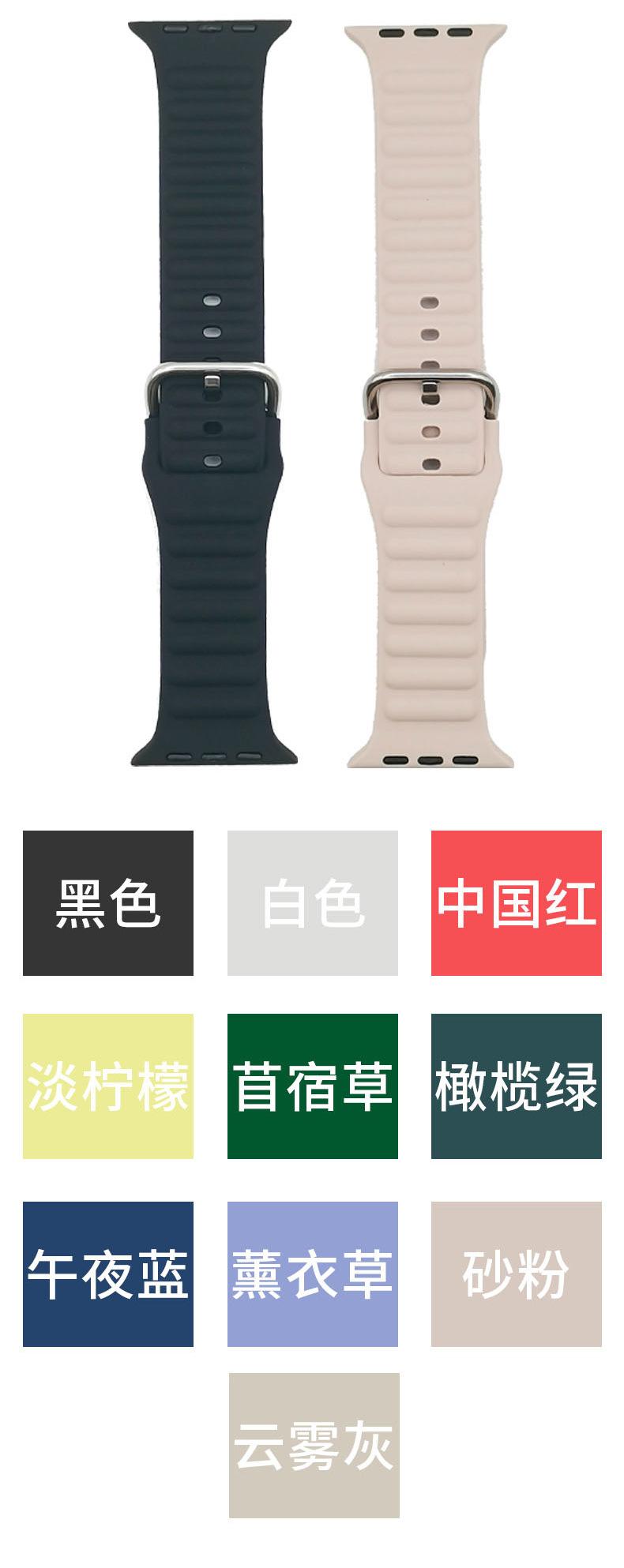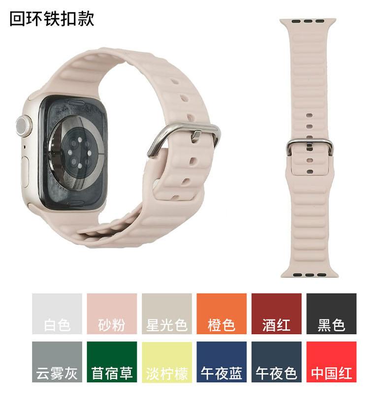Correa de reloj deportiva de silicona monocromática con hebilla de hierro compatible con Apple Watch.