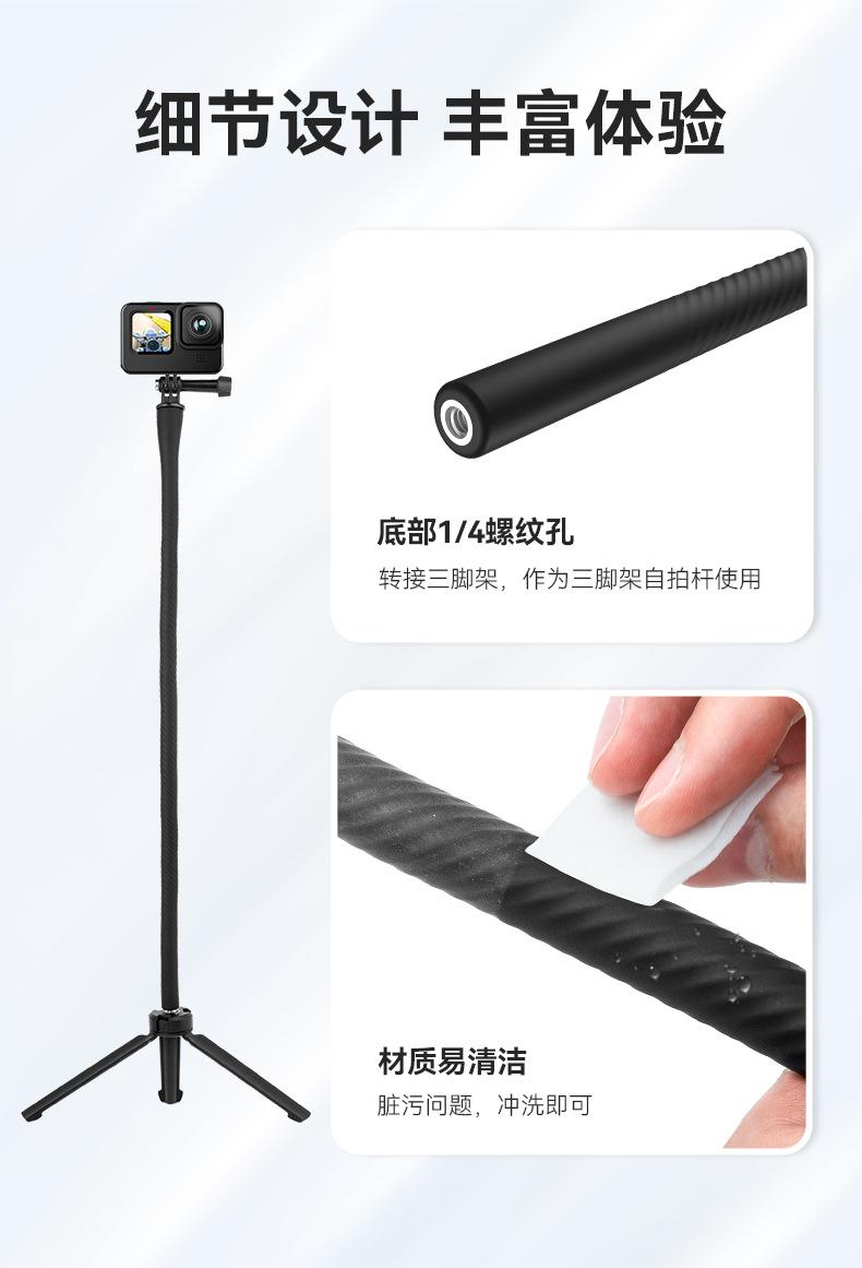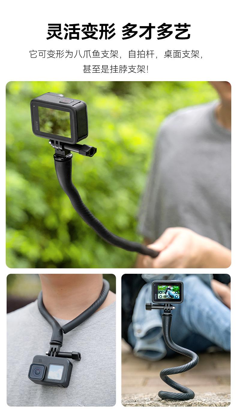 2. Flexible y versátil, se puede doblar a voluntad; se puede usar como un pulpo, palo para selfies, soporte de escritorio, soporte de cuello y estabilizador simple;