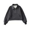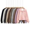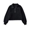 Suéter corto con media cremallera de estilo europeo y americano para mujer, otoño e invierno 2023, nuevo abrigo informal holgado con forro polar retro americano para mujer
