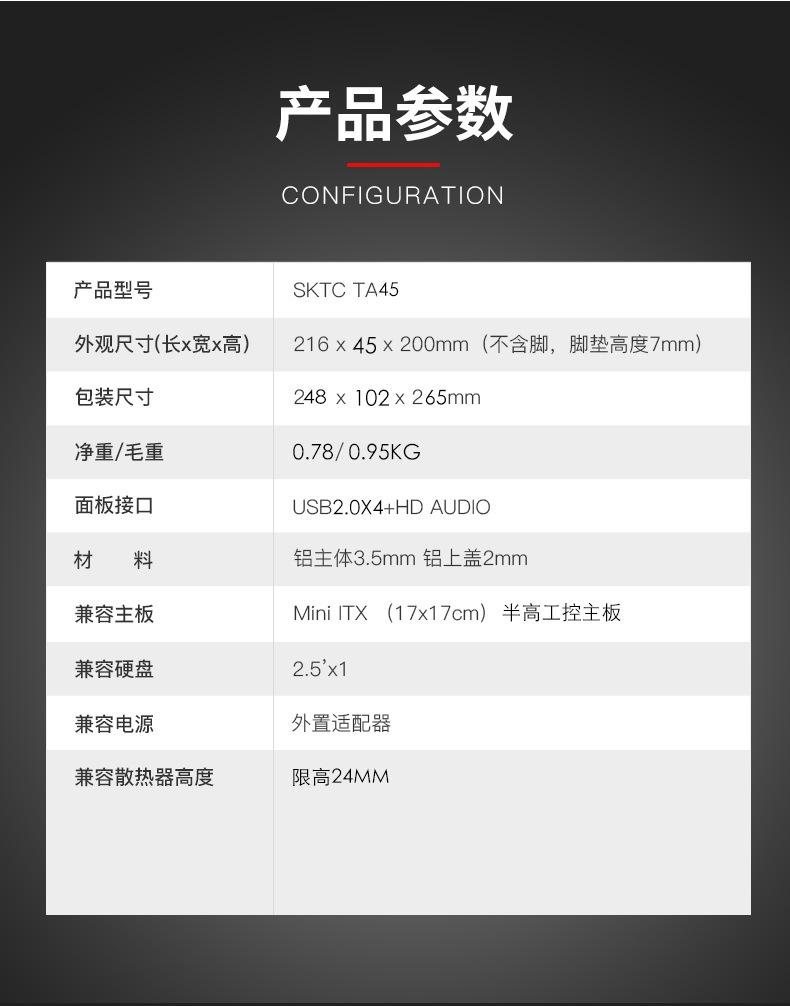 SKTC star Kaitian TA45 aluminio ultradelgado para hogar oficina gama alta chasis de computadora soporta placa base de control industrial semi-alta