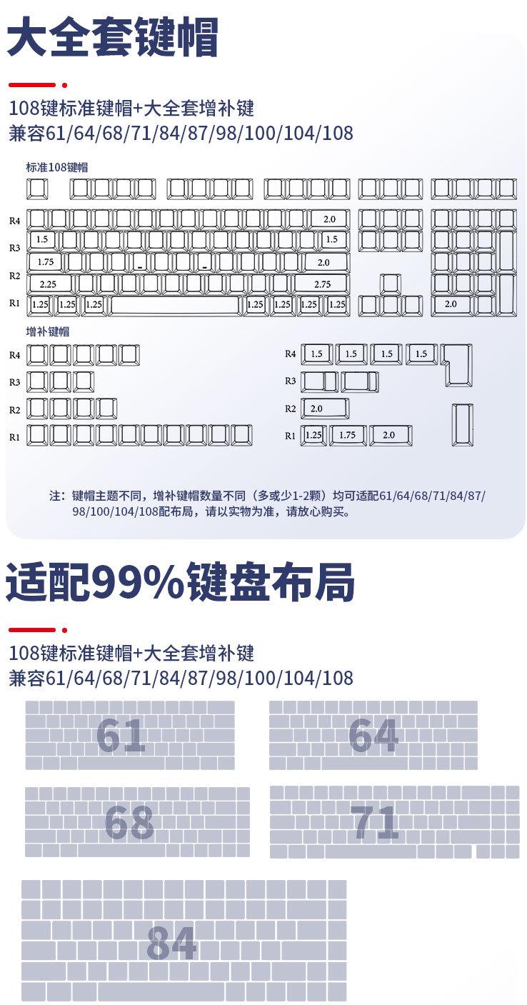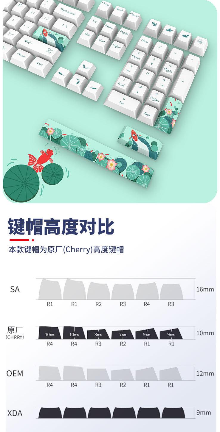| Teclas de color con patrón de flor de cerezo y proceso de sublimación térmica PBT, teclas de 61/87/104/108 teclas, teclas de teclado mecánico universales | ¥33.00 Compre ya | | | | | Tecla de cristal ABS totalmente transparente sin tallar, tapa de teclado mecánico de 104 teclas de color translúcido Lofree con alta transmitancia de luz | 17,00 ¥ Compre ya | | | | | Tecla mecánica PBT, material de sublimación térmica, tapa de bola XDA CHERRY, altura original, blanca, sin grabado, 108 teclas, punto | ¥28.00 Compre ya | | | | | Juego completo de teclas mecánicas universales CHERRY originales de alta calidad con sublimación PBT de 130 teclas a color. | ¥52.00 Compre ya | | |