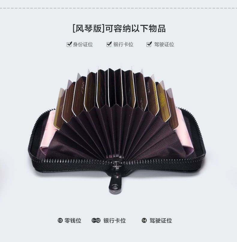 Tarjetero para hombre anti-desmagnetización multi-posición gran capacidad tarjetero de crédito para mujer tarjetero anti-robo órgano