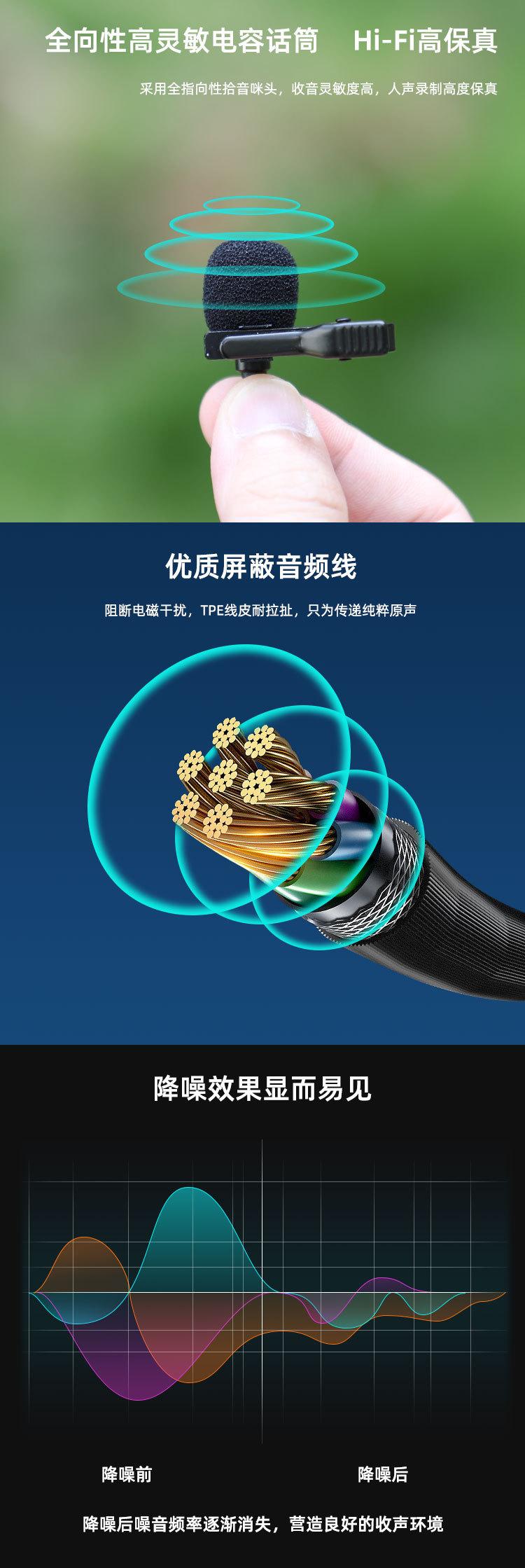 Adopta una cápsula de micrófono de captación omnidireccional con alta sensibilidad de sonido y grabación vocal de alta fidelidad.