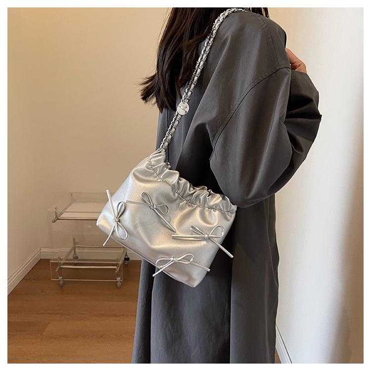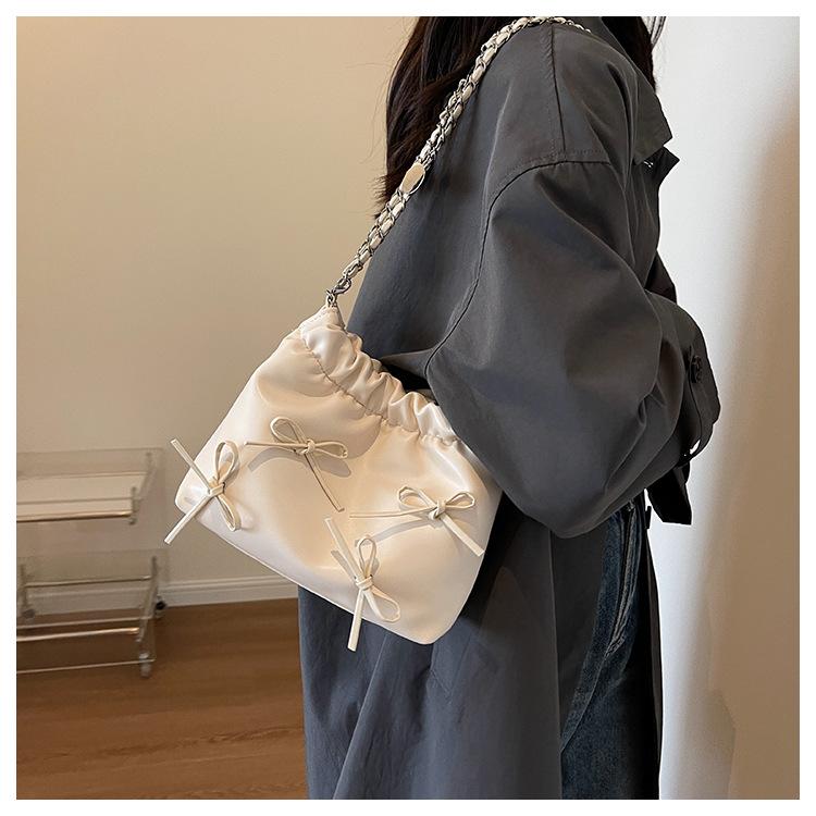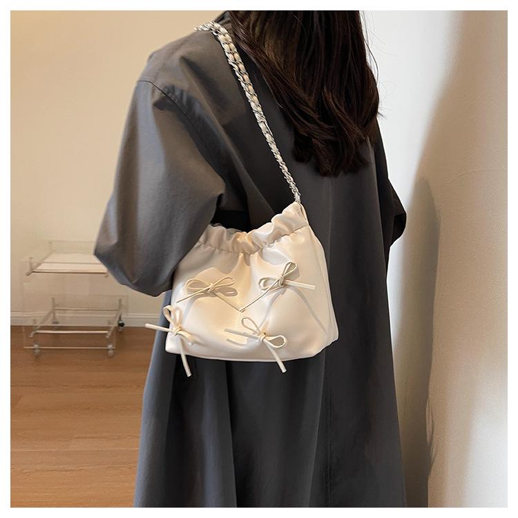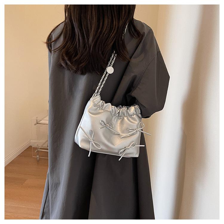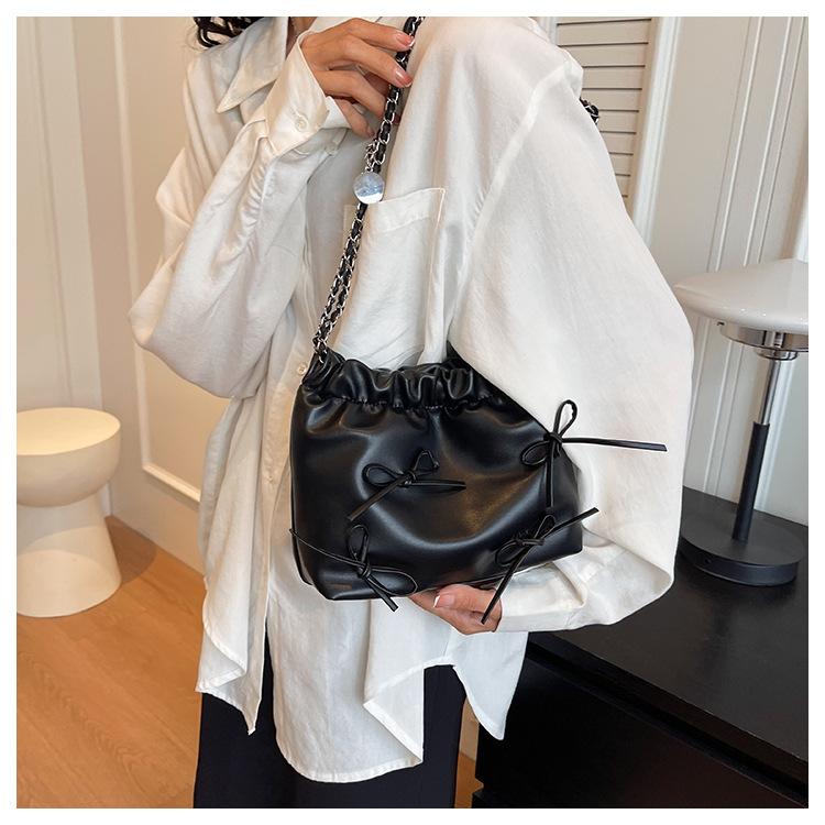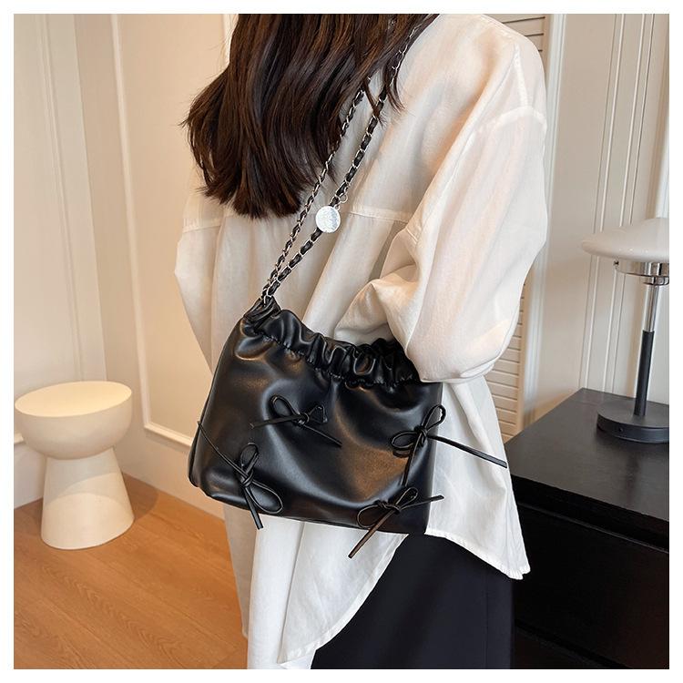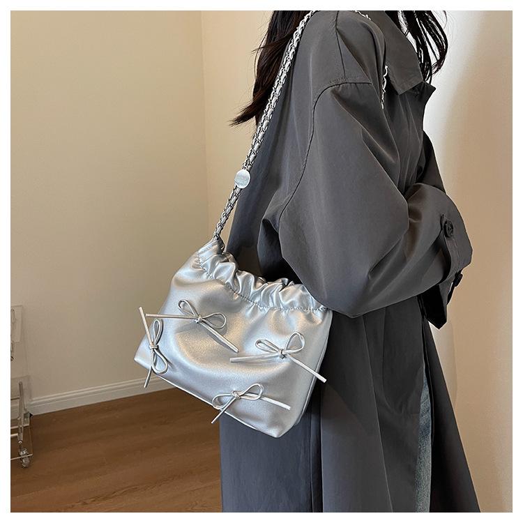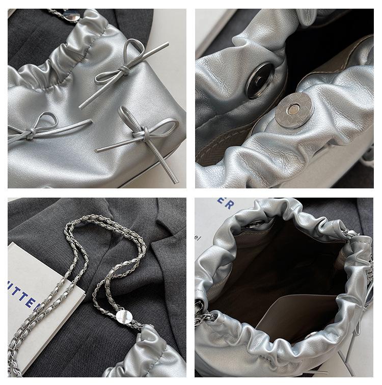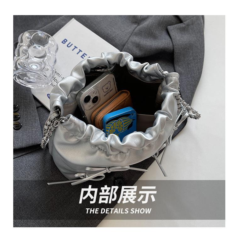 Bolso pequeño con textura de lazo para mujer, novedad de verano 2024, bolso de cadena de moda, bolso bandolera de hombro combinable estilo occidental