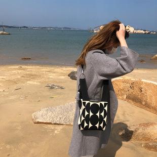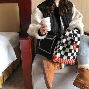 Bolso de mujer sencillo estilo japonés con combinación de colores, bolso tejido pequeño blanco y negro, bolso de mano tejido para señoras para caminar y comprar, venta al por mayor |
