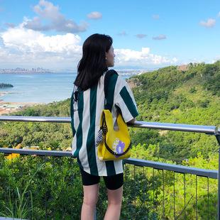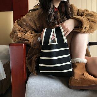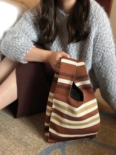 Bolso de punto a rayas coreano de primavera y verano, bolso de lana, bolso de mano para caminar, para ir de compras, chaleco perezoso, bolso tejido |