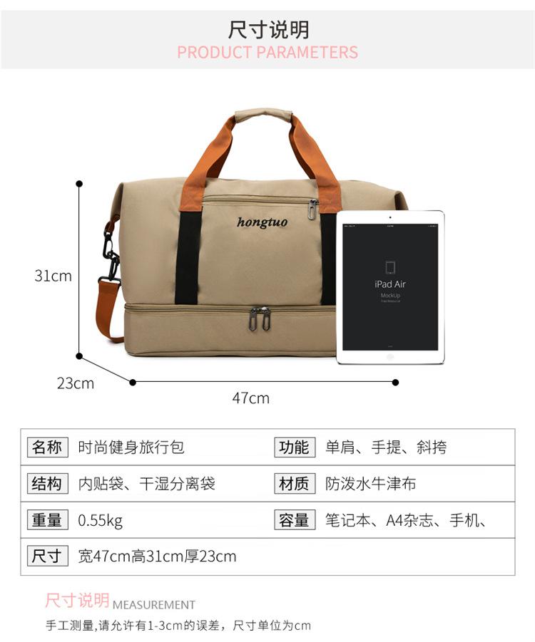 Bolsa de viaje transfronteriza, bolsa de equipaje de viaje de corta distancia portátil de estilo coreano, gran capacidad, ligera, con separación húmeda y seca, bolsa deportiva para fitness.
