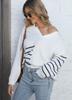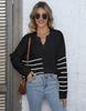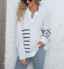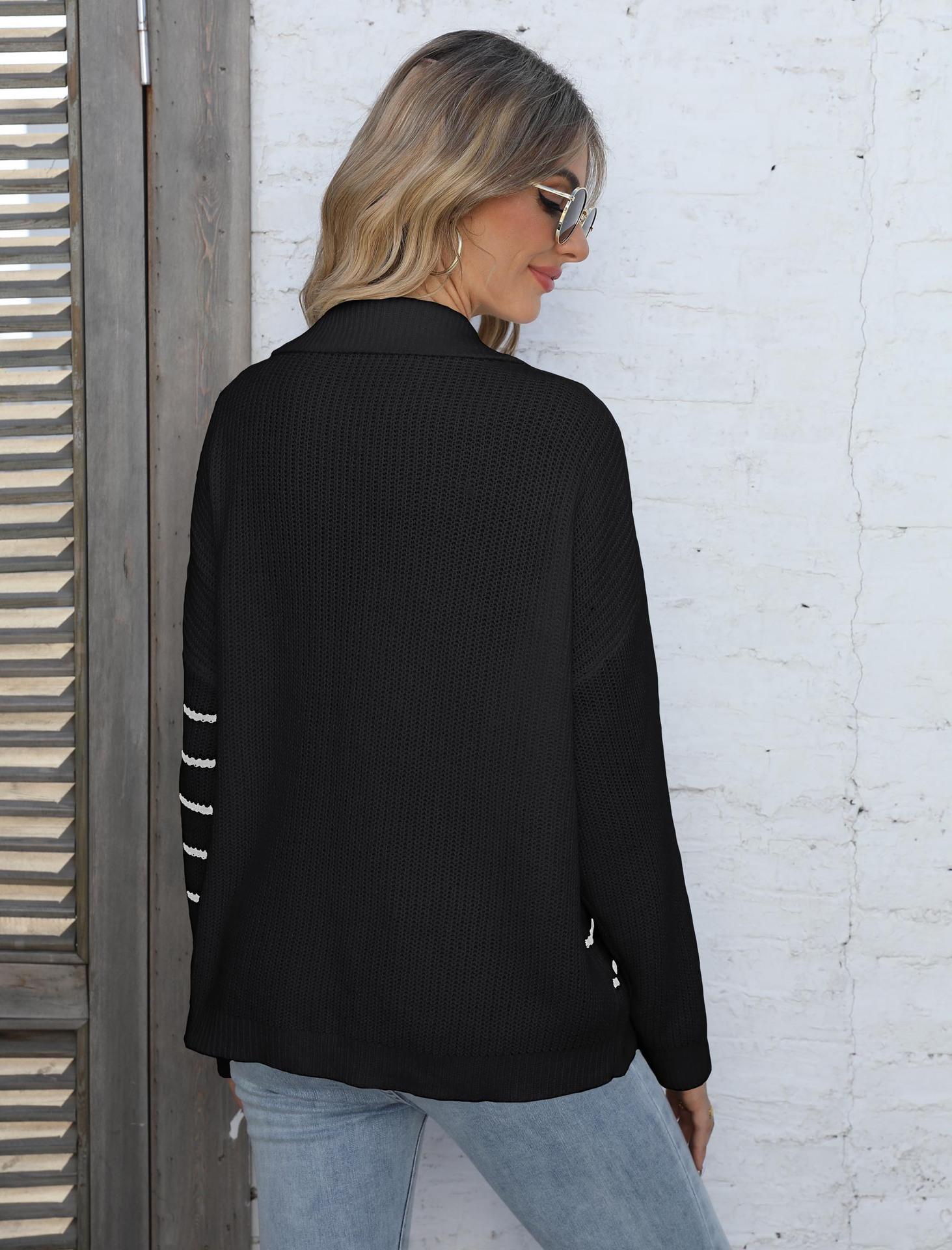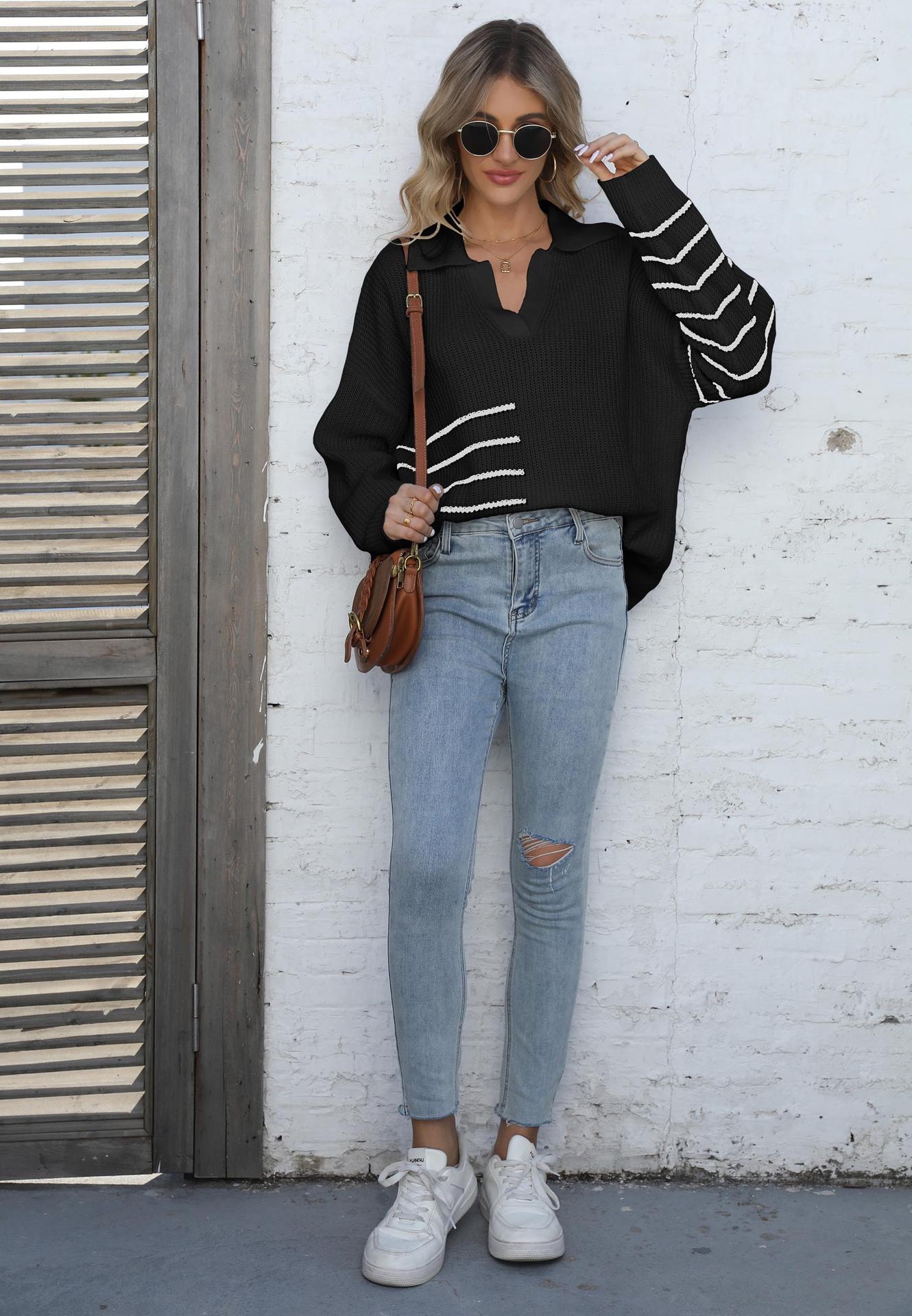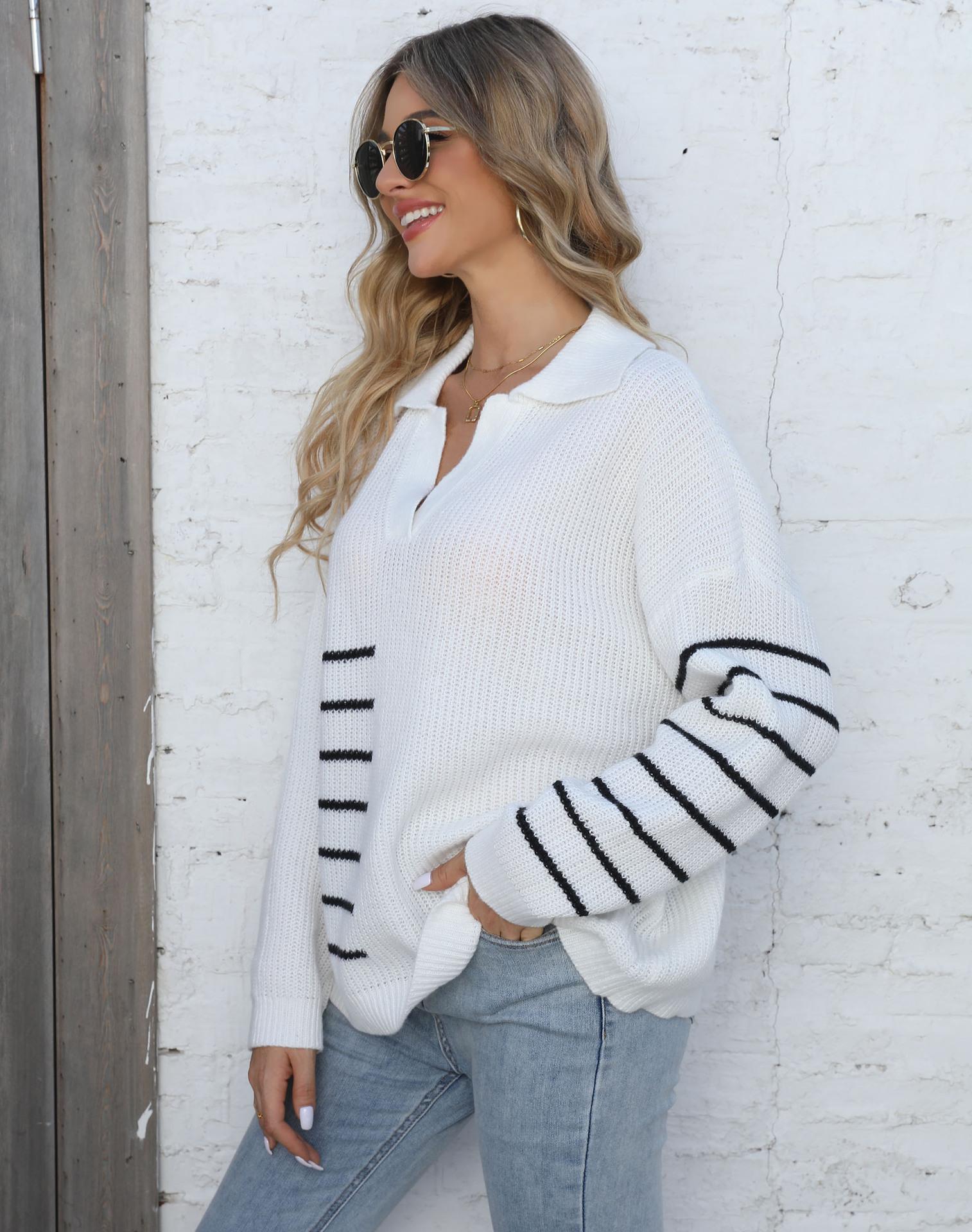Suéter tejido para mujer, suéter transfronterizo europeo y americano para mujer, otoño e invierno, nuevo suéter de cuello polo a rayas con costuras de color en contraste M627