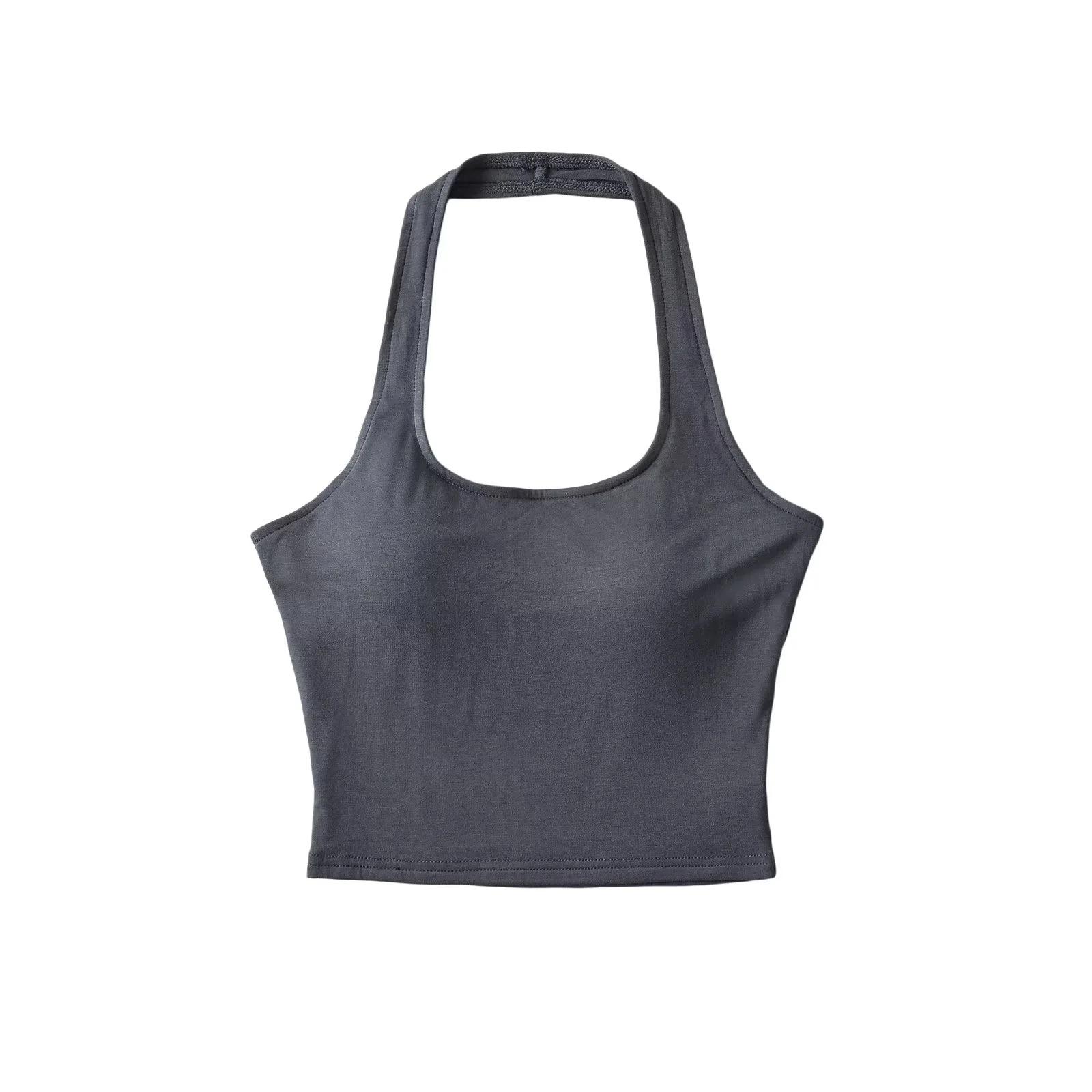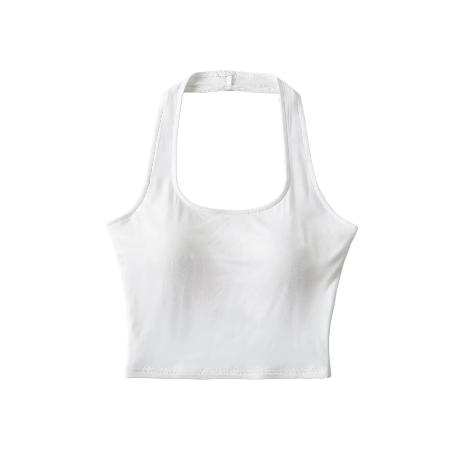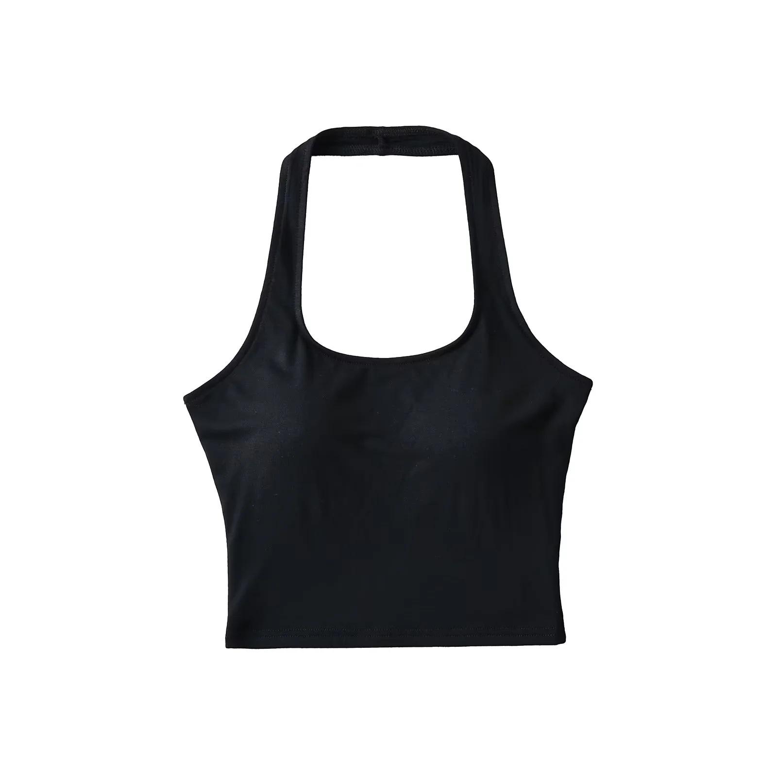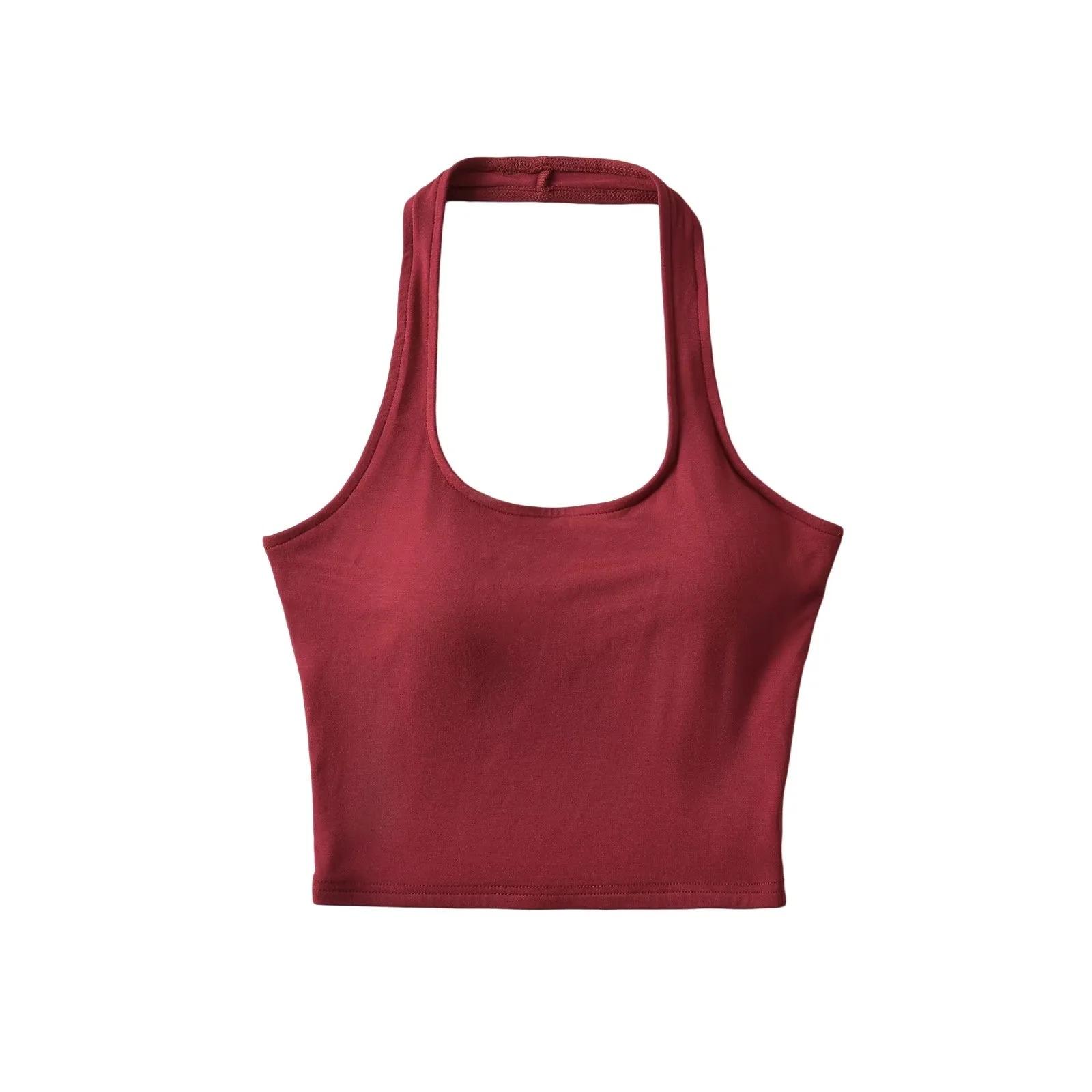 Top corto ajustado de verano para mujer, sexy, con cuello colgante, espalda descubierta, corte entallado, color liso, con ombligo al descubierto y almohadilla para el pecho.